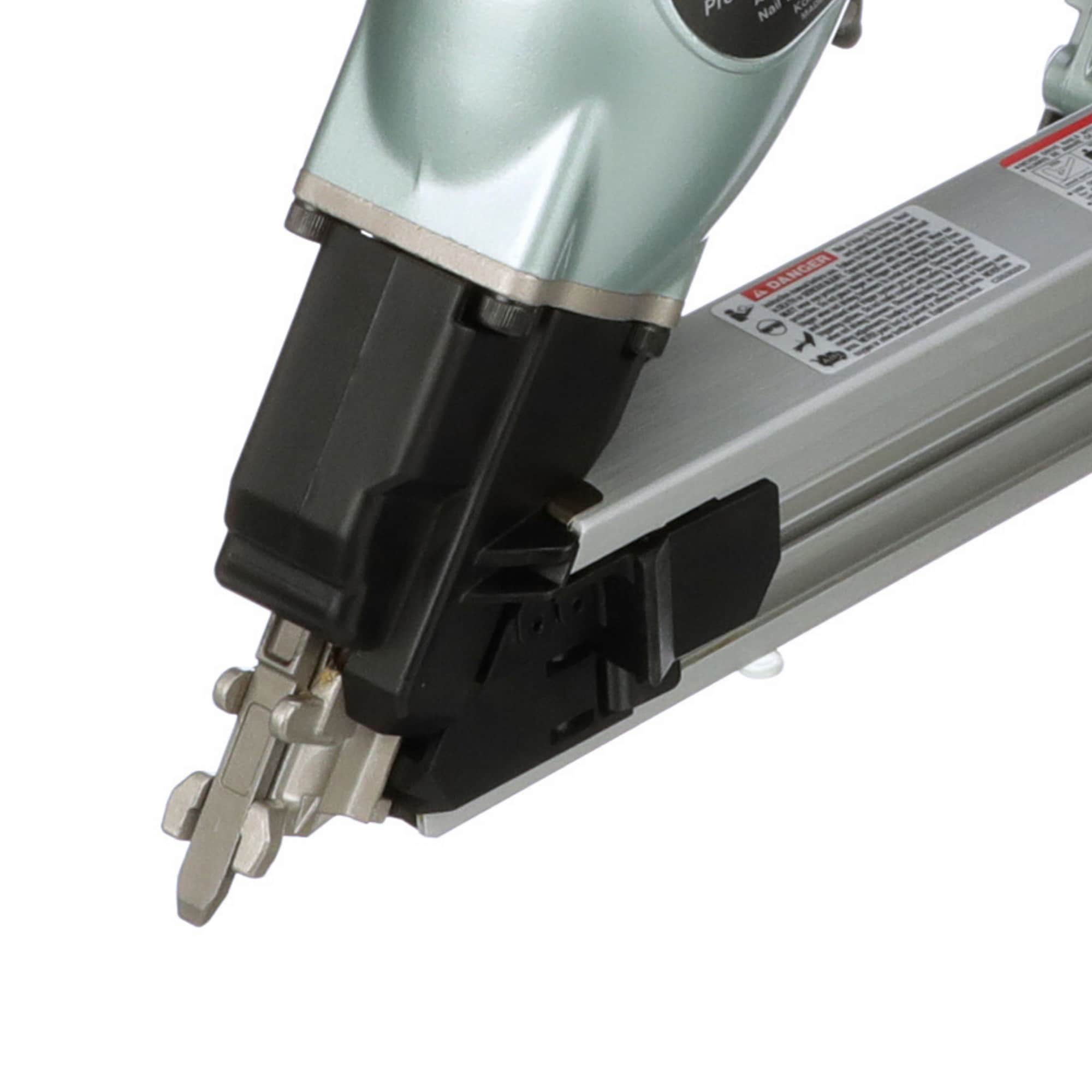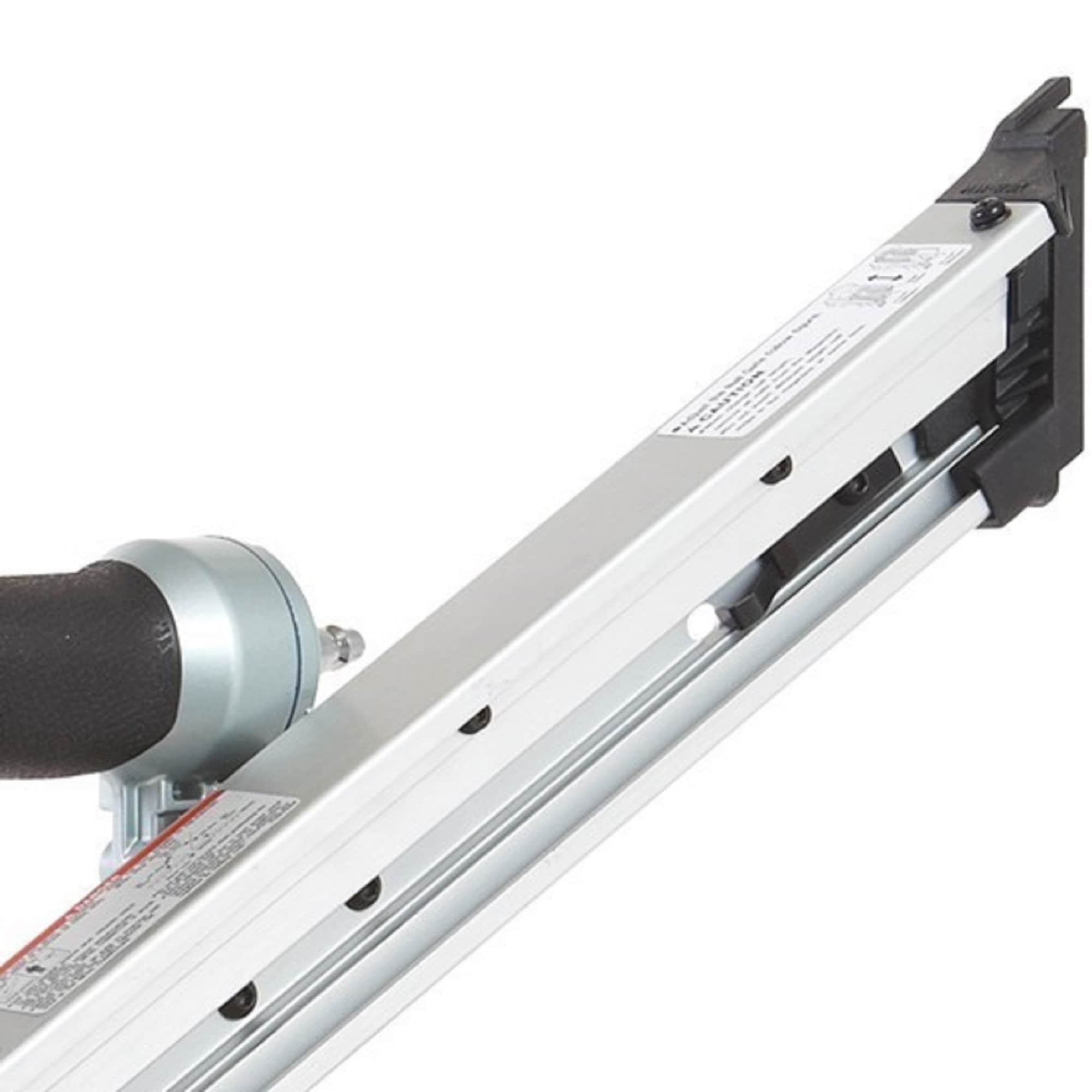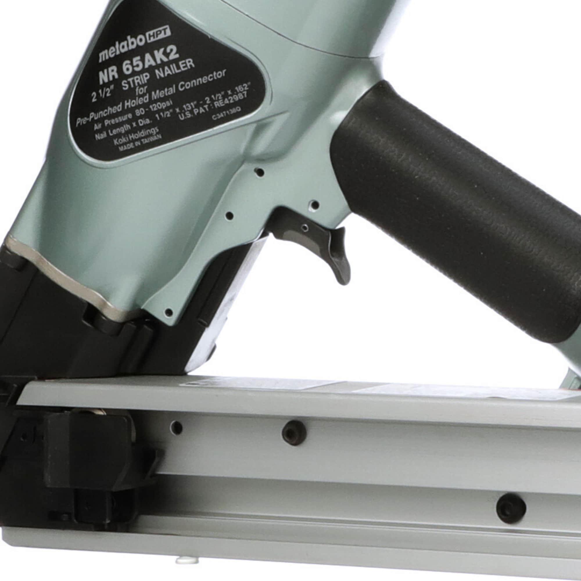 The Strap-Tite strip nailer (NR65AK2) accepts 1-1/2-In. and 2-1/2-In. fasteners while offering superior precision and control for all of your metal connecting needs. Lightweight and well balanced at just 6.4 lbs., the NR65AK2 has both an adjustable air deflector and dry fire lockout for convenience. The positive safety and sequential drive mechanism ensure precise nail placement. Also available with a short magazine (NR65AK2(S)), this tool will provide assured nailing in even the tightest of spaces.