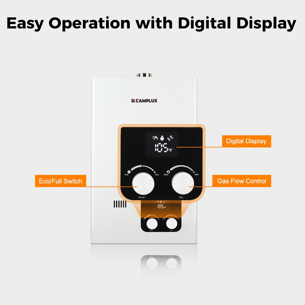 The Camplux indoor Tankless Water Heater is the original and best-selling water heater in the US today. Get instant on demand, endless hot water, idea for more small homes, cabins or apartments. Compact Design, the compact size instant hot water heater saves more space than traditional tanks. The control panel has a clear display of the water temperature, and manually adjusts the stable water temperature, so that it will not be cold or hot. See why thousands of happy customers buy the Camplux CM264B to make daily tasks much easier.