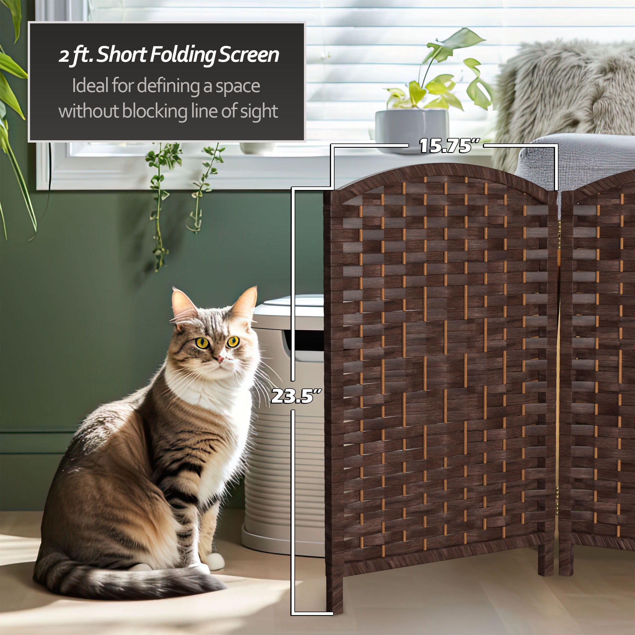 2 foot tall desktop room divider Kiln dried wood frames woven with spun plant fiber cord Two-way hinges fold panels in either direction