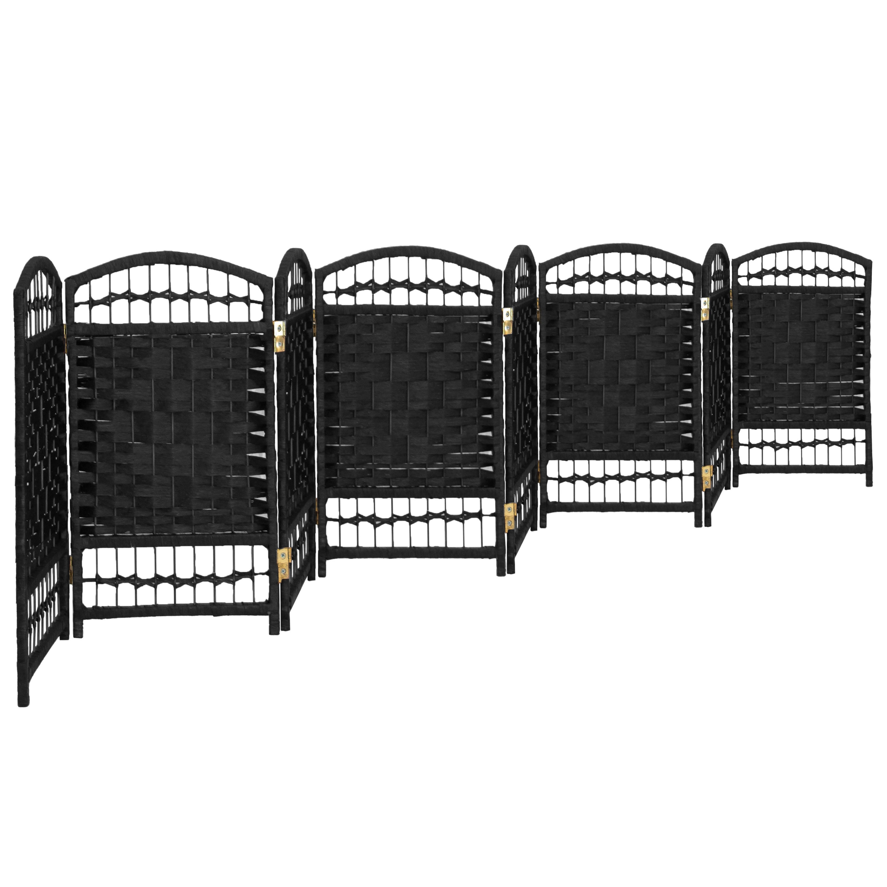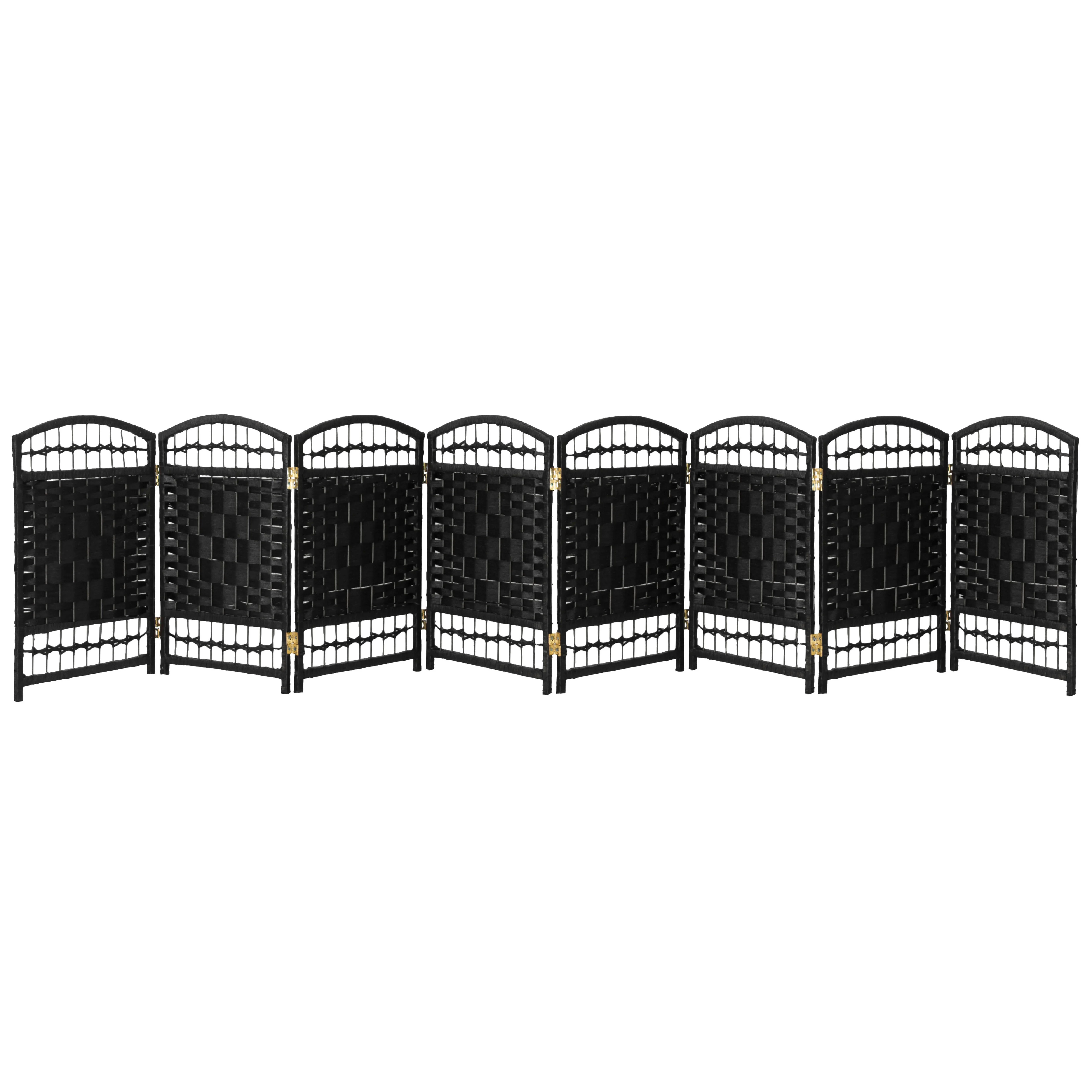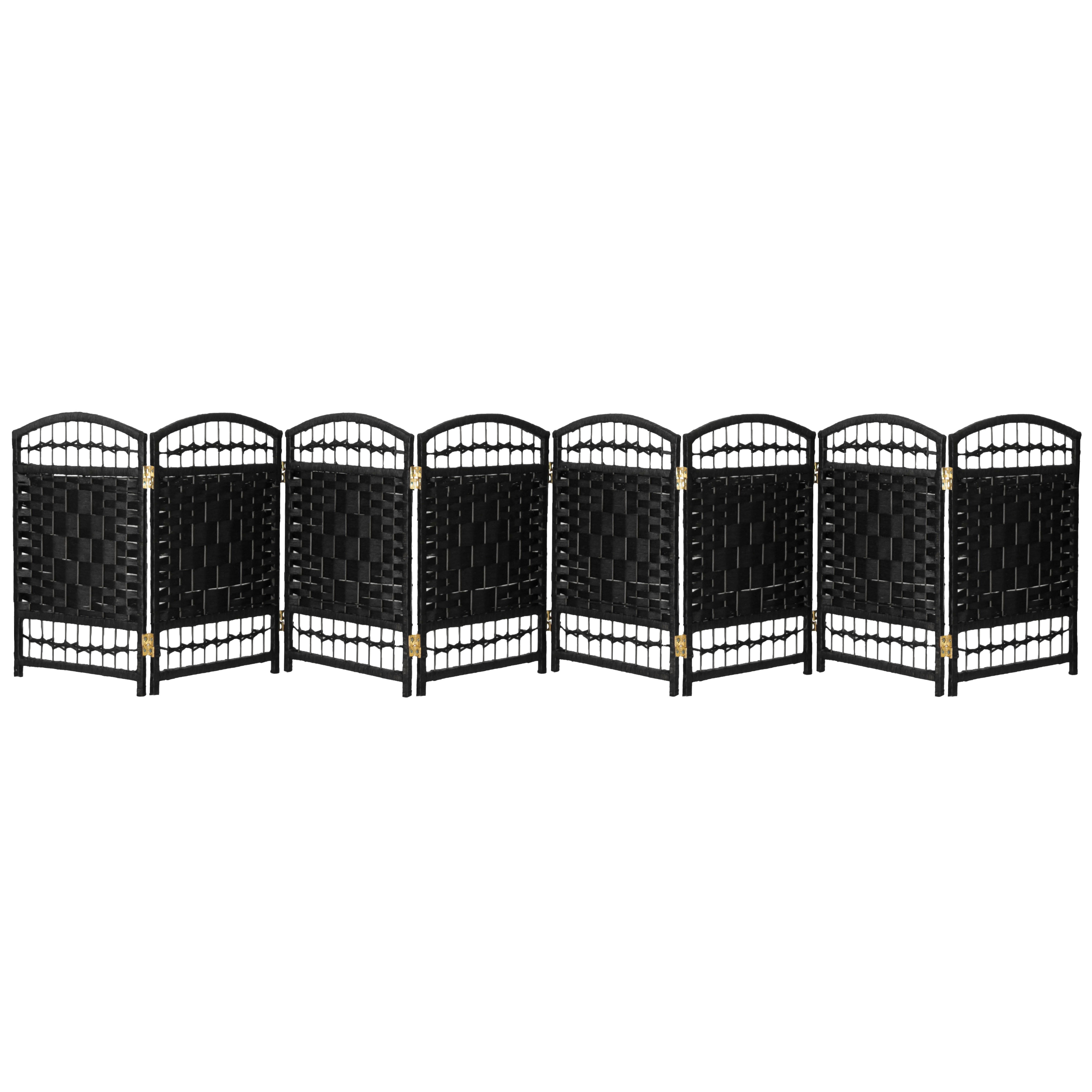 Red Lantern 2 ft. Short Fiber Weave Folding Screen – Black – 8 Panels