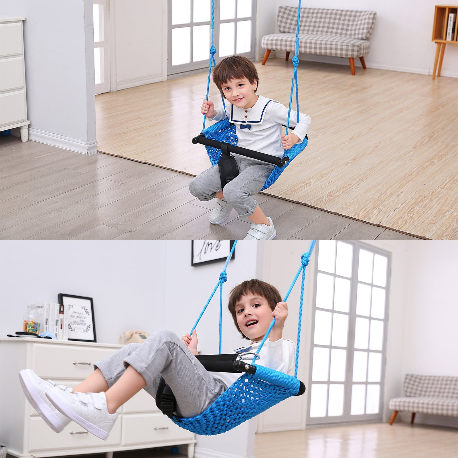 2 in1 Swing Seat Kids with Adjustable Ropes, Secure Children Swing Set for Outdoor and Indoor Toddler Swing Tree Swing Seat for Bakyard Playground,Home(Blue)