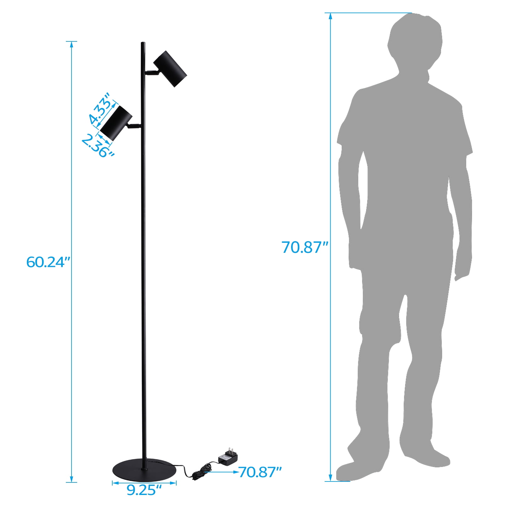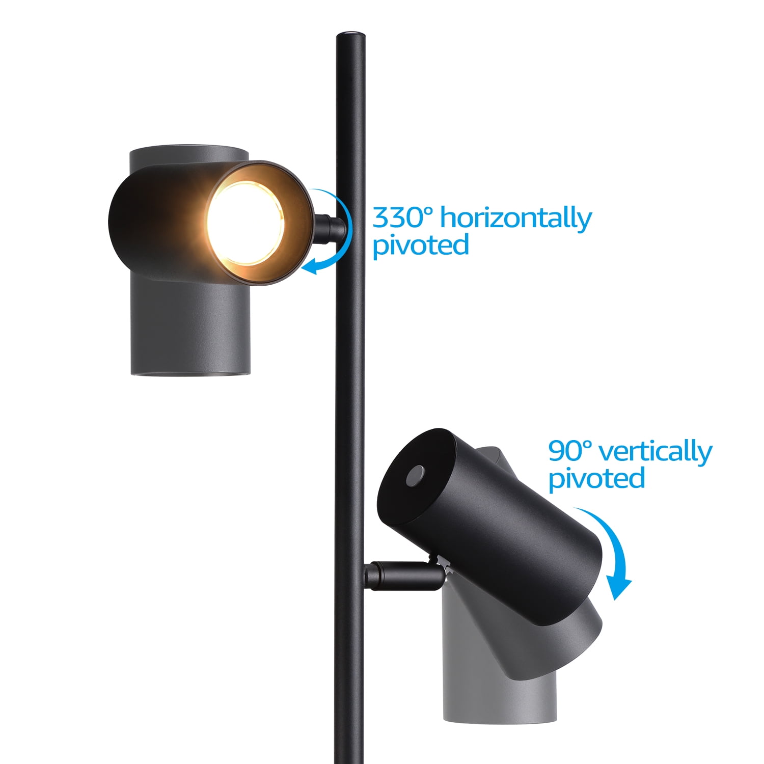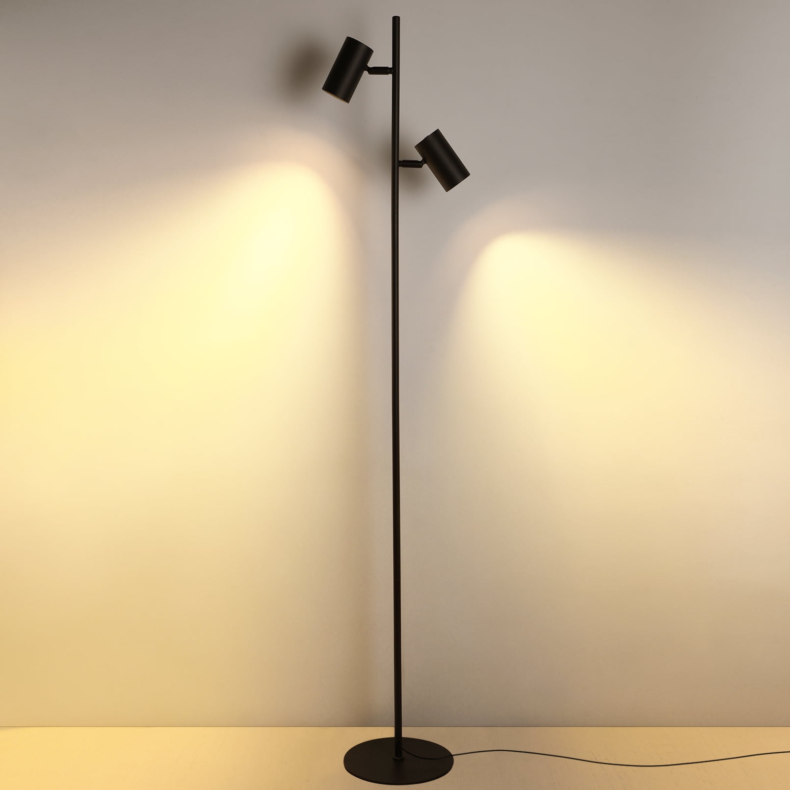 2-Light LED Tree Floor Lamp, Dimmable Spotlight Standing Tall Pole Lighting, Touch Control with Adjustable Head, 2700K Soft White, Matte Black