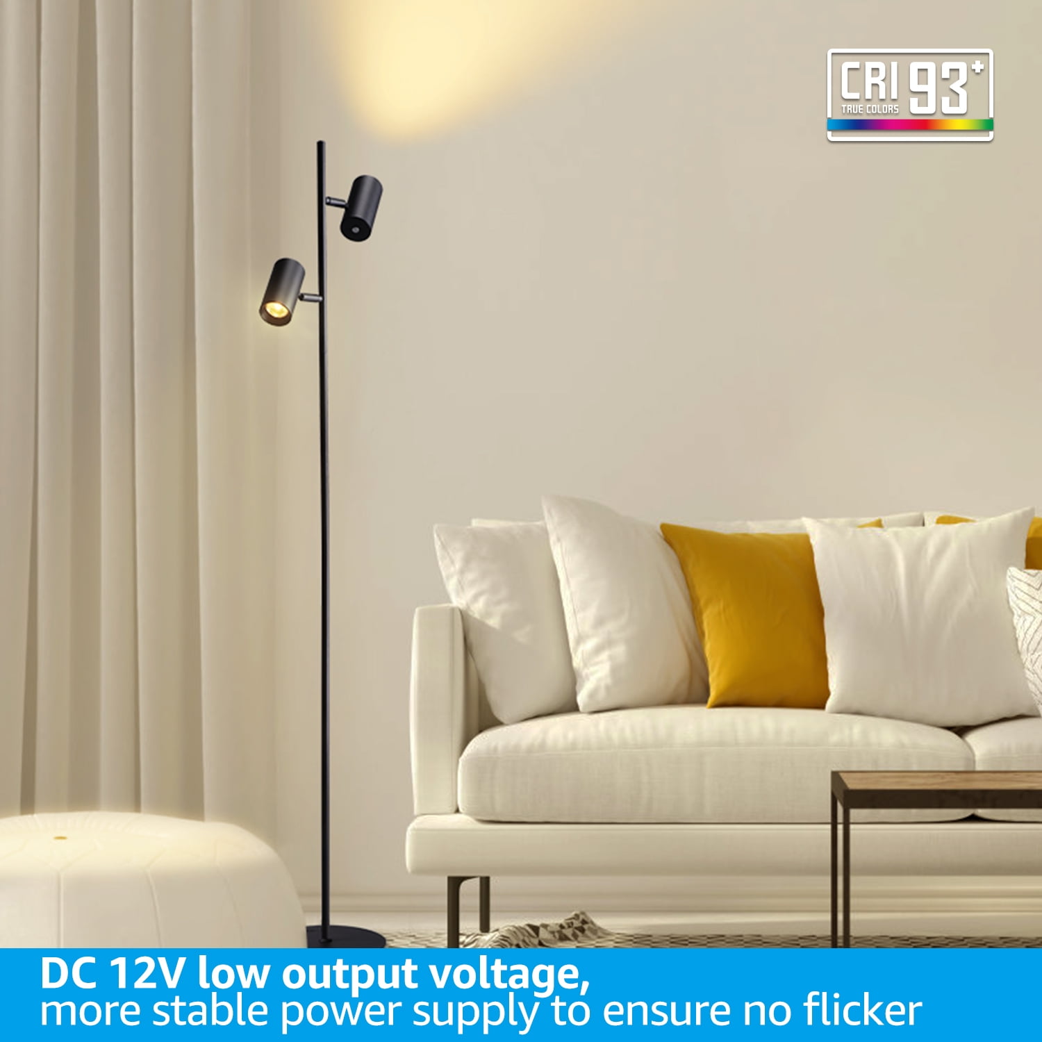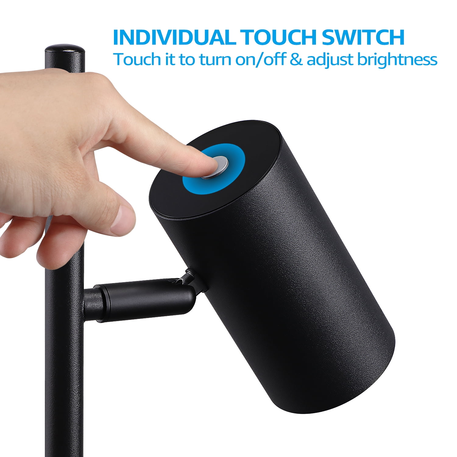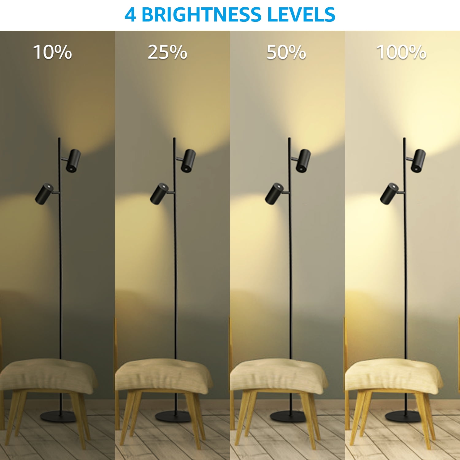 Touch Control The exclusive individual touch switch design is easier to use and more sensitive. 4-Level Dimming According to your needs, the brightness of two lamp heads can be adjusted individually with 4 dimming levels, 10%-25%-50%-100%, perfect for bedrooms, living rooms, and studies. Modern Design Designed with a modern and minimalist style, this tall pole light’s sleek lines and matte black finish make it perfect for contemporary and industrial décor. It is also functional, providing enough brightness for your hobbies such as puzzles, arts, crafts, knitting & writing, etc. Pivoting Design The lamp heads can be pivoted 330⁰ horizontally & 90⁰ vertically to direct the light where you need it. The high CRI93 displays the real and vivid color of objects. Trusted Quality The ETL listed power adapter makes this light safe to use. A 2-year warranty is included for your rights and benefits. Specifications: Wattage: 16W(2×8W) Input voltage: 100-240V Equivalent: 100W Luminous flux: 850lm(2×425lm) CRI>93 Lifespan: 30,000hrs Beam angle: 36° CCT: 2700K soft white Working temperature: -4°F-113°F Material: Aluminum & iron Finish color: Matte black