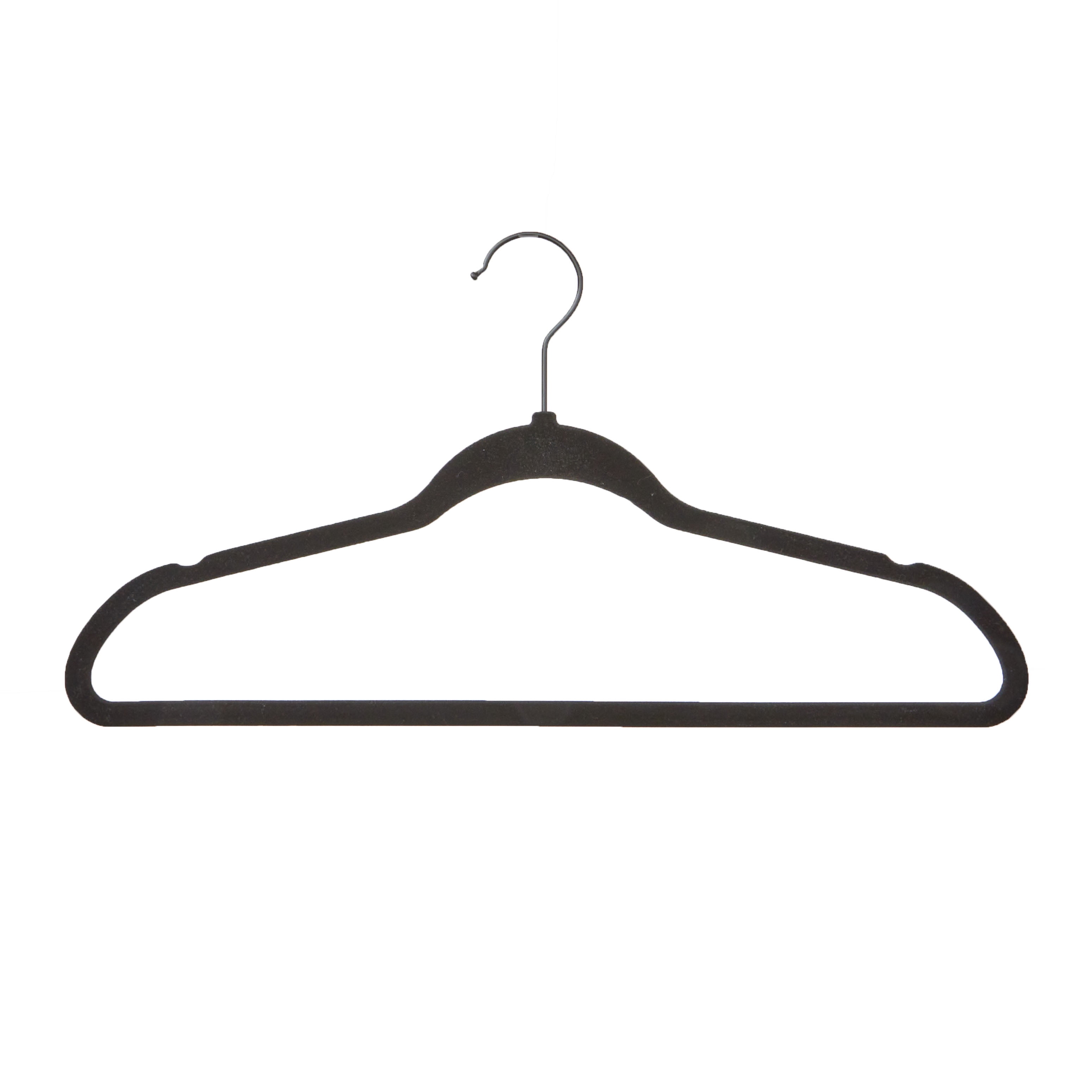 Our Better Homes and Gardens Ultra Slim hangers will help to organize your closet with both style and functionality. These 100 Pack black velvet flocked suit hangers are designed to effectively keep your wardrobe organized with slim, space-saving construction helping to increase the size of your closet. These black flocked hangers are soft to the touch, non-slip, and will help keep your garments in place and their original condition and shape.