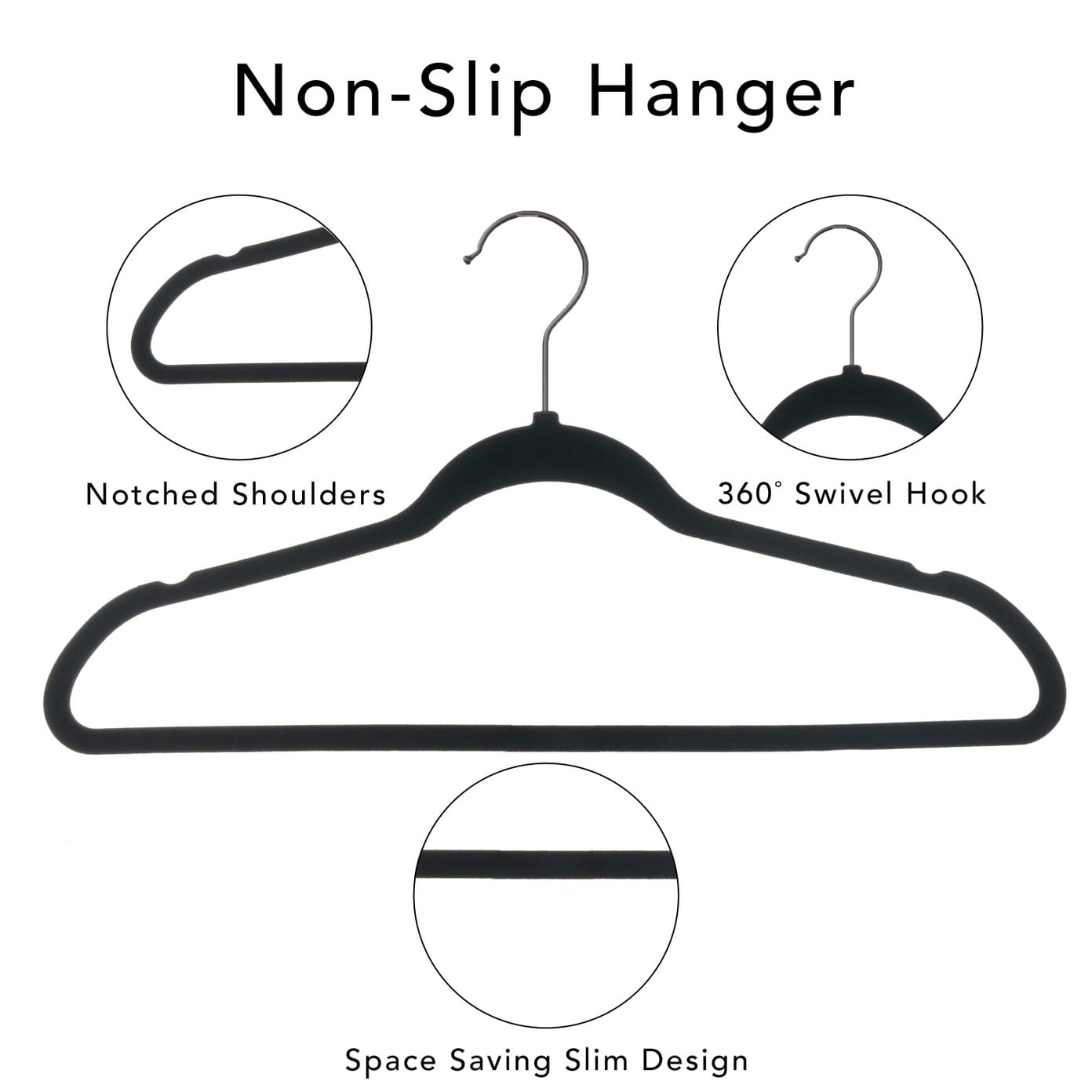 Better Homes & Gardens Includes 100 hangers Durable construction holds up to everyday use Ultra slim profile slides into small collared clothes with ease and saves on closet space Curved design retains the shape of garments Nonslip grip prevents clothes from slipping off hanger and sliding into the floor Comes in black to complement any design style or color palette – safe for use on wet and dry fabrics Ideal for keeping clothes organized and maximizing space in any closet in the home