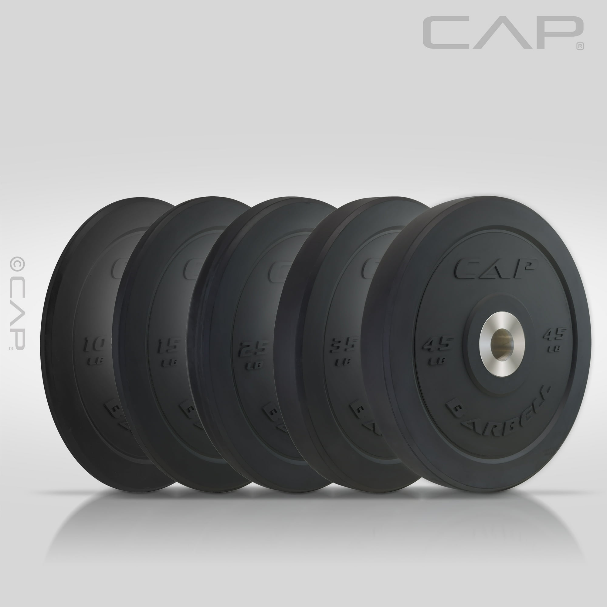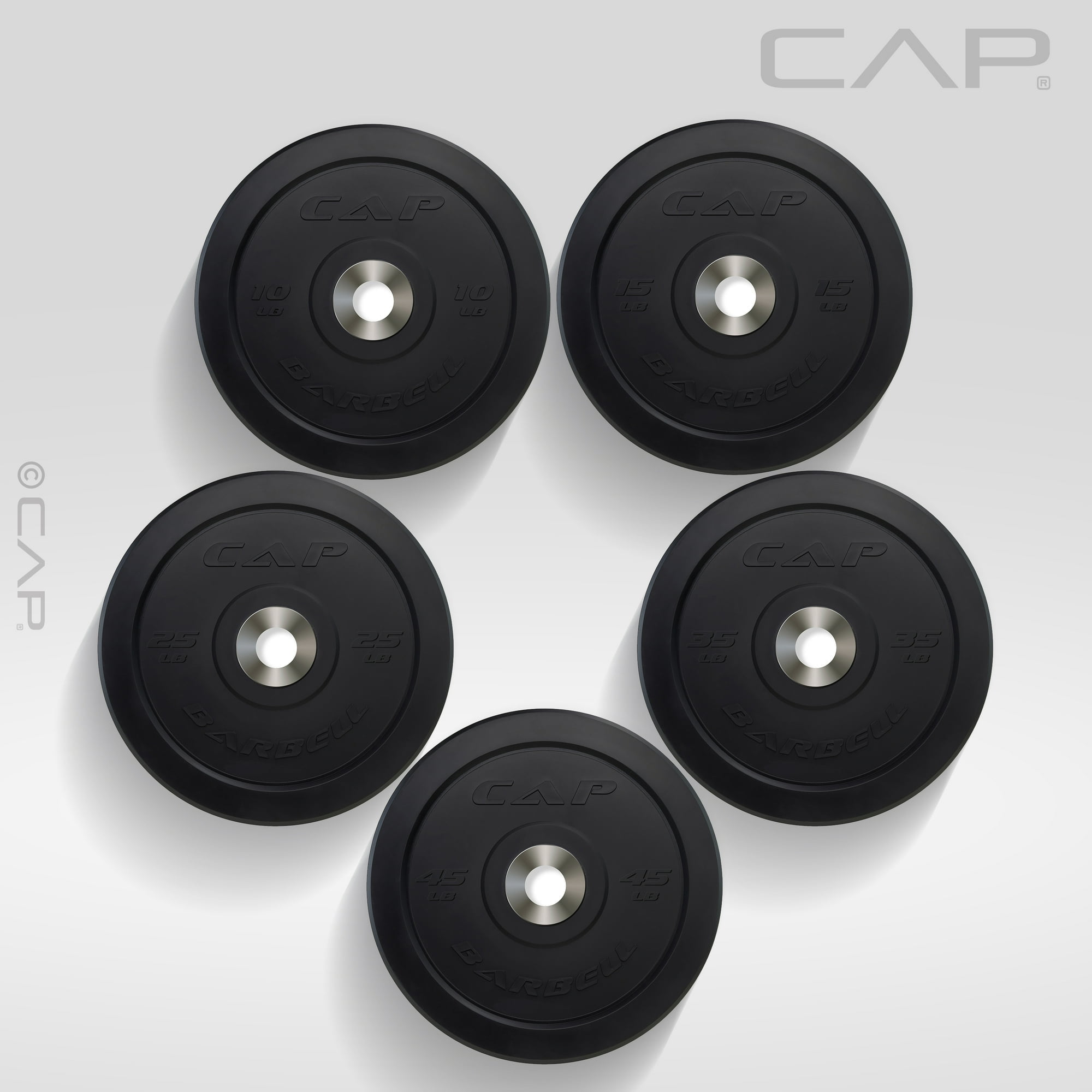 Take your weightlifting and power lifting game to the next level with these CAP Barbell Rubber Bumper plates. The durable rubber design reduces weight room noise and is designed to withstand drops. Suited for lifting platforms, gyms and garage floors, these plates can be used for Olympic lifts and strength training. Each weight features a uniform diameter to evenly distribute the impact during drops. The 2-inch center hole makes these bumper plates compatible with Olympic style bars (with a 2-inch sleeve diameter). Raised numbers on each plate help to easily identify each weight size. Bumper plates add safety, flexibility, and quieter workouts, so add some of the CAP Barbell Rubber Olympic Bumper Plates to your gym for enhanced performance. Available in 10, 15, 25, 35 and 45lbs. Each bumper plate is sold individually.