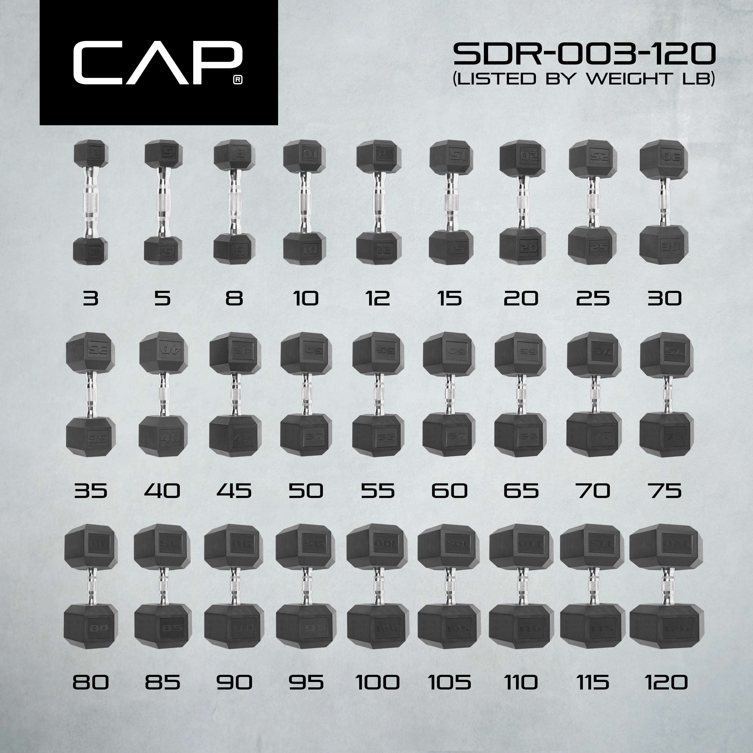 CAP Barbell Coated Hex Dumbbell, Single 90 lb: Sold individually; Available in sizes from 3, 5, 8, 10, 12, 15 – 120 lbs in 5 lb increments Premium quality weights that are built to last and withstand any workout environment Contoured, easy-grip chrome steel handles The medium depth knurling on the ergo handle provides essential grip and security during use Hexagon shaped heads are designed to prevent rolling and provide easier storage Protective coating on the heads prevent damage to floors Perfect for isolations, full body, functional and HIIT workouts 30-day limited manufacturer warranty