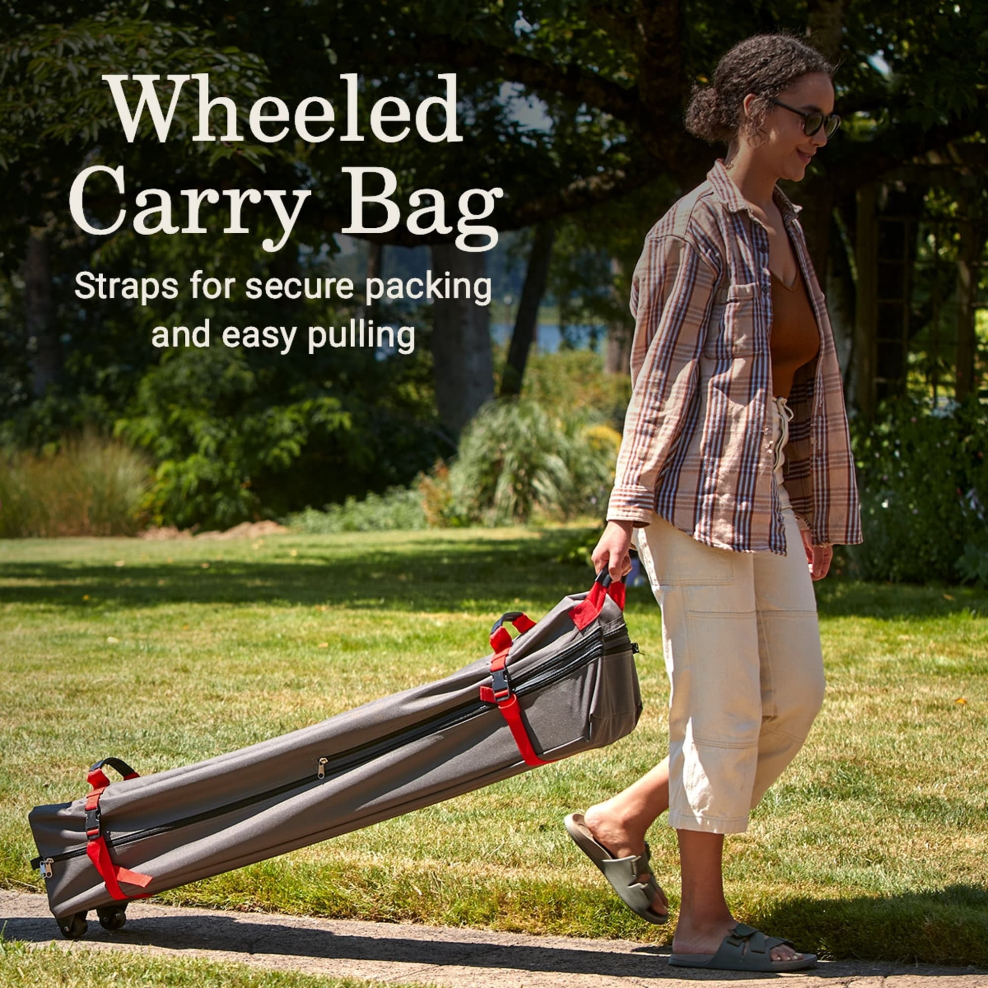 ONE-PUSH CENTER HUB: OnePeak™ technology makes setting up quick and easy; when it’s time to pack up, pull strap to take down ROBUST STEEL FRAME: Withstands winds up to 35 mph when fully staked to ground with guy lines VENTED ROOF: Releases trapped heat, so you stay cool; gear pockets at corners hold small items PINCH-FREE SETUP & TAKEDOWN: Comfort Grip™ features easy-to-use buttons for locking the poles in place when setting up or taking down SUN PROTECTION: UPF 50+ blocks sunu2019s harmful UV rays; overhanging eaves provide larger shade area (169 sq. ft.) WHEELED CARRY BAG: Includes straps for secure packing and easy pulling