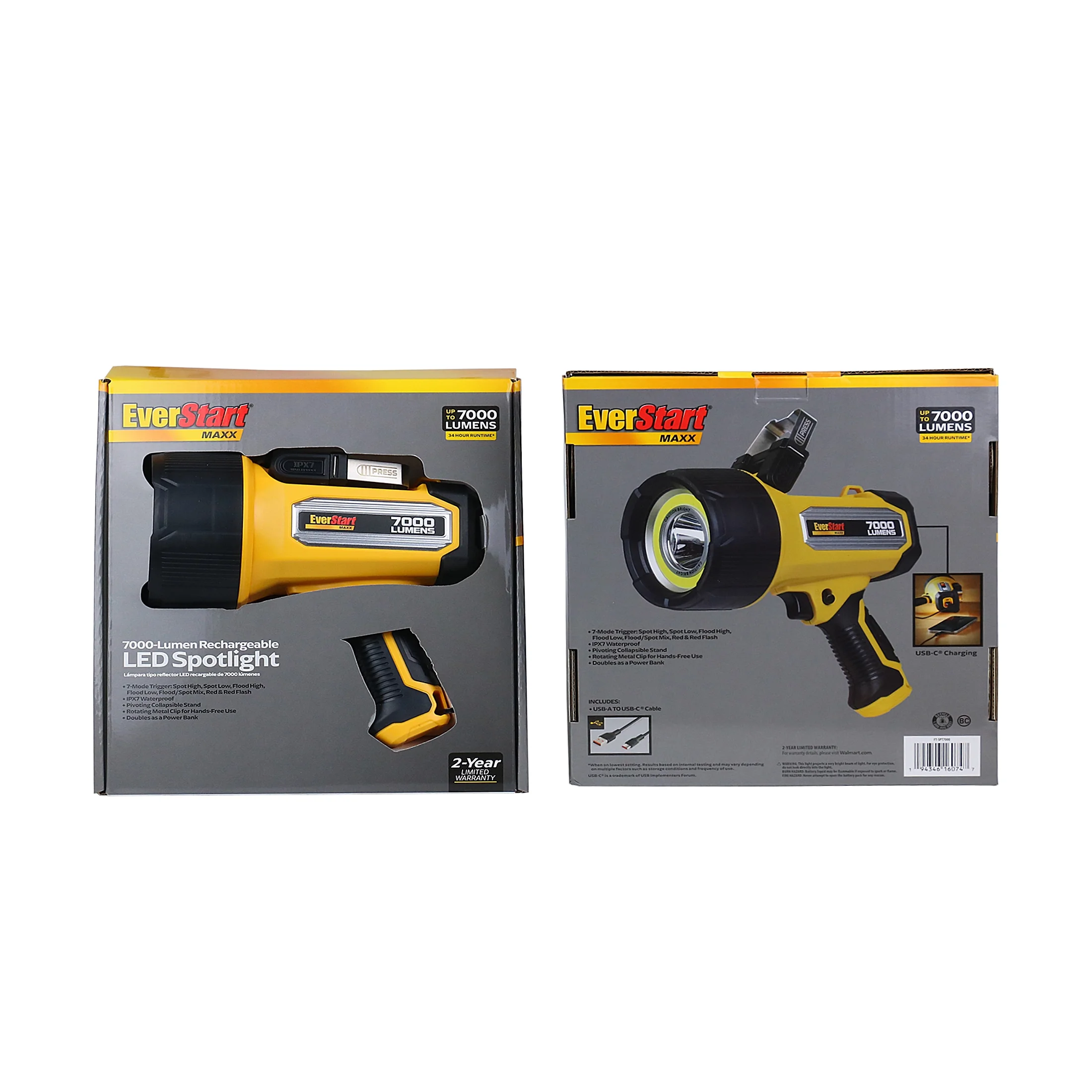(2 pack) Everstart Maxx 7000LM Rechargeable Led Waterproof Spotlight