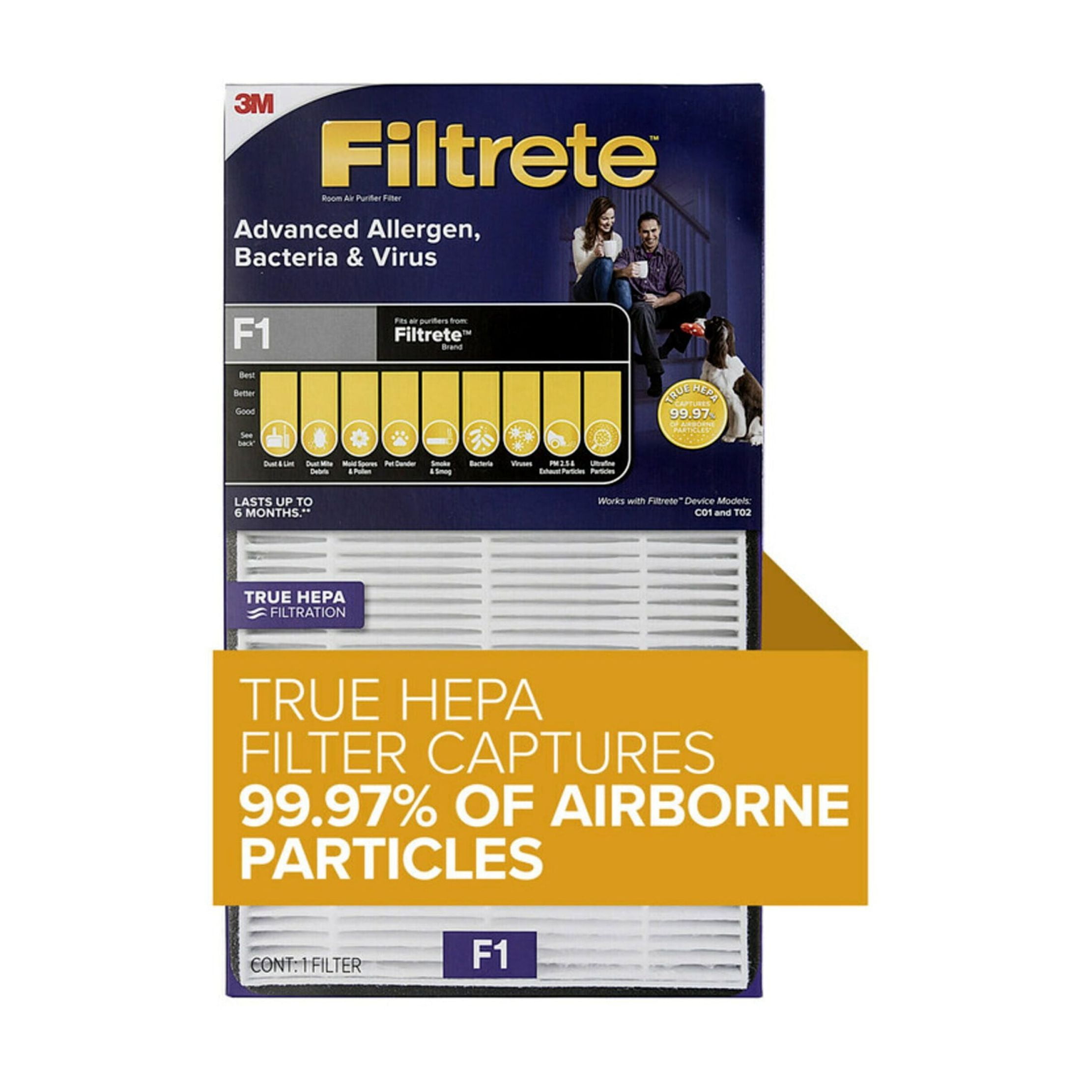 (2 pack) Filtrete Advanced Allergen, Bacteria & Virus True HEPA Room Air Purifier Filter, F1