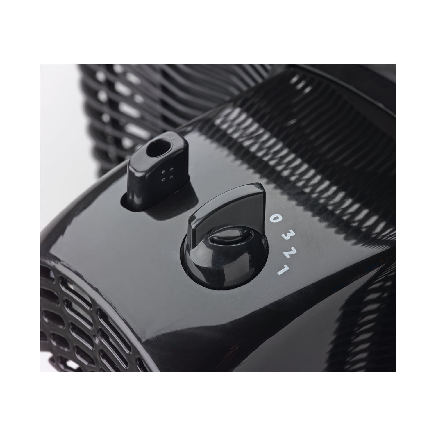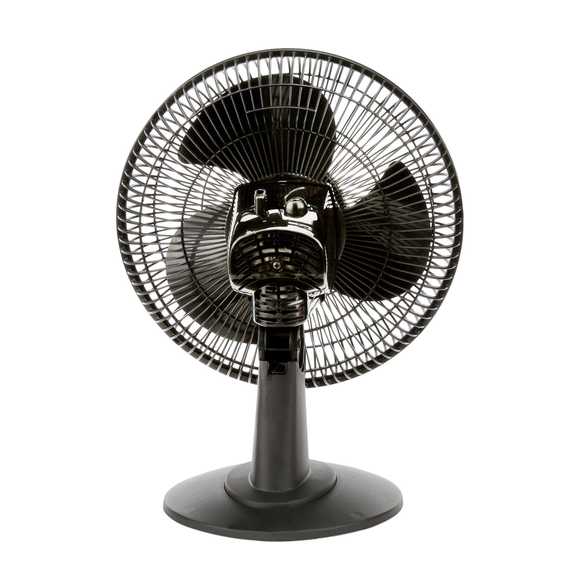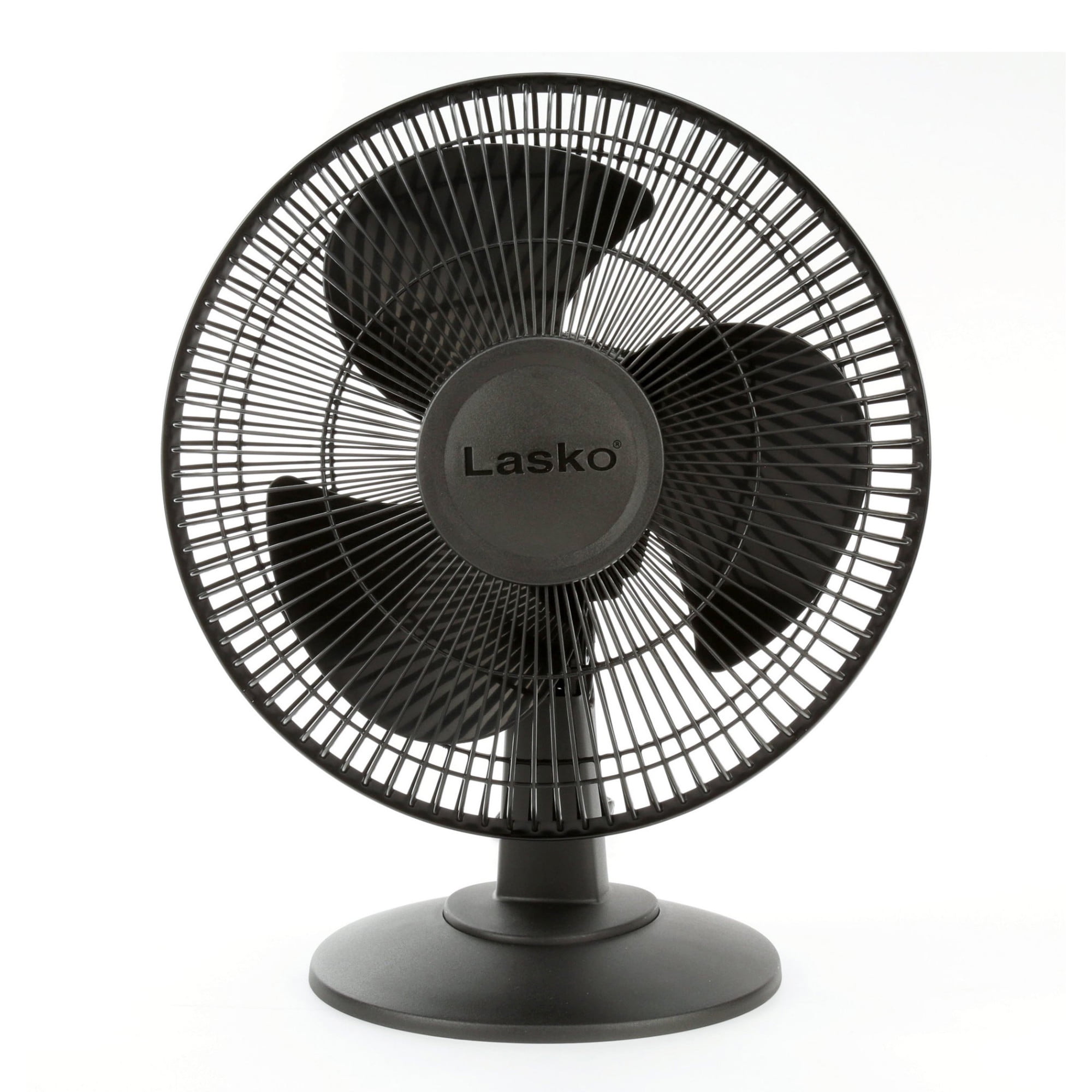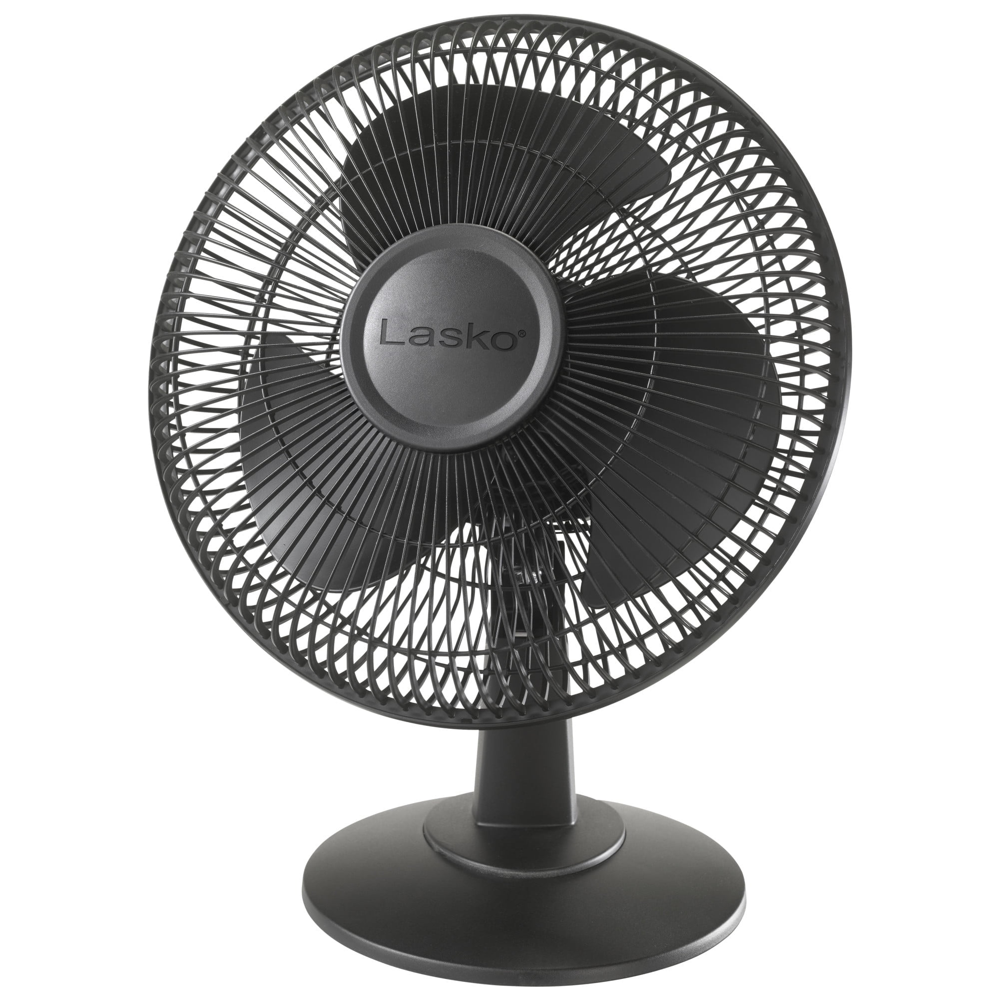 Electric fan with 3 quiet speeds for cooling comfort Optional 180-degree oscillation Tilt-back fan head to direct airflow where needed Built-in carry handle for easy portability Simple assembly required Perfect for your home office, kitchen counter, den, or any space where personal cooling is required Comes with a 6-foot power cord Equipped with Lasko’s trusted, fused safety plug 1-year limited warranty ETL Listed