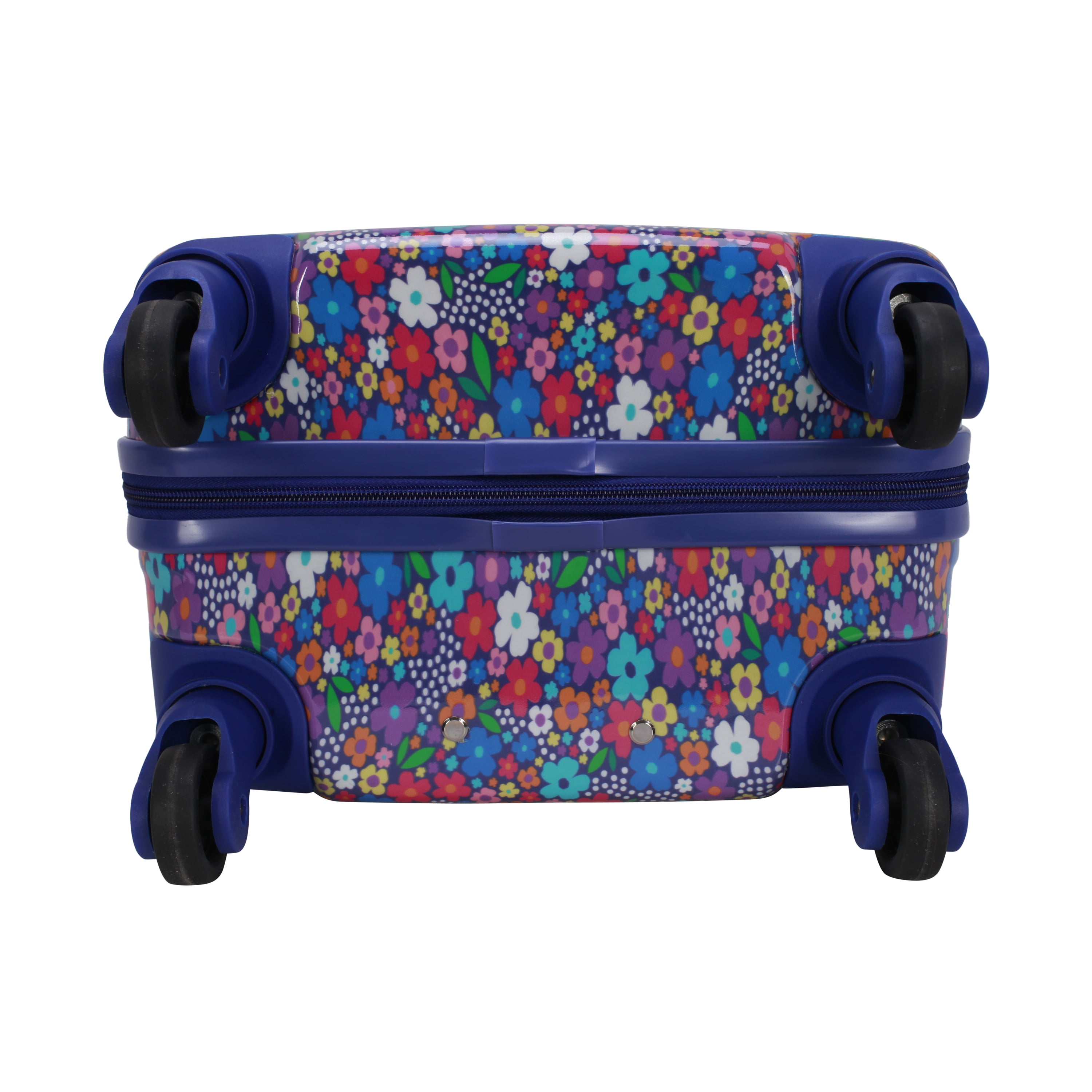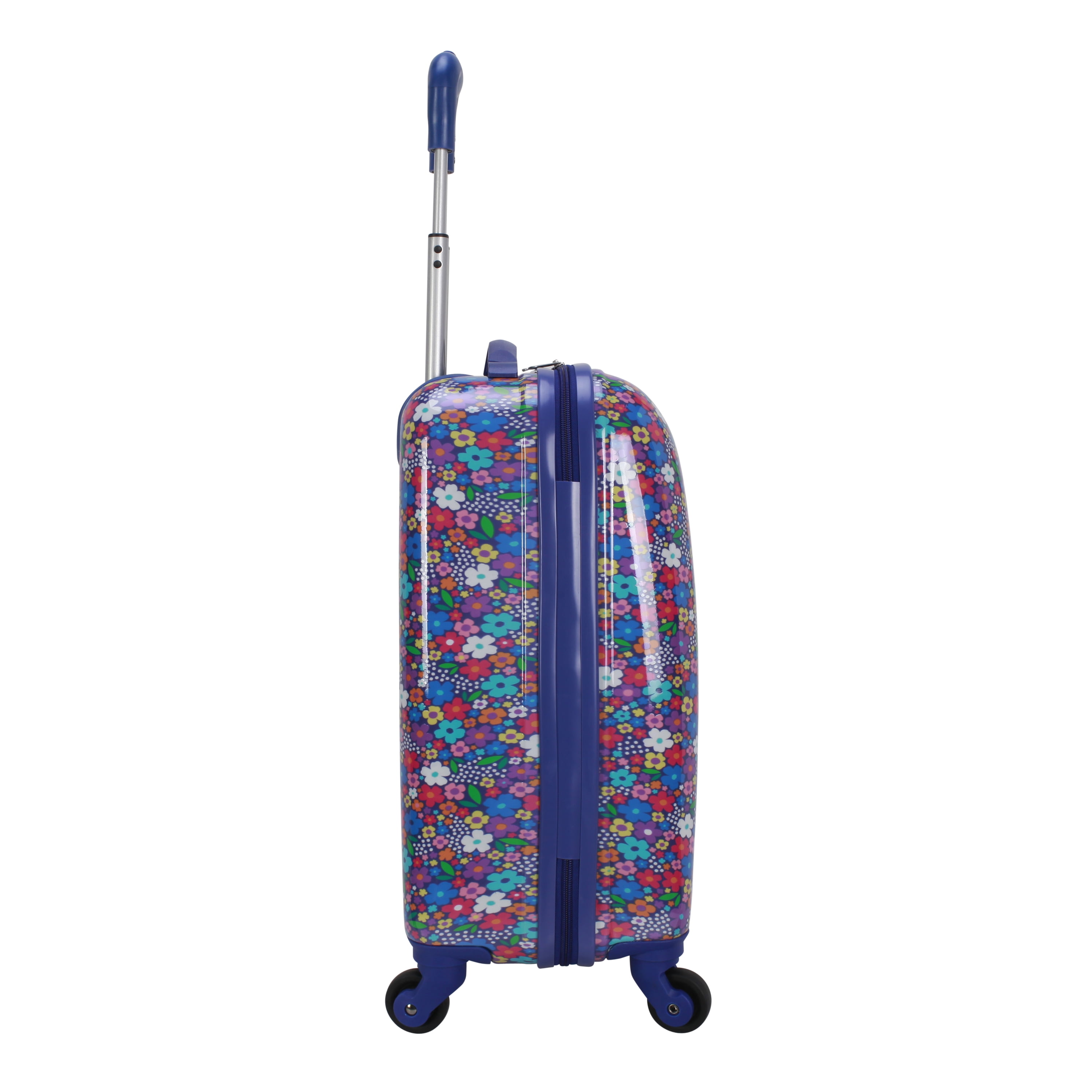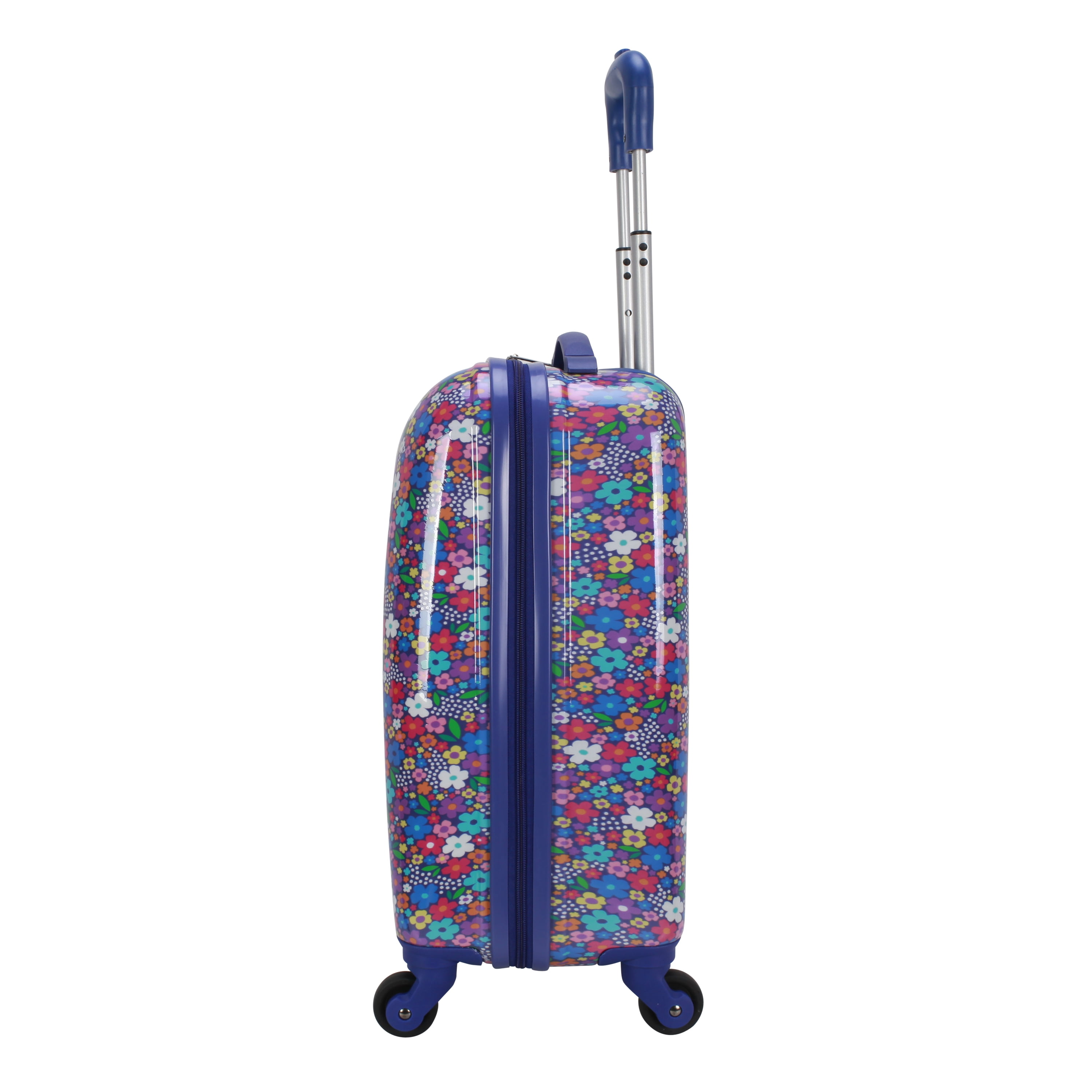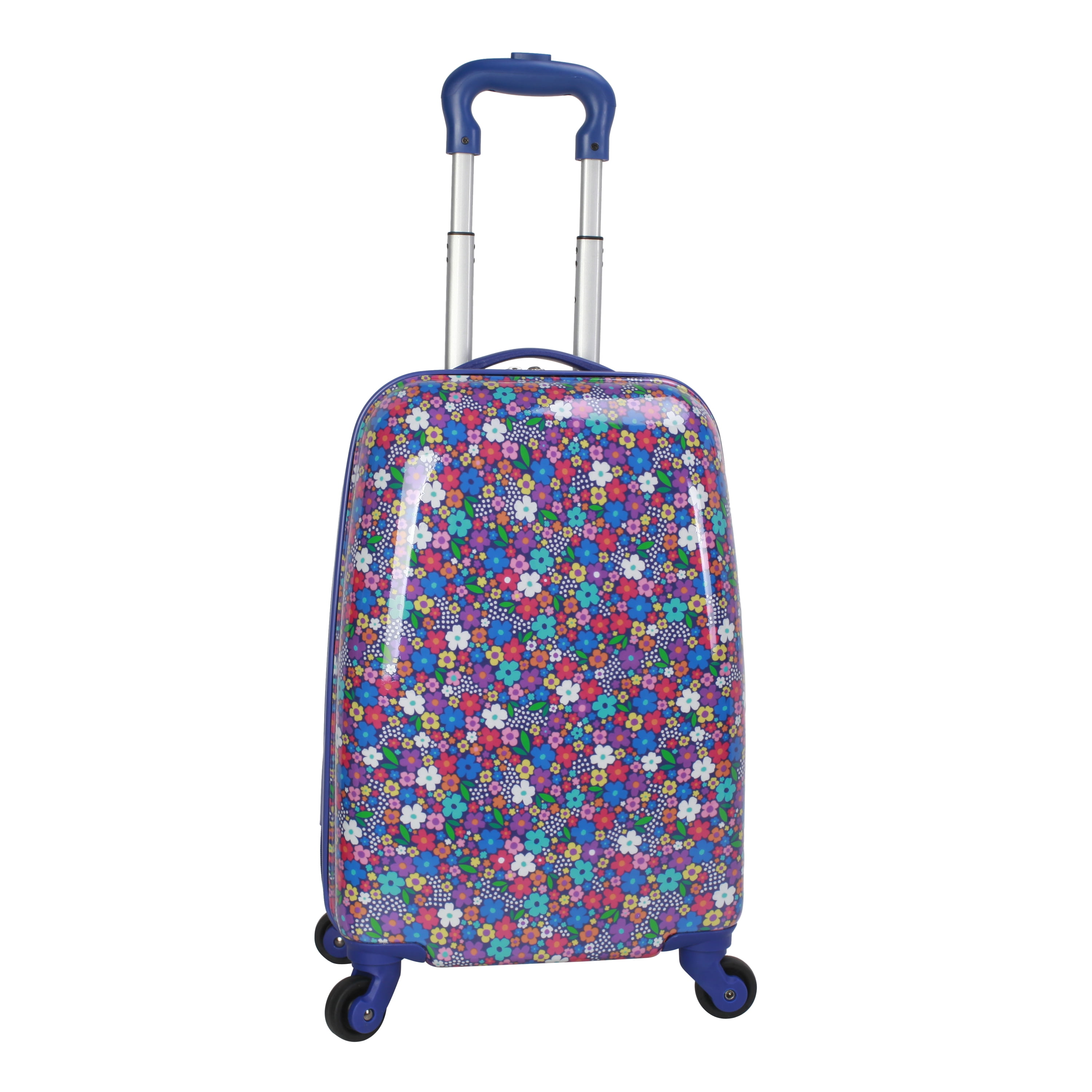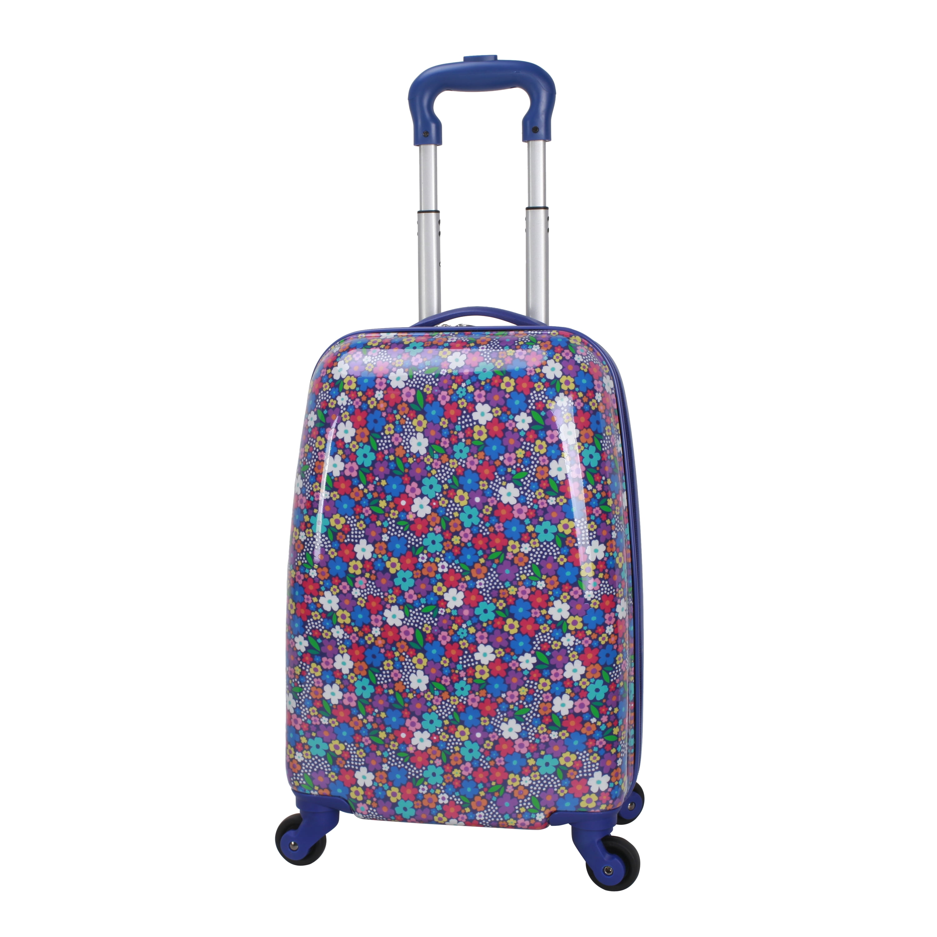 Protege 20″ Hardside Kids Pilot Case Carry-On Luggage, Flower Print Material: ABS with metal hardware Exterior measurements: 21″ x 12.5″ x 7.25″ Weight: 5.46 lbs Inside compression straps Adjustable height telescopic handle for easy rolling 360-degree spinner wheels