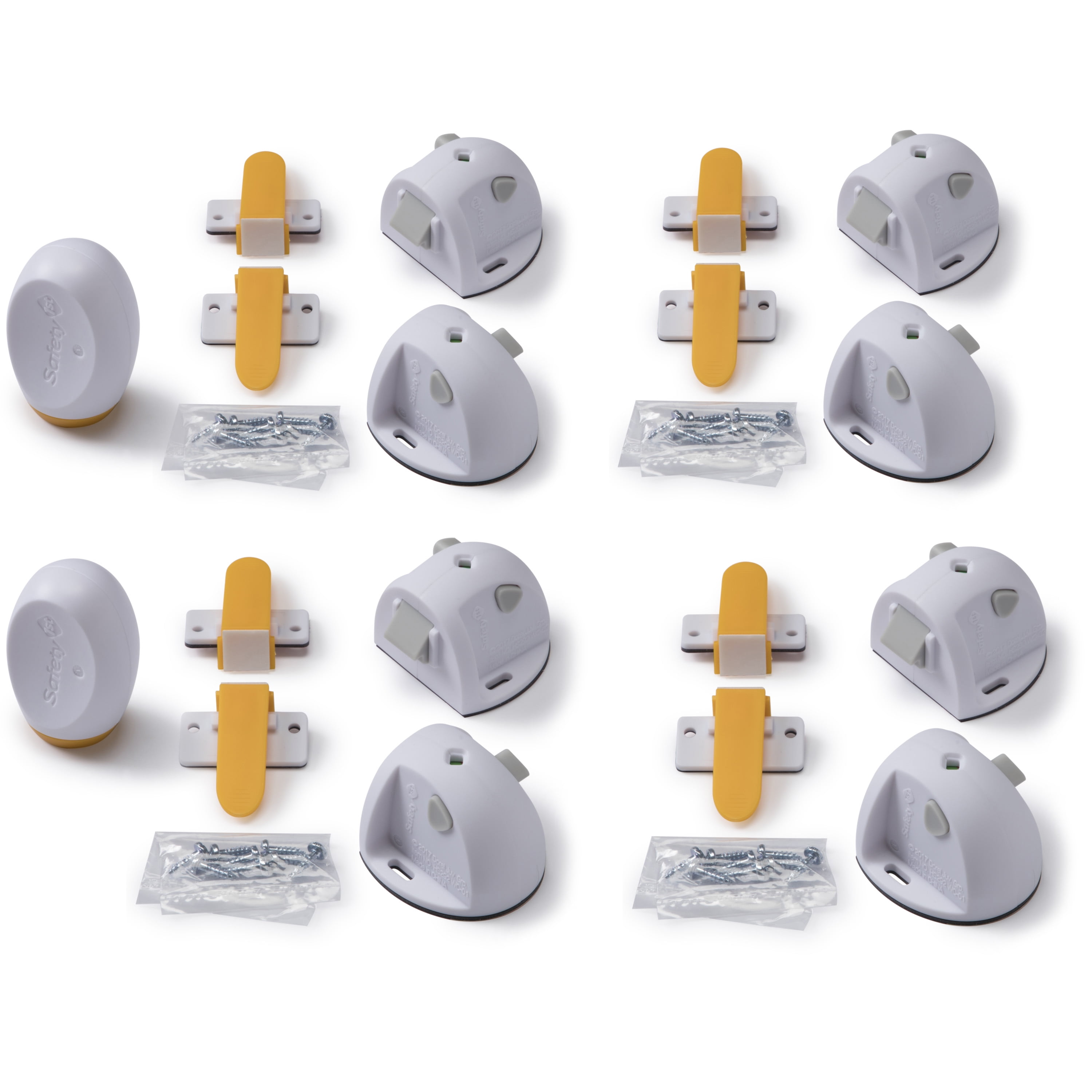 Safety 1st Adhesive Magnetic Lock System – 8 Locks and 2 Keys, White 3M adhesive provide a powerful, secure hold while making it easy to install Each lock includes a plastic template for perfect installation alignment every time No tools needed for most cabinets. Some materials, such as particle board, require the use of screws (included) Operates with a magnetic key that stores easily up high and out of child’s reach Lock installs inside cabinet or drawer for an invisible safety solution Magnetic lock disengages for periods of non-use The locking indicator lets you know that the lock is properly engaged Includes eight locks and two keys