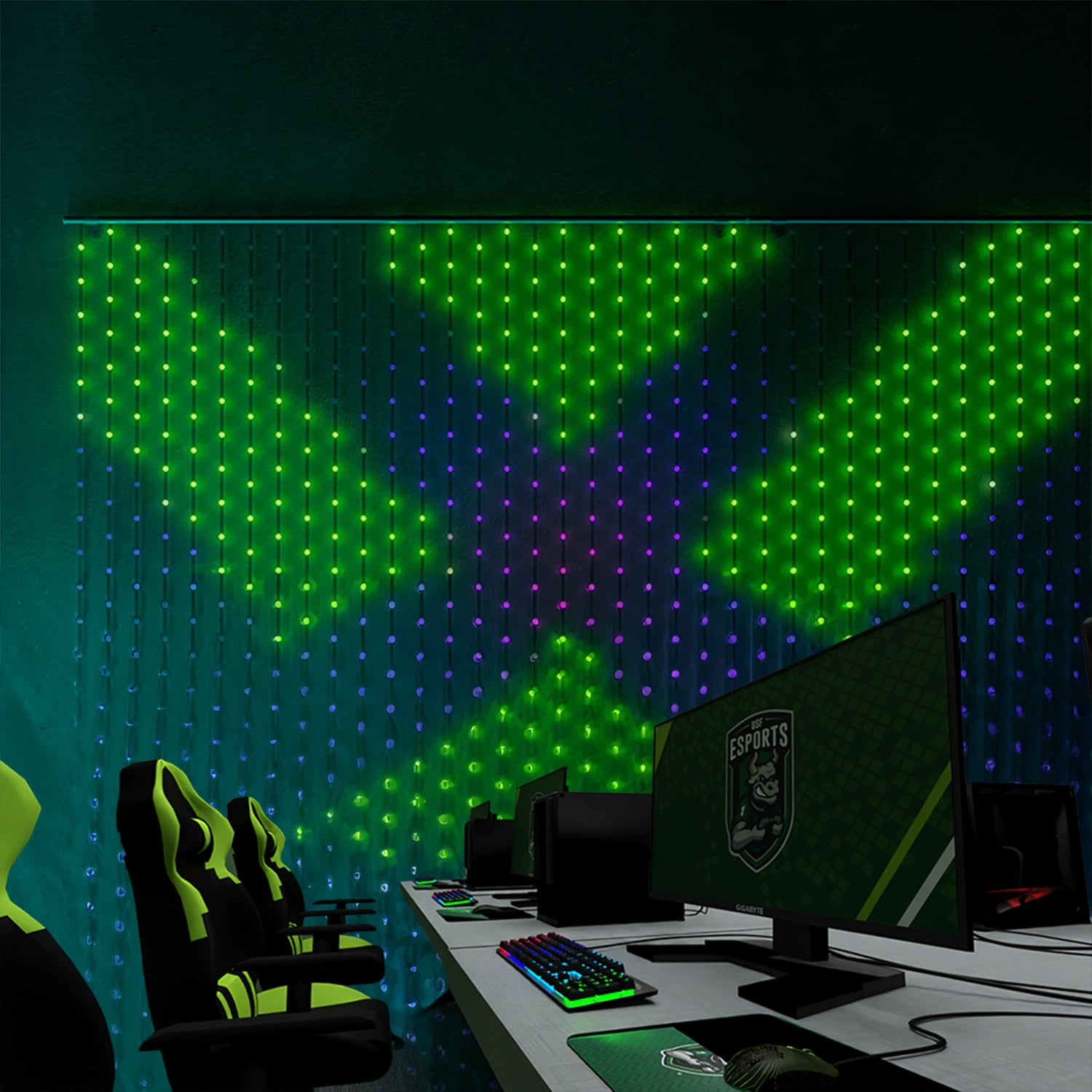 Illuminate Your Business with Intelligent Curtain Lights! Transform commercial spaces with our smart curtain lights designed specifically for businesses. Ideal for restaurants, bars and ahopping mall, our app-operated light strands offer centralized control for multiple sets, decorating exterior walls in a captivating display. The intelligent controls allow for the easy switching of a variety of images, attracting and captivating customers effortlessly, enhancing ambiance. It’s also perfect for esports hotels, creating a vibrant gaming atmosphere that sets the tone for an immersive experience. Discover the magic of our smart curtain lights! Perfect for summer family camping trips! Illuminate your outdoor escapades with ease, creating the perfect ambiance for memorable moments. Light up your adventure and elevate the fun! Also can add a festive touch to home garage doors and bedrooms with our versatile lighting solutions. Specification ??CCT: RGB Wattage: 14W Voltage: Output 5V, Input 100-240V Waterproof : IP44 Dimension: 6.6ft x 6.6ft / 3m x 3m Material: PVC Lifespan: 60000H