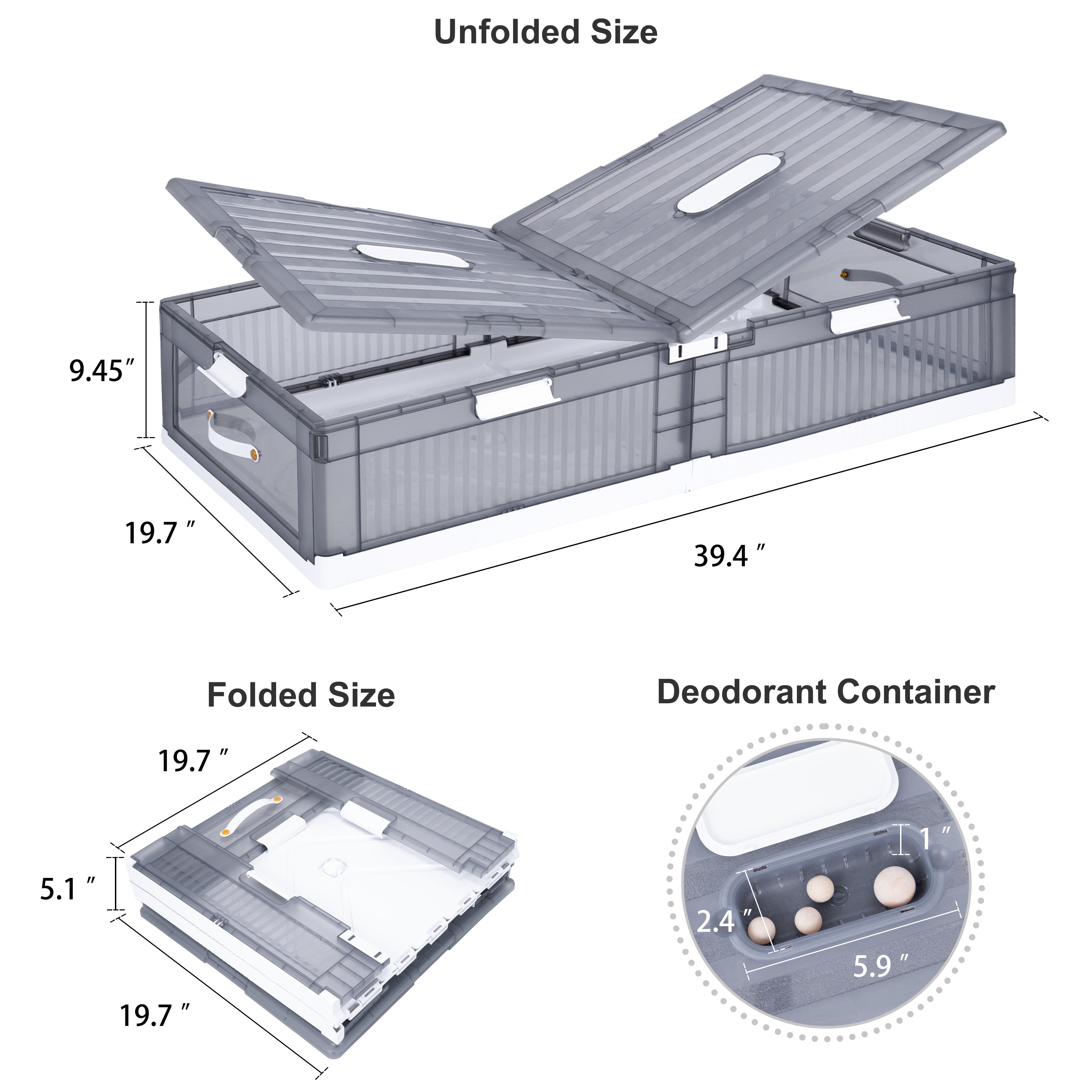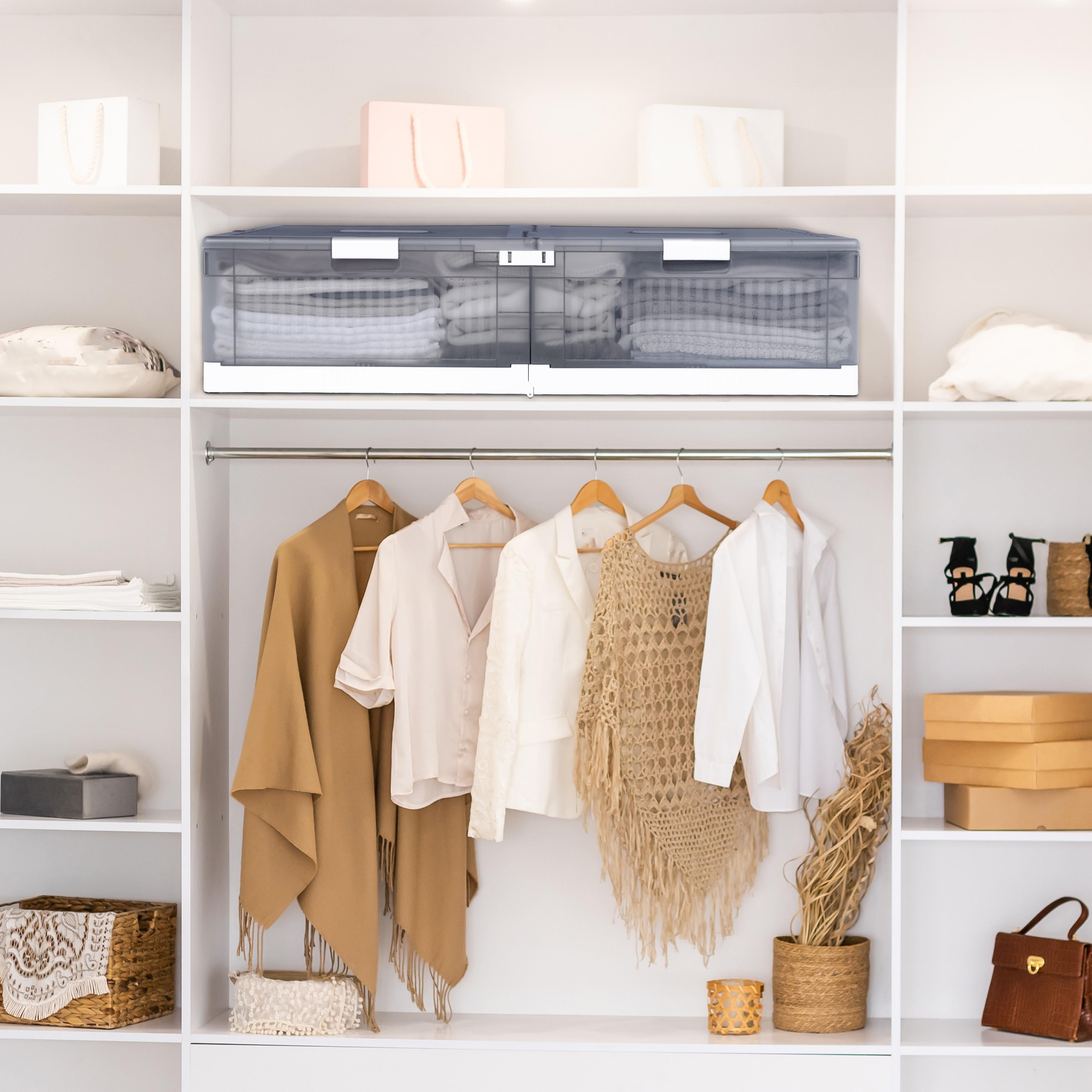 Upgrade your under-bed storage with our durable plastic container, designed to add a touch of sophistication to your space. Its translucent build allows for easy content identification, while its sturdy construction and rigid shape accommodate both soft and hard items. Equipped with smooth-gliding wheels, effortlessly retrieve items from under your bed or couch without straining your back or damaging floors. Available in shallow and deep sizes, this container caters to a variety of storage needs. Collapses flat for compact storage when not in use. Also stackable for efficient organization, it’s not only perfect for under-bed storage but also ideal for basement, garage, and attic organization.