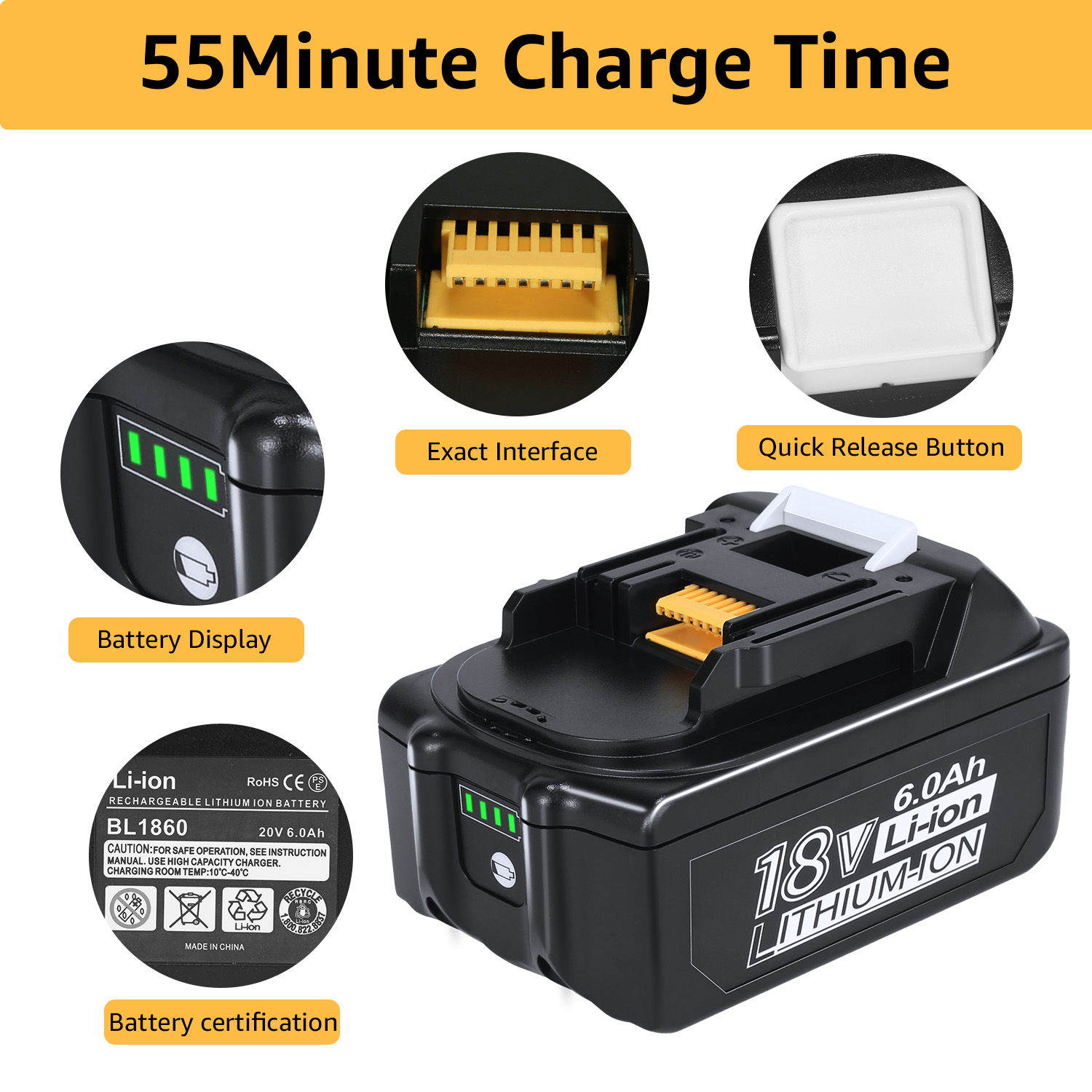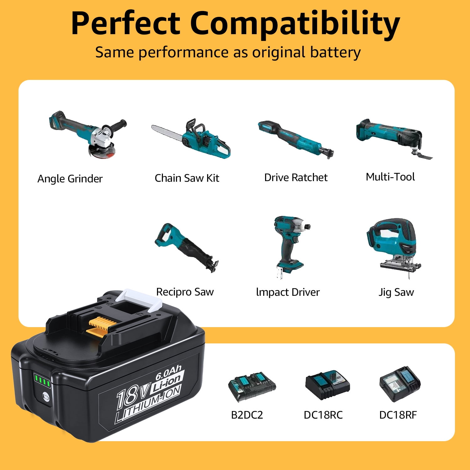 2-Pcs For Makita 18V 6.0Ah LXT Lithium-Ion BL1830 BL1850 BL1860 Tool Battery US Replacement Battery