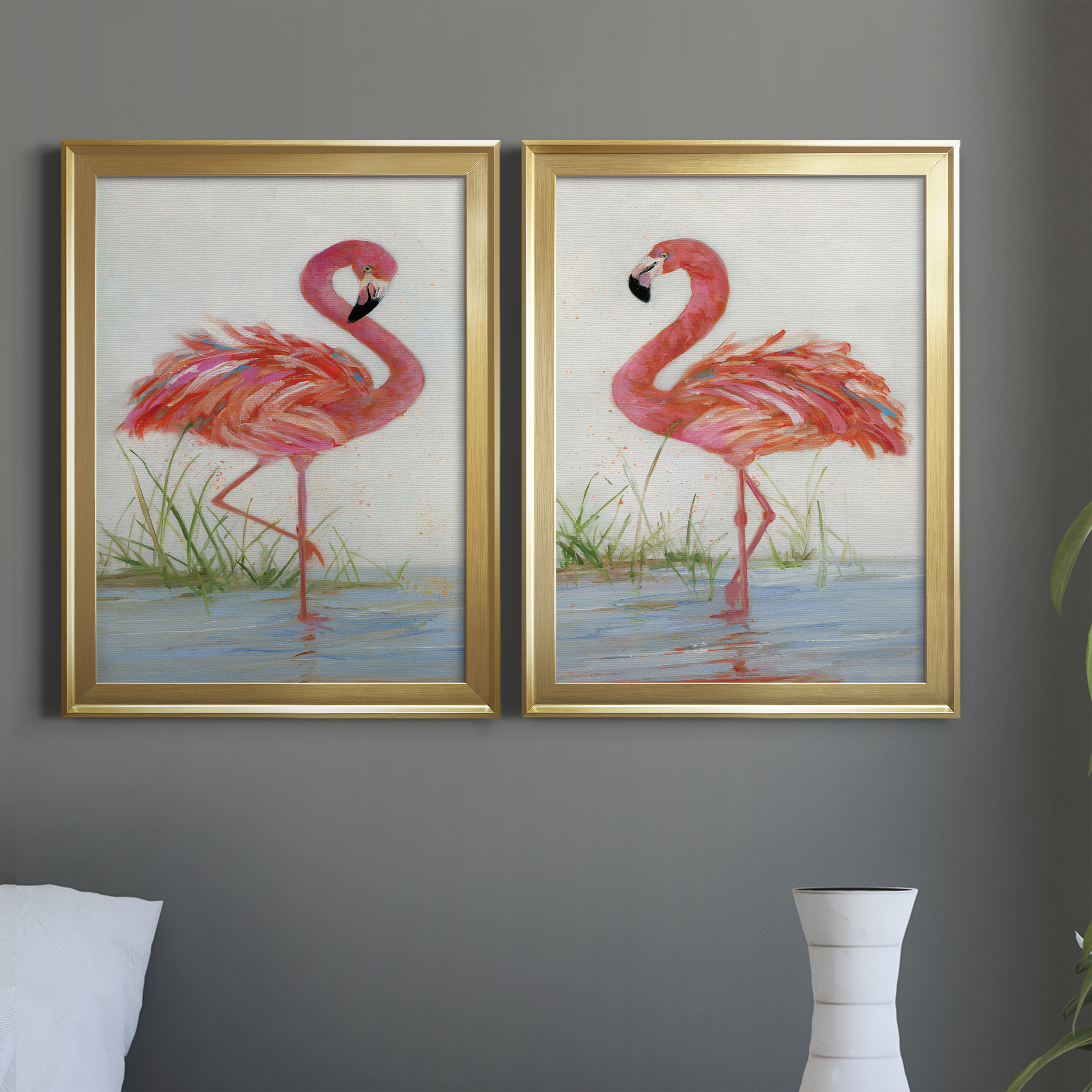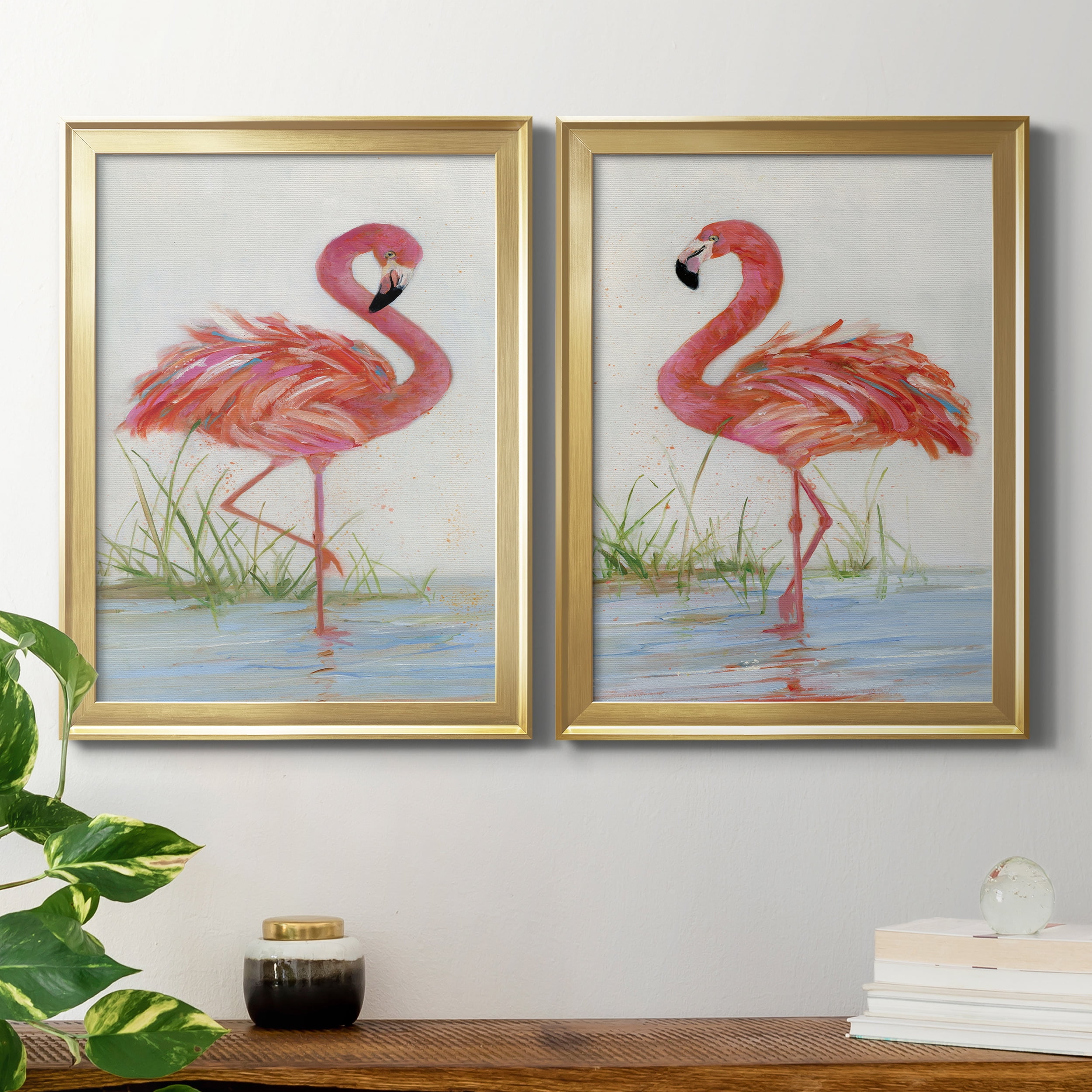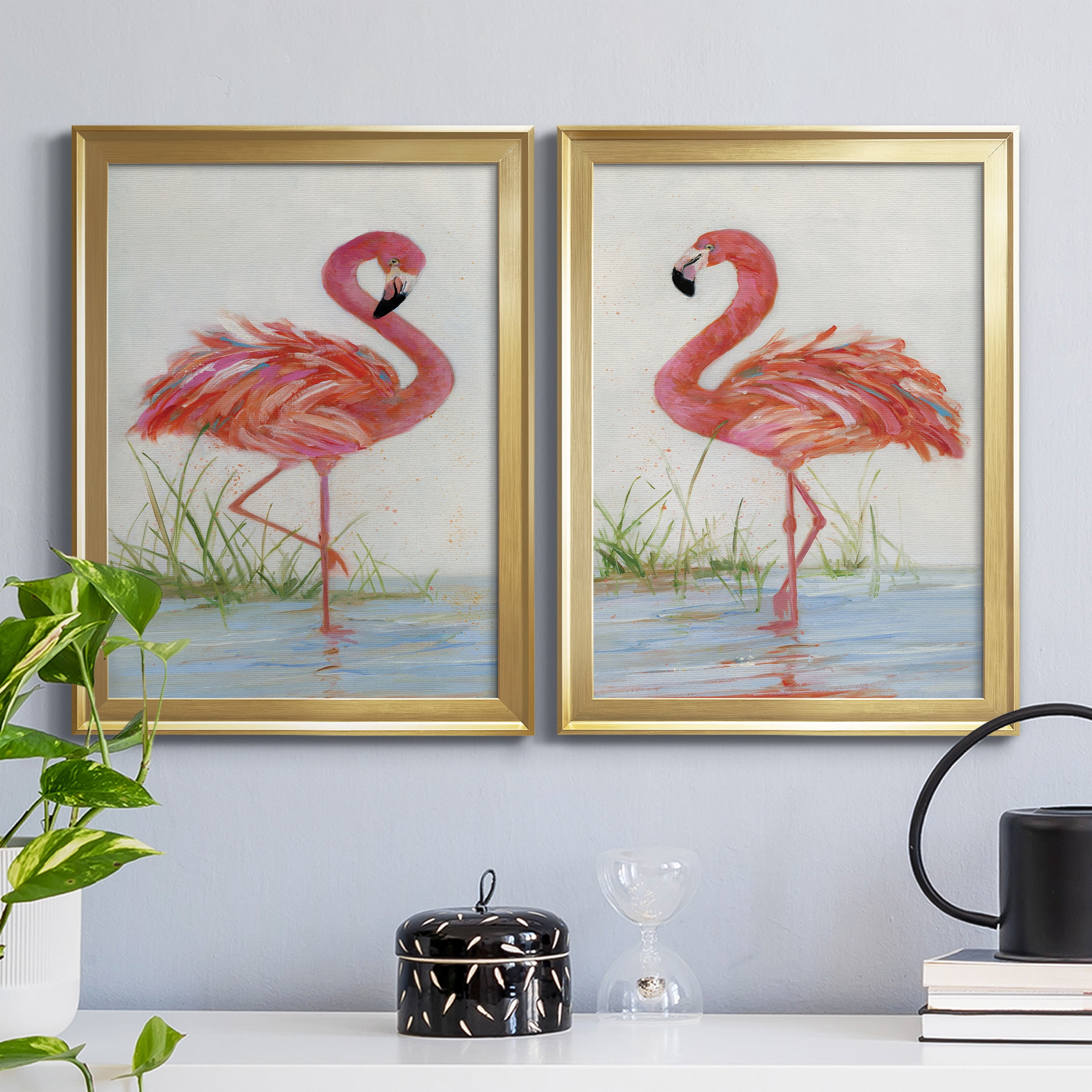 Flamingo I Premium Framed Canvas- Ready to Hang A Premium Framed Canvascreated to last. Framed in distressed wood and available in an array of sizes and colors Featuring a beveled a solid wood stretcher bar, each piece comes ready to hang 4 SIZES AVAILABLE 30.5”X42.5” – Overall Size 26.5’X36.5” – Overall Size 22.5”x30.5” – Overall Size 18.5”x24.5” – Overall Size Each piece is made to order. Each piece comes with hanging hardware. Ready to Hang Giclee Paper Print Acrylic Glass Beveled Matt Board