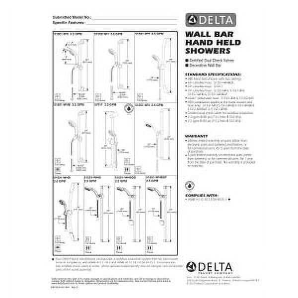 Spray settings include: Full Body spray Full body spray provides a steady, full-coverage spray perfect for every shower need, from rinsing shampoo from hair to relaxing tired muscles Pause feature reduces water to a trickle, giving you space for shaving, lathering and other shower tasks while maintaining your temperature settings 24″ long wall bar with adjustable slide WaterSense® labeled showers use at least 20% less water than the industry standard—saving you money without compromising performance