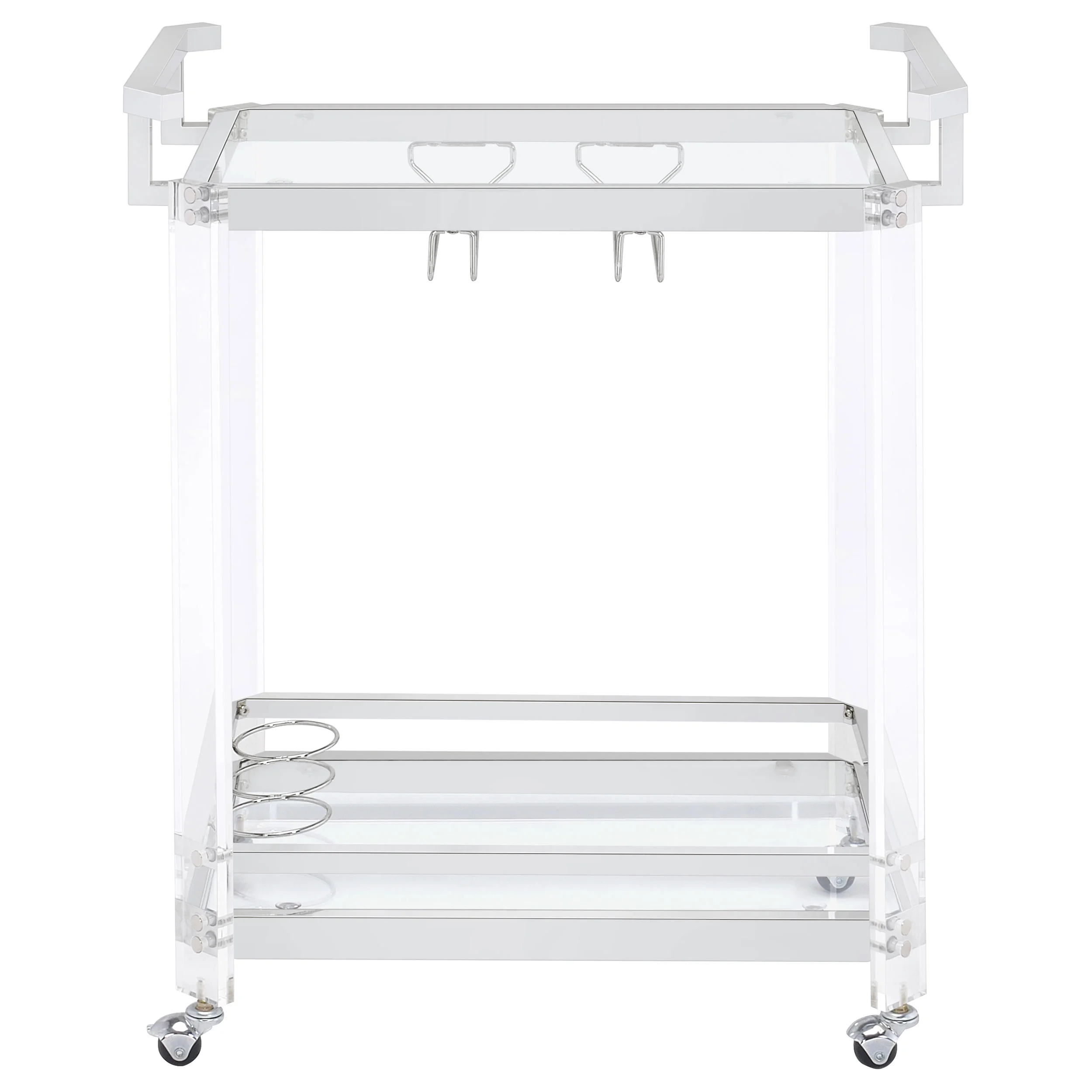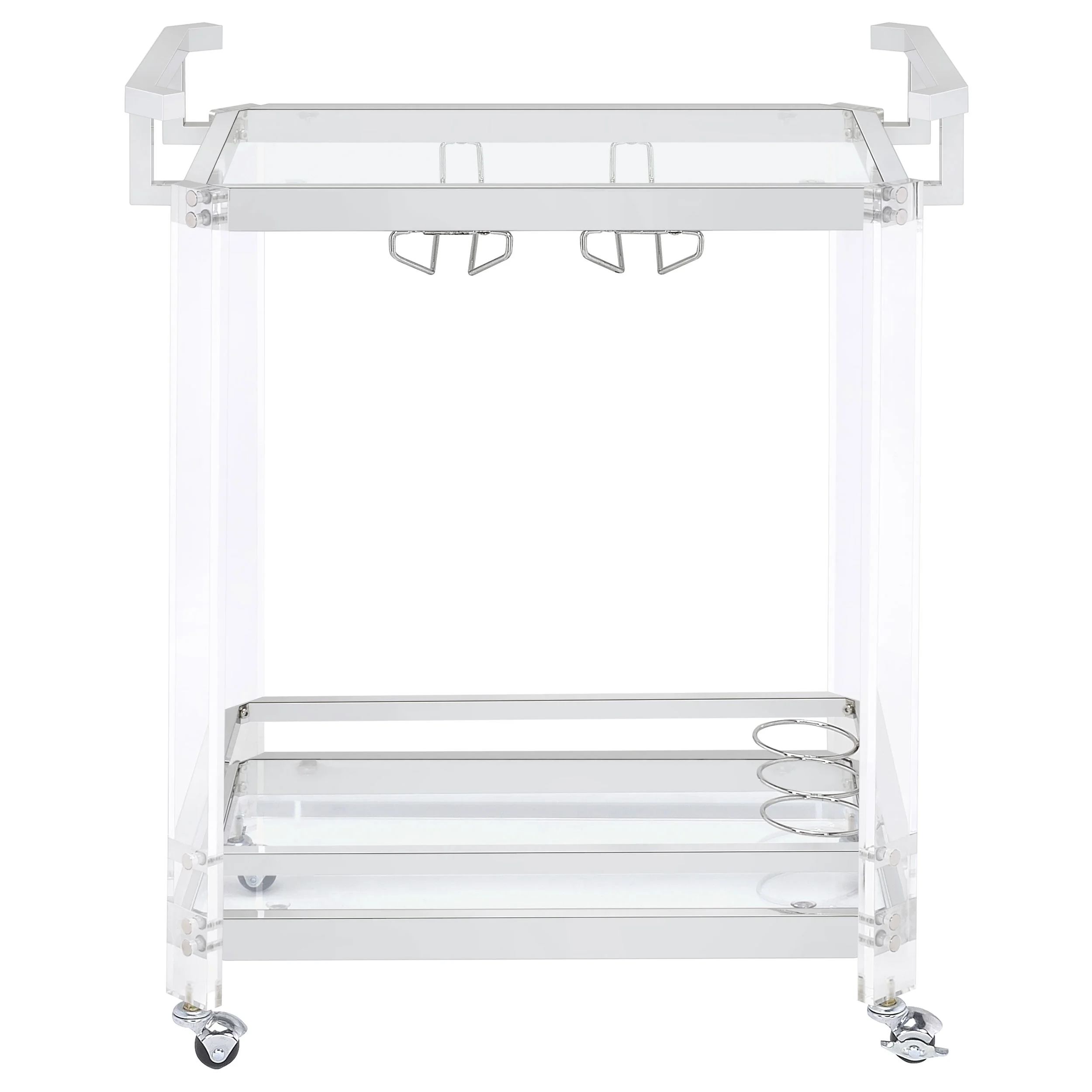 Jefferson 2-tier Glass Shelf Acrylic Bar Cart Chrome