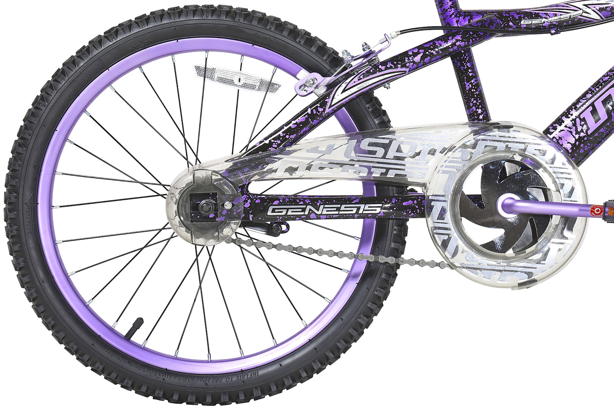 Motivating Design: The Dynacraft Inspire 20-inch Girl’s bike is designed to inspire and motivate her for exciting adventures, featuring a sleek purple and matte black frame with vibrant purple, silver, and white details. Comfortable Ride: With a padded saddle and comfortable handlebar grips, this bike ensures a comfortable and enjoyable riding experience for female riders. Child Safety Assured: Crafted with a durable steel frame and equipped with both a rear coaster brake and front and rear caliper brakes, safety is a top priority, providing parents with peace of mind. Hours of Fun: This bike is built for hours of outdoor excitement and fun, making it the perfect companion for young riders seeking adventure and exploration. Includes Front BMX Freestyle Pegs