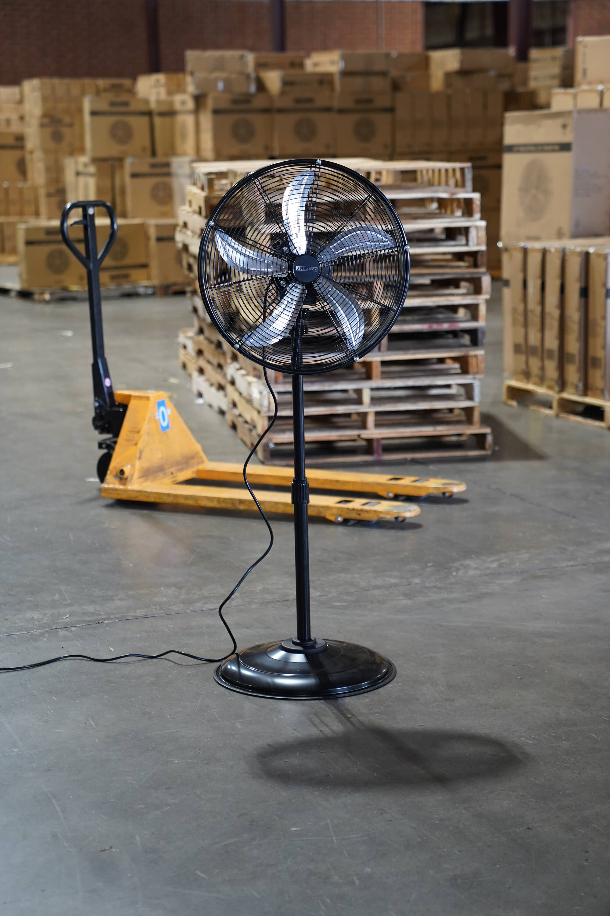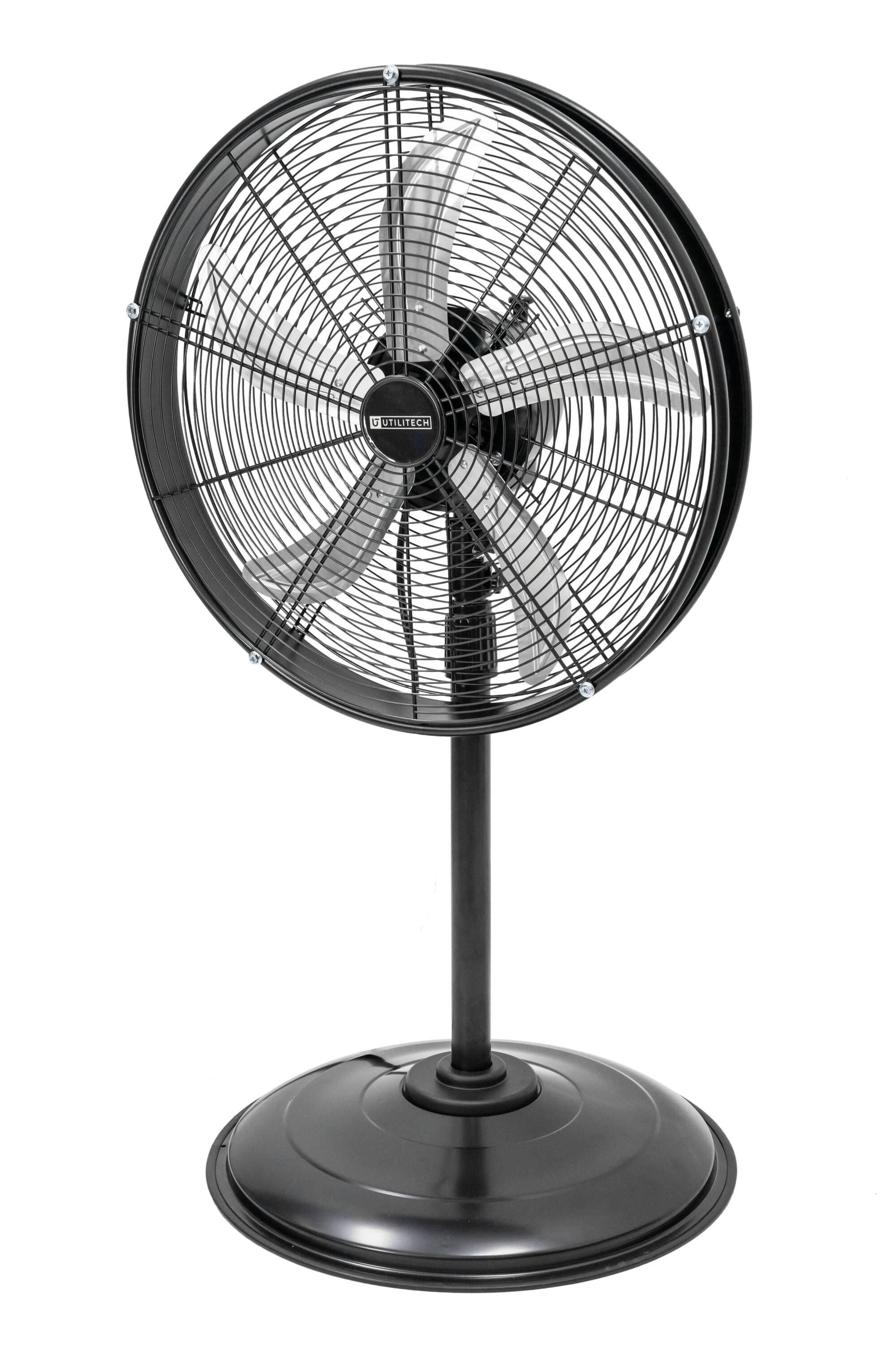 The Utilitech 20 inch high-velocity, oscillating, pedestal fan with shroud is a commercial-grade unit that performs on the job day in and day out. It provides directed airflow, cooling large areas and with ease due to its three high-velocity speeds and metal blades designed for maximum air movement. Versatile and portable, the height can be changed and the head tilts to provide air flow exactly where needed. Rugged and durable, this fan will help cool your warehouse, workshop, patio or garage. This Utilitech fan is packed with features to maximize air flow in your space.