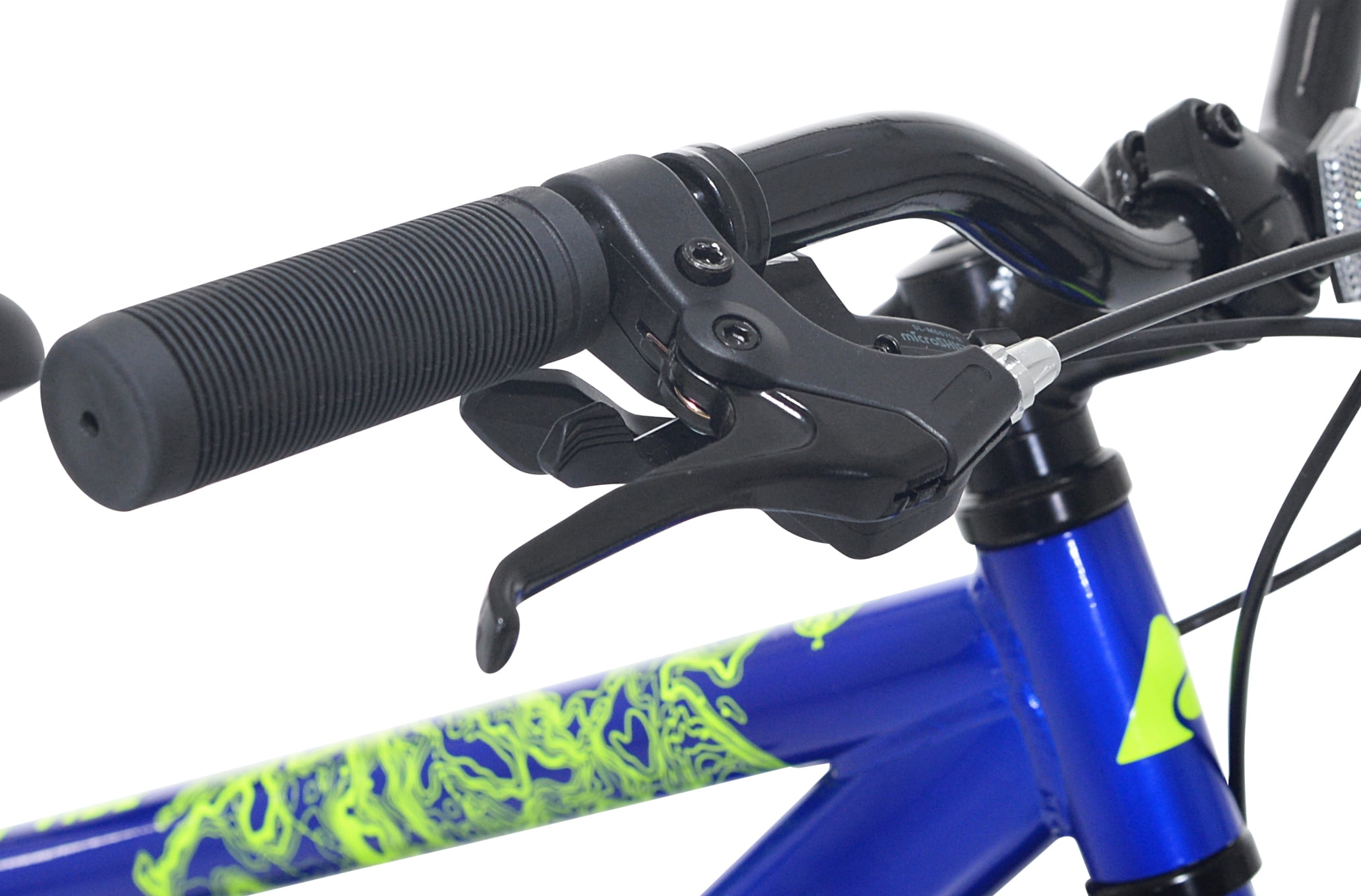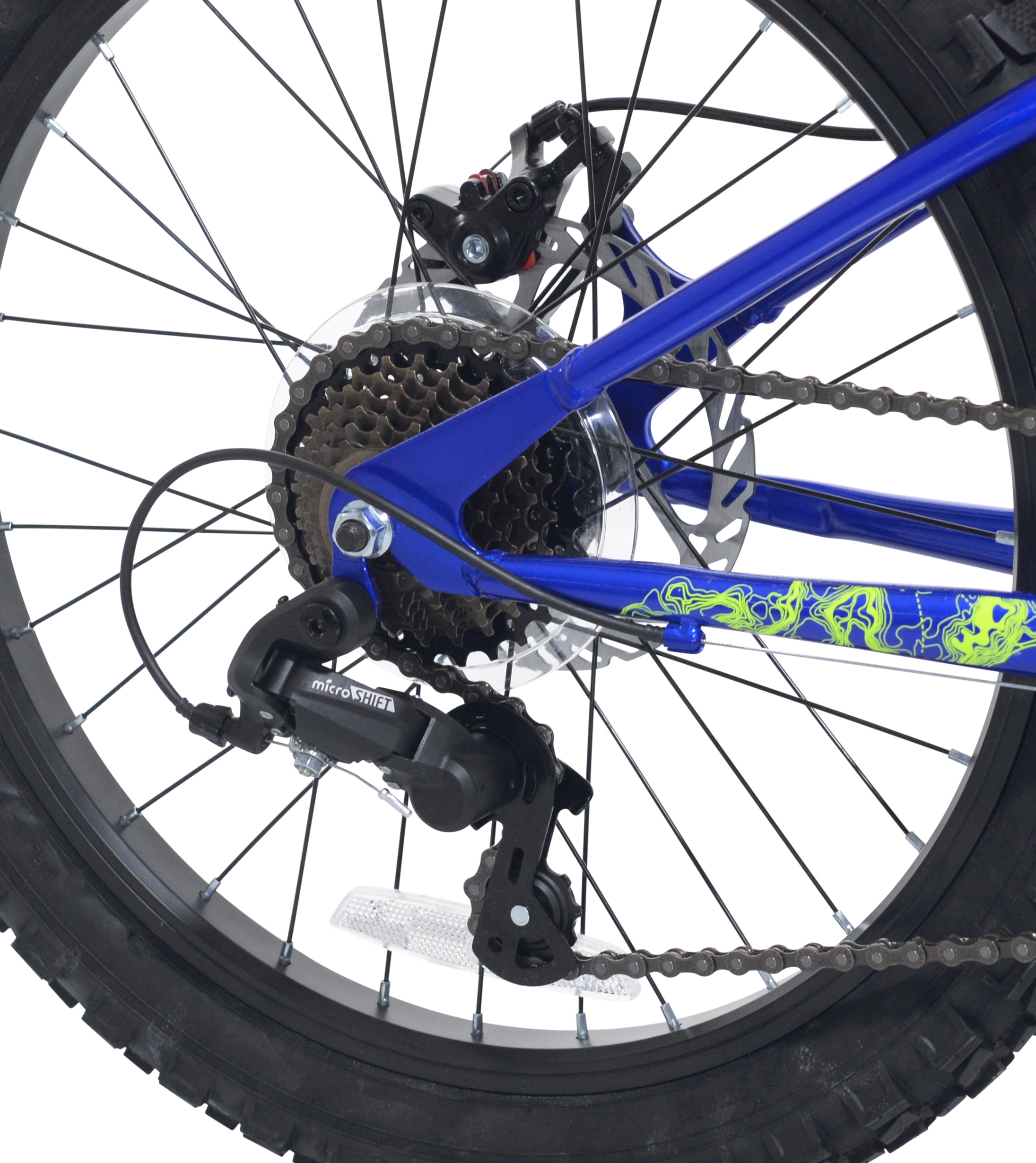 Rider Height Range 3’11” – 4’4” Gender: Unisex Sturdy steel hardtail frame and fork 20″ x 2.4″ Tires / Schrader valve tube Handlebar-mounted quick trigger shifters Front and rear mechanical disc brakes Net Weight: 28.9 lbs 1 x 7 Microshift MTB drivetrain Padded MTB saddle with adjustable height Age Group: Child/Tween