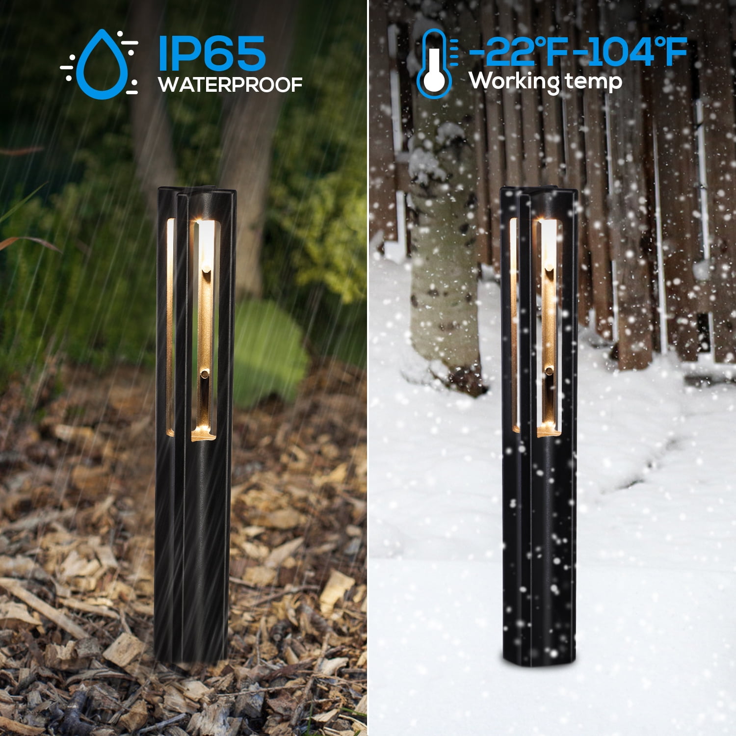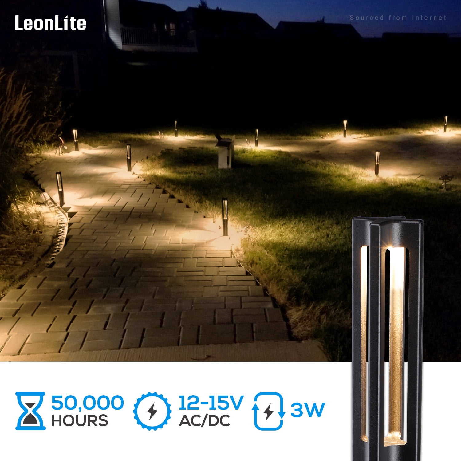 LEONLITE’s LED landscape path light is the perfect choice for both decorative landscape and garden lighting. Outstanding Lighting The 172lm of cozy 3000K Warm White light makes this light perfect for lighting gardens, lawns, yards, and walkways at night. Trusted Quality This landscape light uses both AC/DC 12V low voltage energy, making it safe to use around people and pets. The IP65 waterproof rating and rugged aluminum housing make it corrosion and rust-resistant. Note: 1. This light is designed to operate on 12V-15V AC/DC low voltage. If you have a 120V home circuit, you will need to install a transformer before connecting the light to it. 2. When installing this light, be sure not to exceed the overall rated energy of the transformer. To ensure proper wiring, it is recommended that you use 12AWG, 14AWG, 16AWG, and 18AWG wires as the main wires. 3. Transformers, wires and wire connectors are not included. Warranty This product comes with a 24-month warranty for your rights and benefits as a customer, satisfaction guaranteed. Specifications: Wattage: 3W Voltage: 12V AC/DC Luminous flux: 172lm Lifespan: 50,000hrs Beam angle: 160° CCT: 3000K Warm White Working temp: -22℉-104℉ Waterproof rating: IP65 Material: Aluminum Finish color: Black