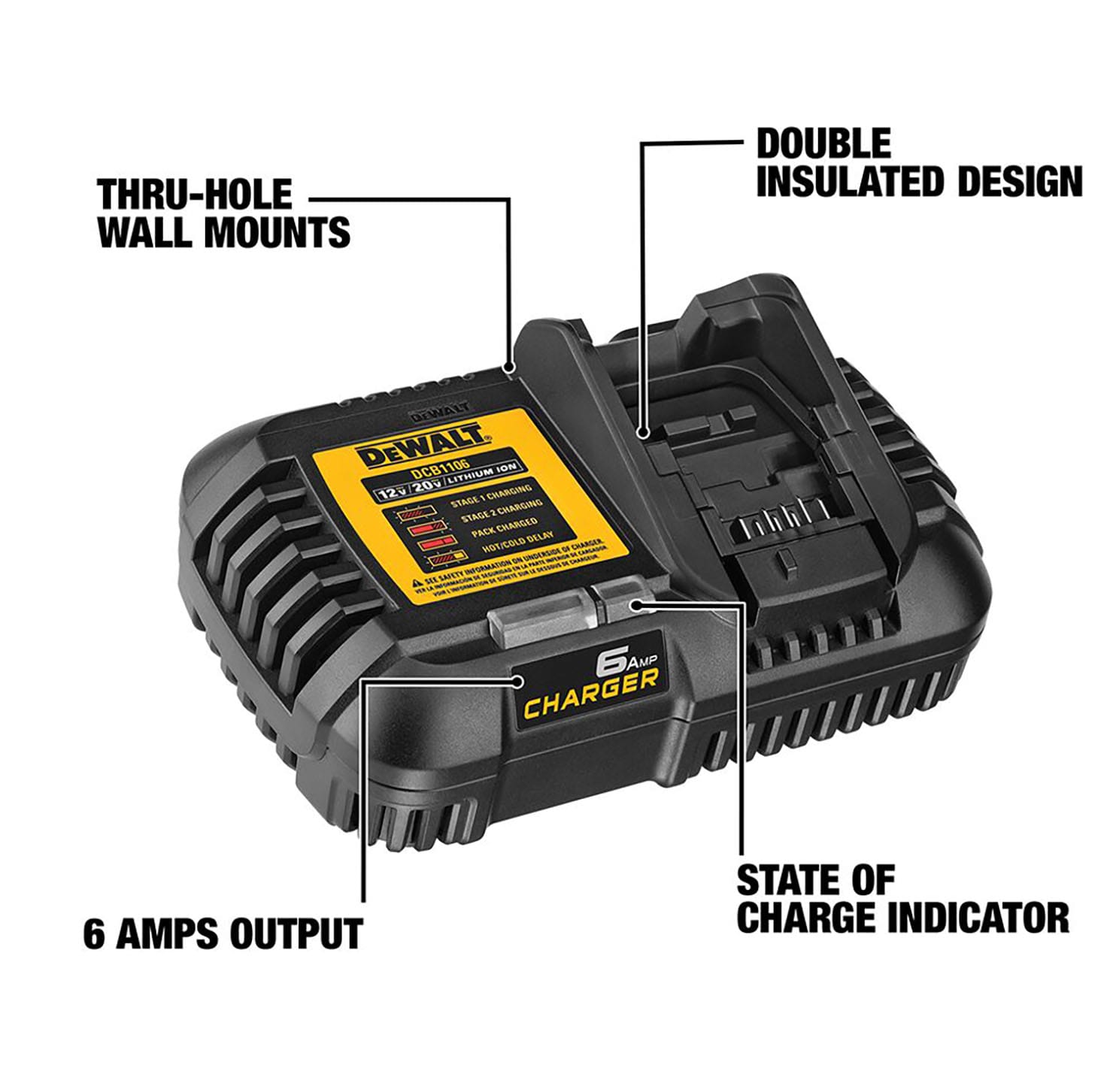 Package Contents: (1) DCB1106 12V MAX/20V MAX/FLEXVOLT 6 AMP FAST CHARGER