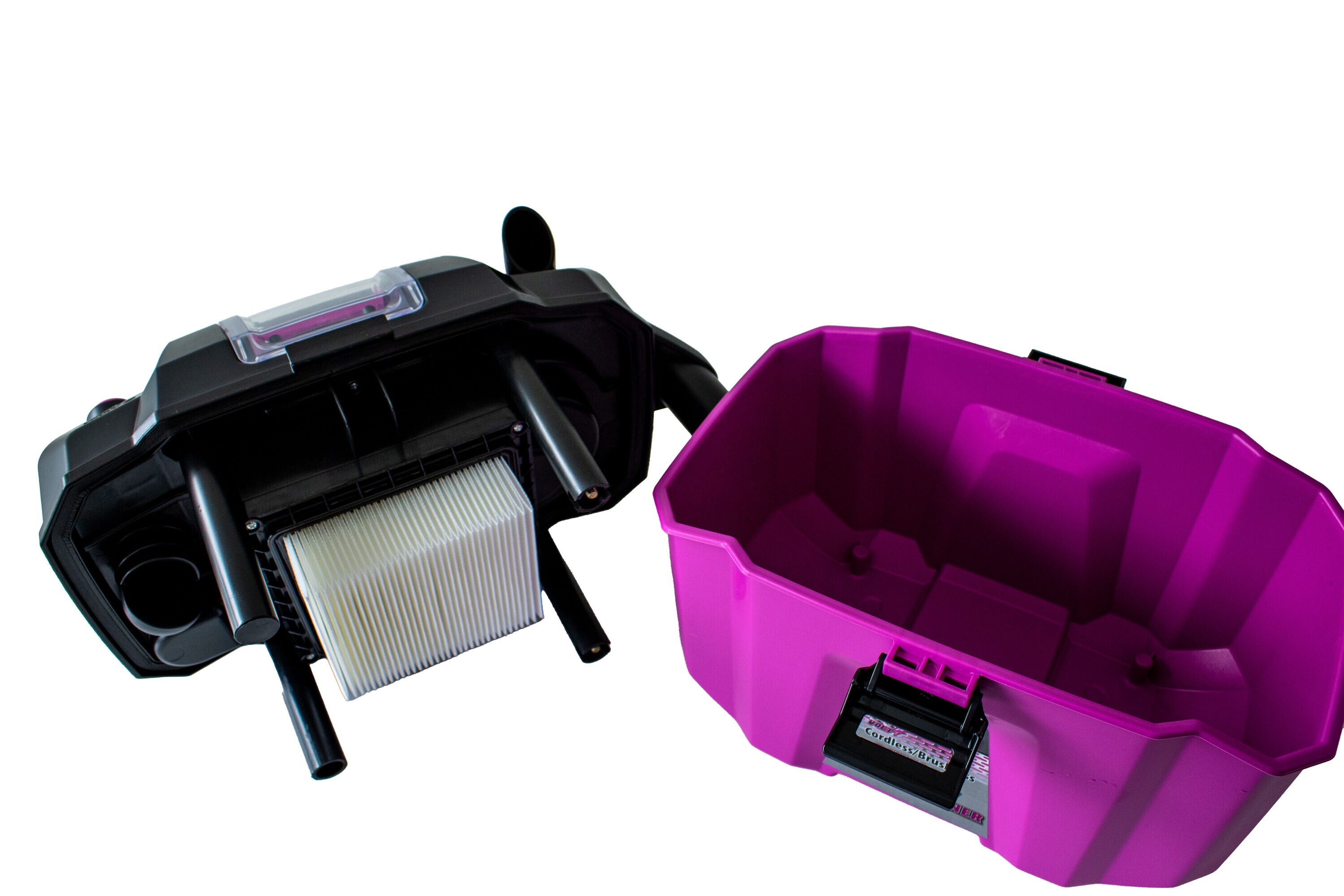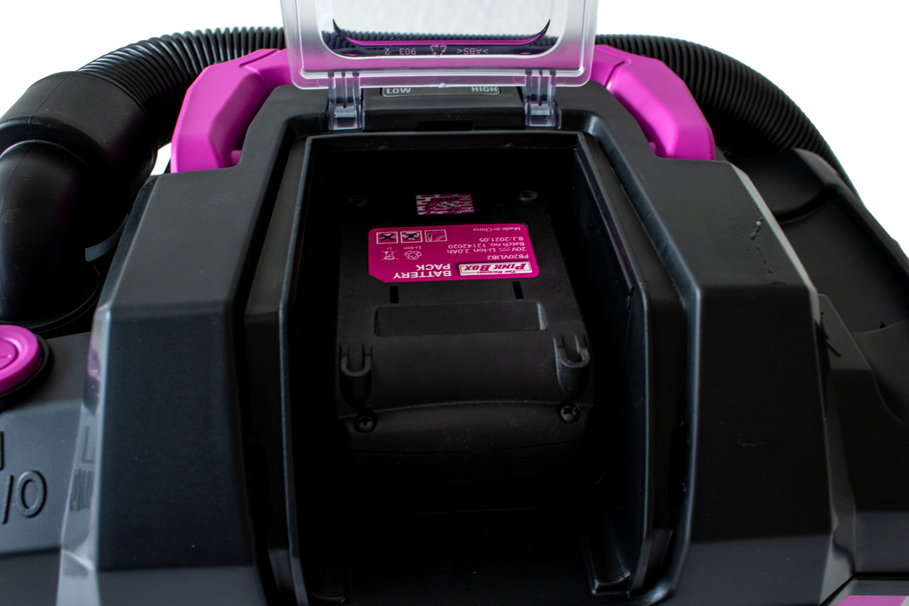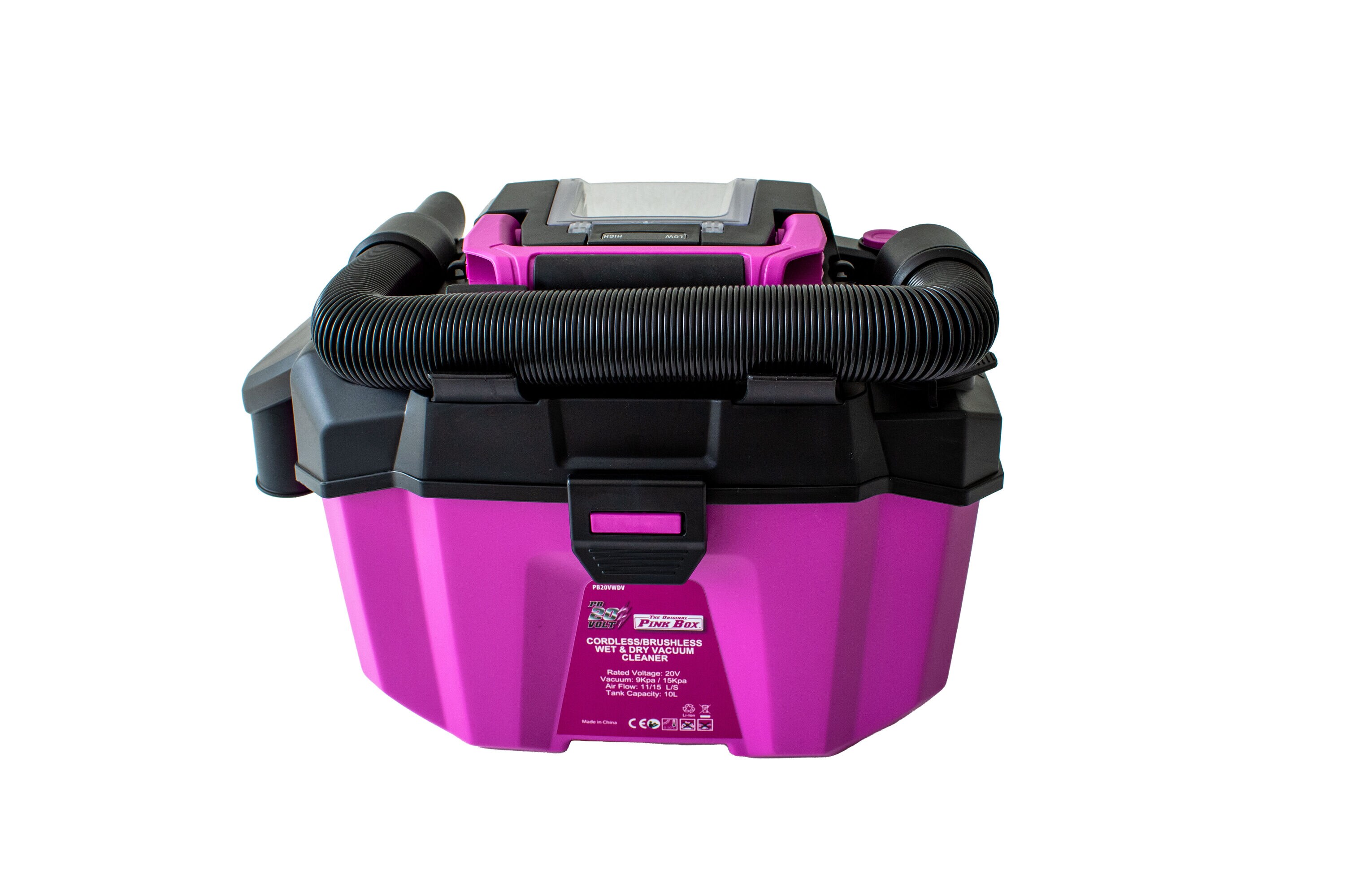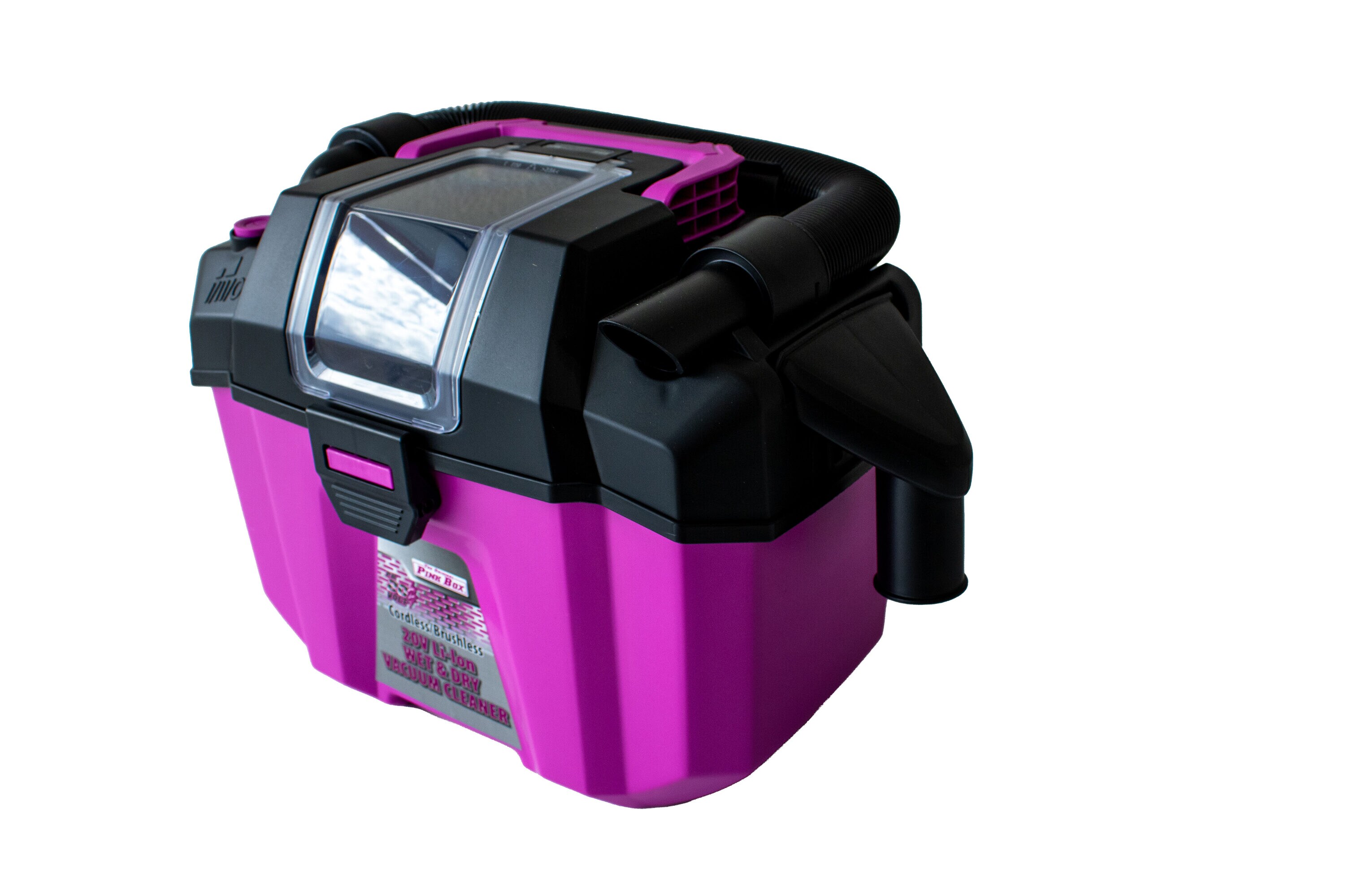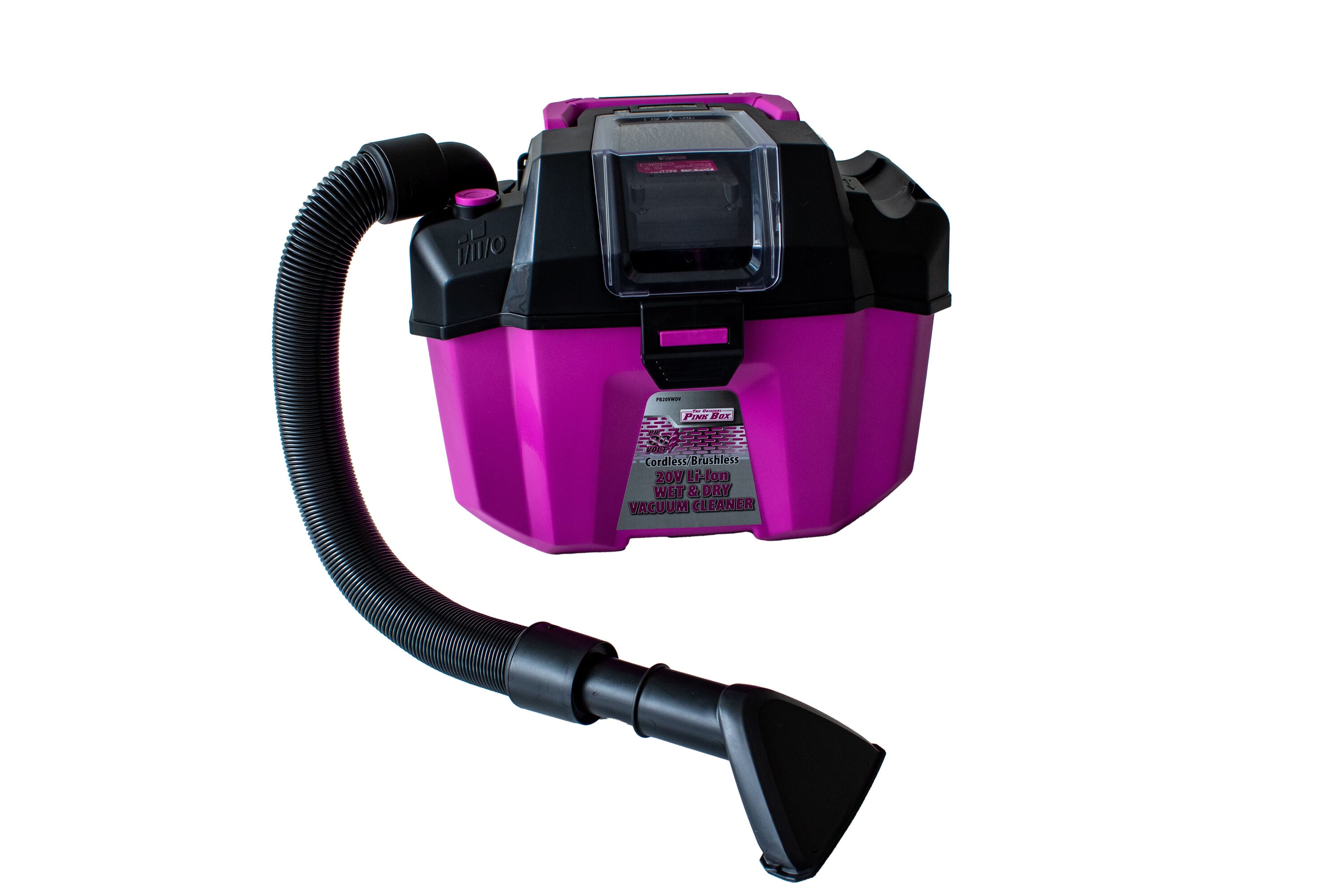 This 20-Volt Lithium-Ion Brushless Cordless 2.6 Gallon Wet/Dry Vacuum by The Original Pink Box® is the perfect tool for quickly cleaning up messes and making sure the job is done right. This two-speed vacuum will suck up dirt, dust, liquids and more quickly and efficiently. The reusable filter can be easily washed and the 2.6 gallon container size gives you enough capacity to handle a variety of projects. It can also be used as a blower so you don’t have to worry about getting out extra equipment. With this cordless wet/dry vacuum, your projects will go smoothly from start to finish! Includes one 2Ah battery and charger. Get the job done in style with The Original Pink Box®!