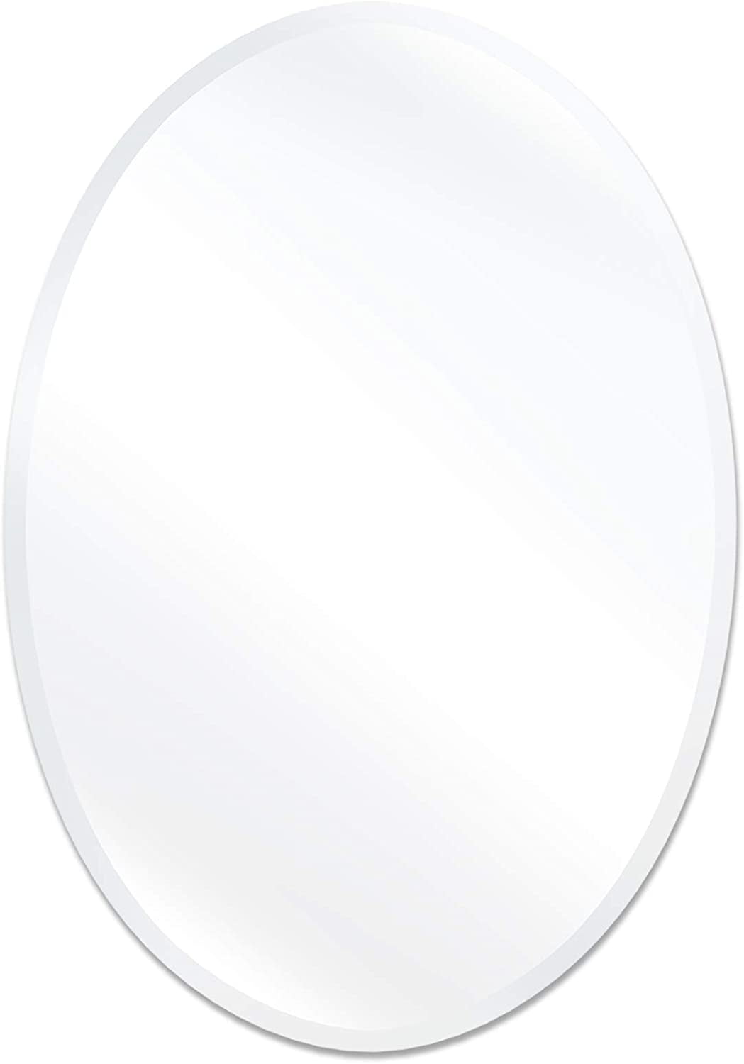 【Superior Durability】 Made with top-grade glass that is 1/4-inch thick and a pure silver backing, this mirror offers exceptional durability and a remarkably clear reflection. 【Generous Size】 Measuring 20 x 28 inches, this large beveled oval mirror is perfect for enhancing small spaces, making them appear larger and brighter. Great for bathrooms, entryways, living rooms, and more. 【Refined and Safe】 The smooth and shiny polished edges, along with 1-inch beveled corners, provide a refined premium look while ensuring safety by preventing sharp edges. 【Sleek Modern Design】 Create a polished finishing touch to any room with a contemporary and frameless design. The unique 1″ beveled edge adds a touch of elegance. 【Hassle-Free Installation】 With all mounting hardware and hangers included, this mirror can be easily and securely installed within minutes for your convenience.