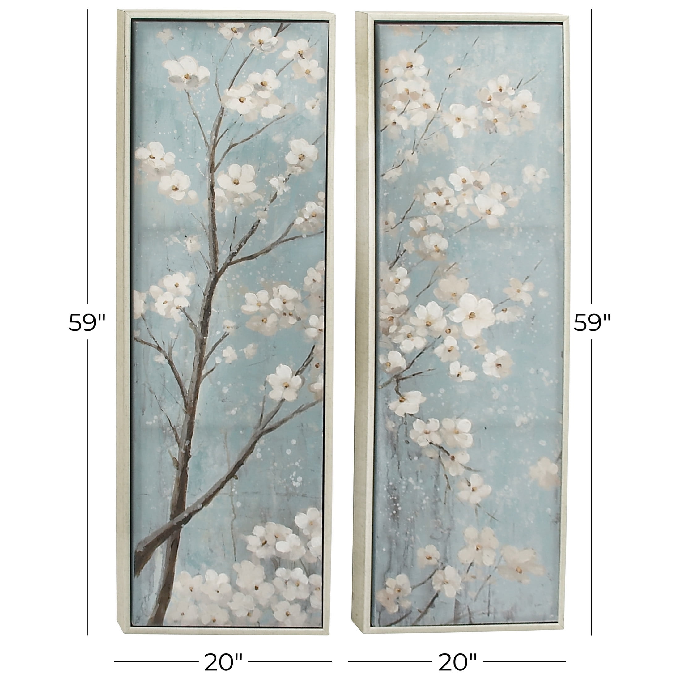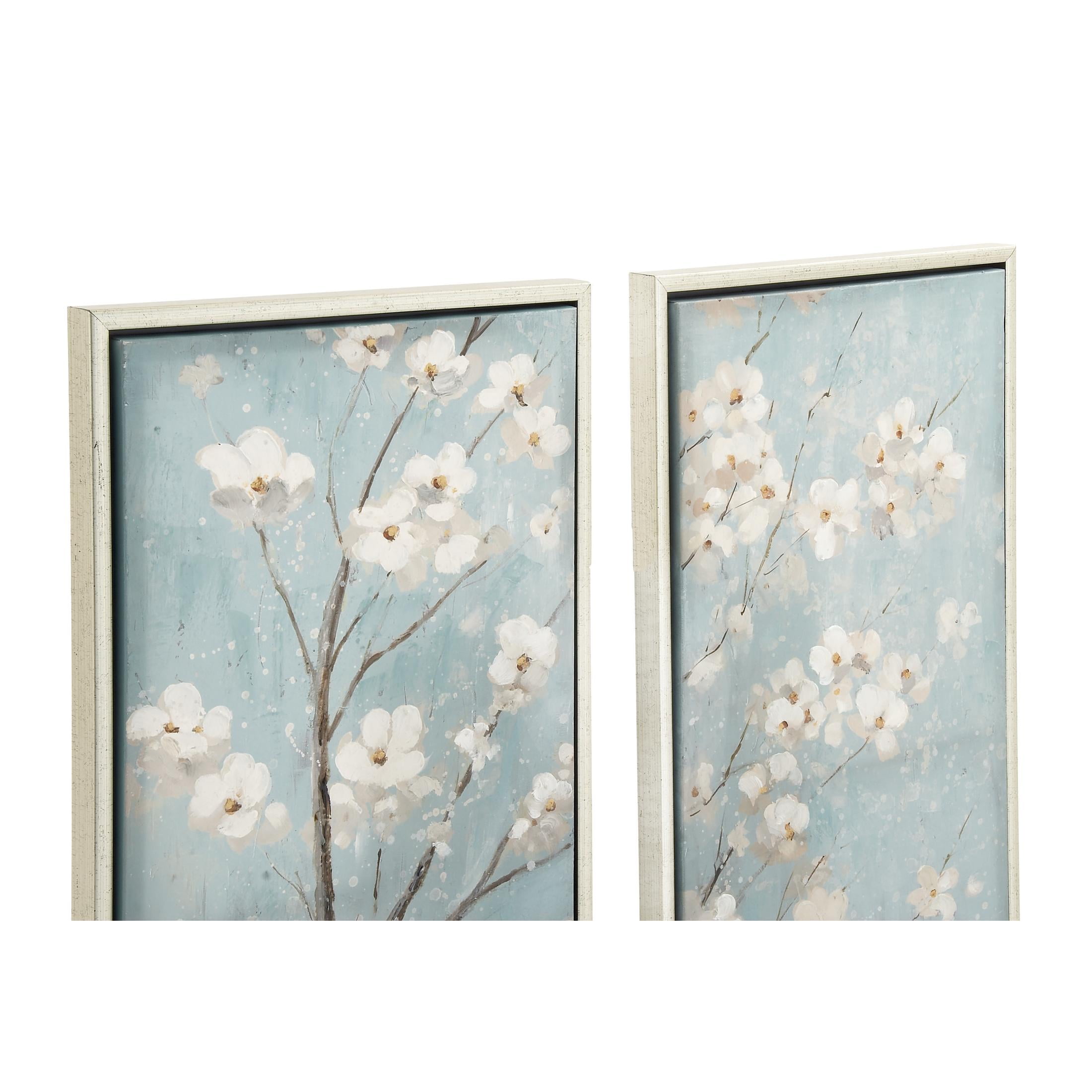 20″ x 59″ Cherry Blossom Floral Framed Wall Art with Silver Frame, by DecMode (2 Count)