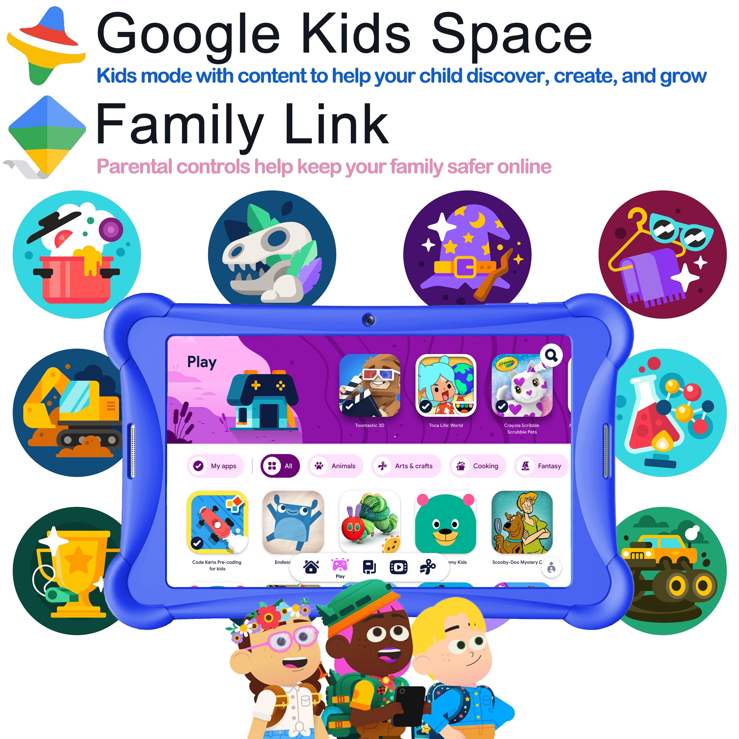 2024 ME K10 Google Kids Space 10″ 128GB Kids Tablet + Silicone Bumper, Everyday Low Price, Blue