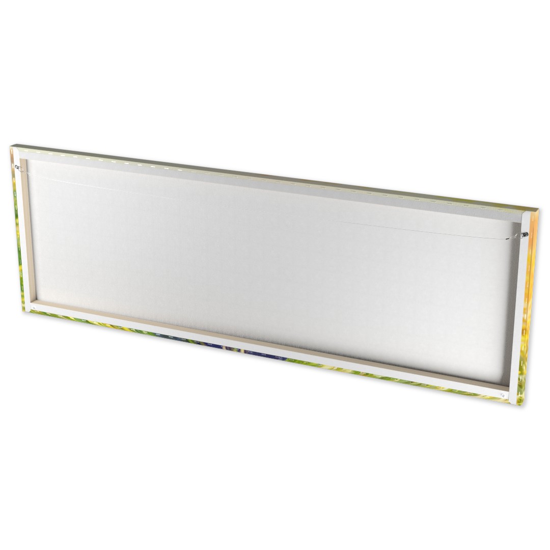 20×60 Gallery Wrapped Photo Canvas 1.5″ gallery-style wrapped edge Printed on semi-gloss canvas material Optical Brightener Additive (OBA) free Open back with wood frame Ready to hang with pre-installed wire hanger and rubber bumpers