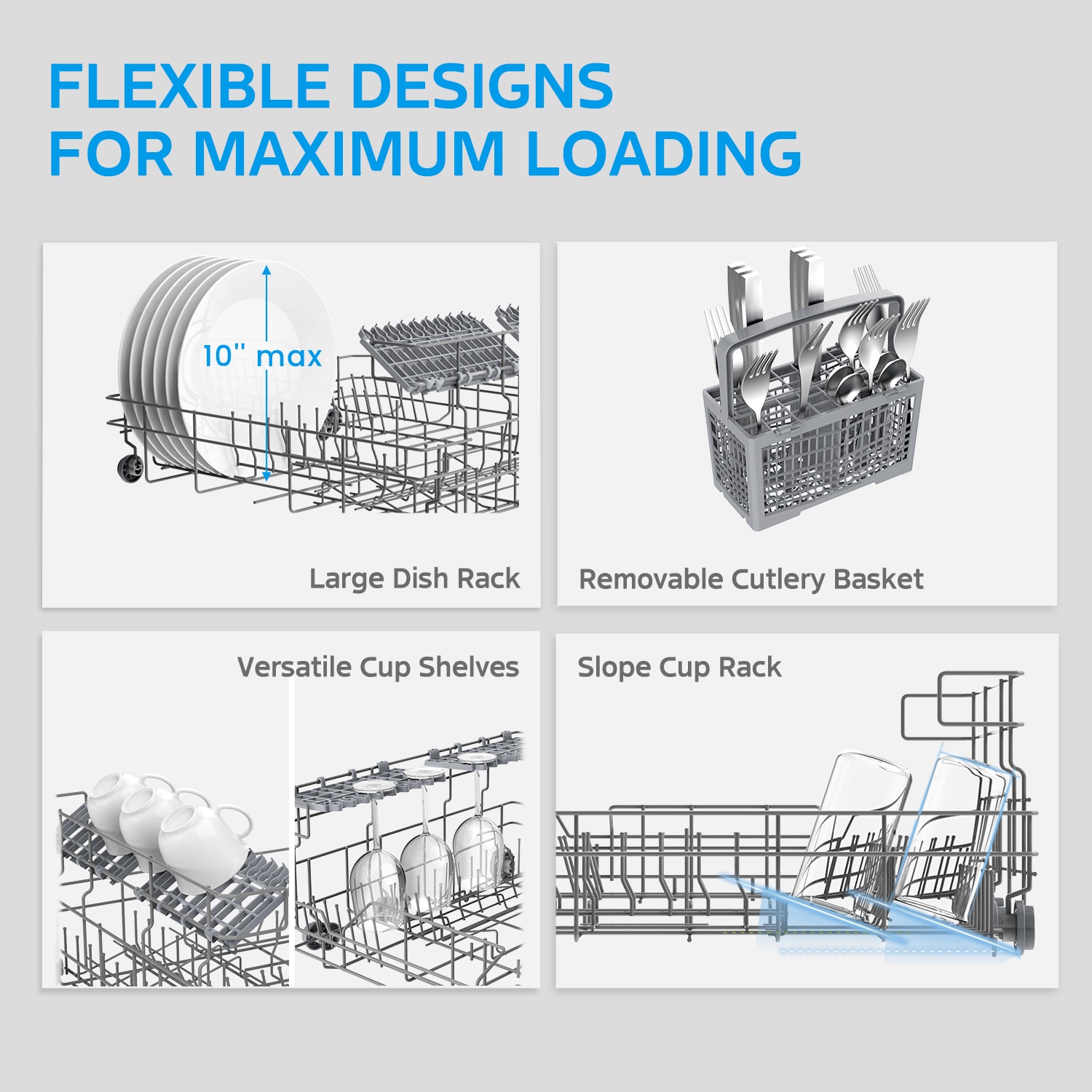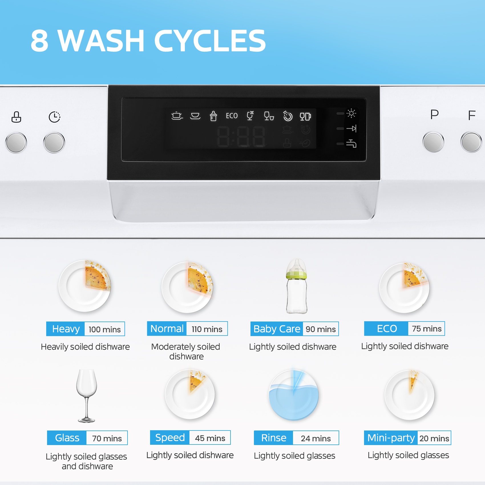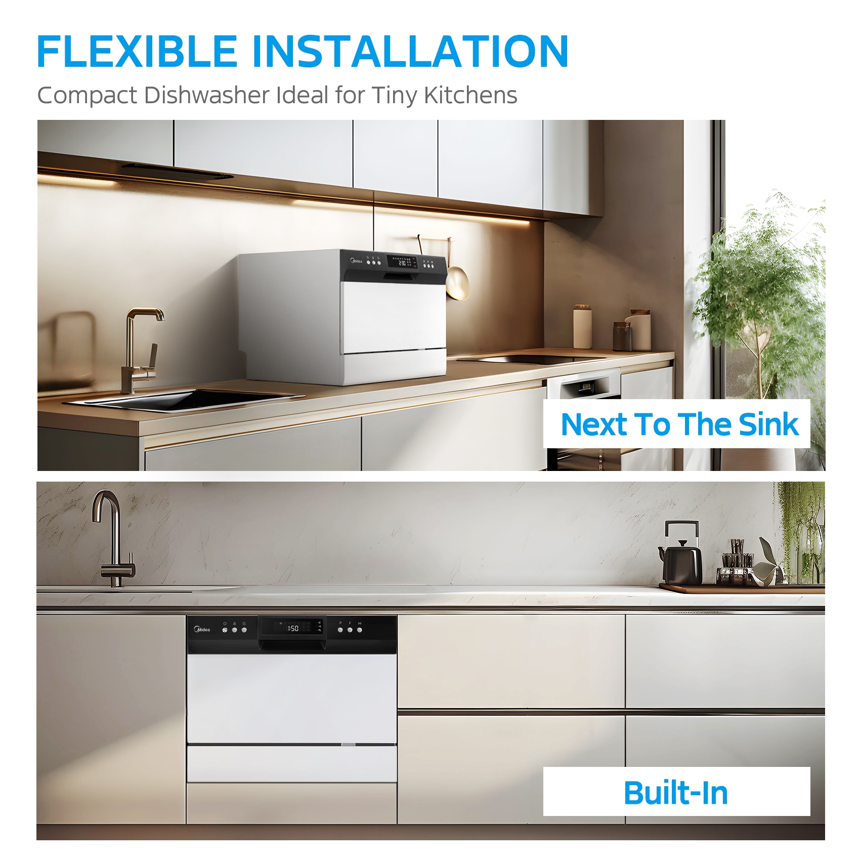 8 Washing Cycles- Most of the cleaning cycles, including Heavy, Normal, Baby-Care, ECO, Glass, and Speed, helped with extra-drying function, and deliver sparklingly cleaned and dried dishes Three more cleaning options, including Speed, Mini-party, and Rinse, are designed for Midea’ compact dishwasher, providing high flexibility for you to choose in different situations.
