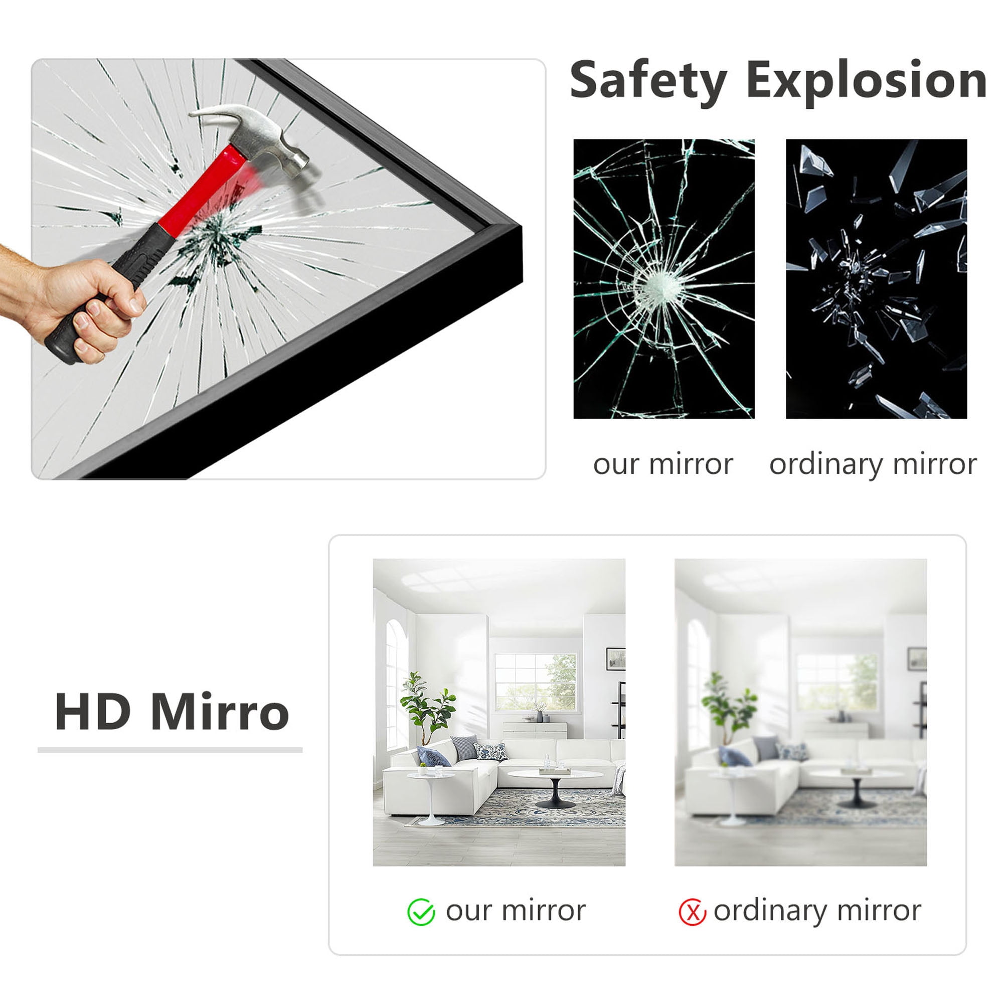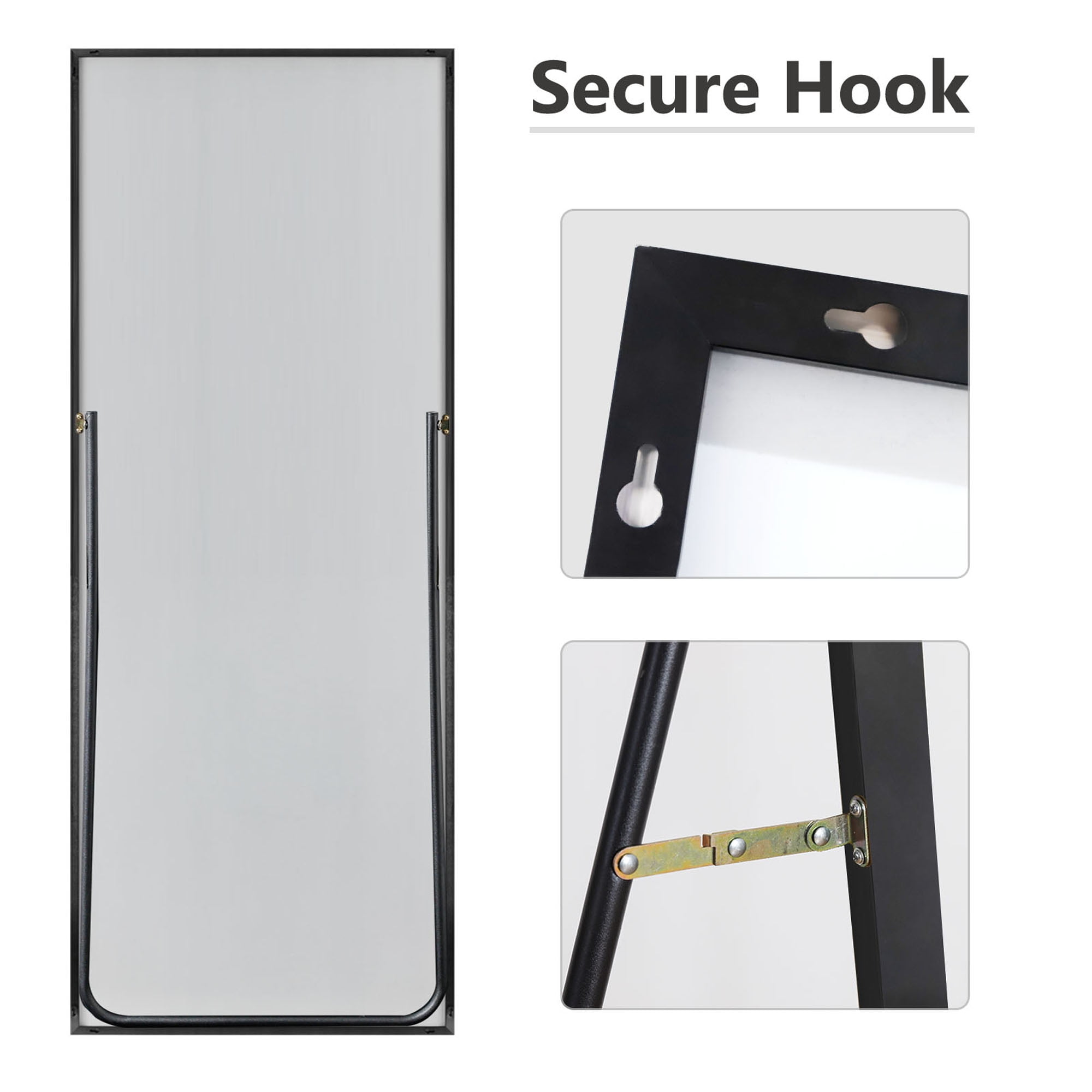 Neutype full length mirror is made of durable aluminum alloy. The frame of floor mirror is very thin, only 0.35″ wide on front. The full length mirror uses high definition imaging to truly restore and reflect the real world. The large full size makes this full length mirror perfect for dressing, providing all viewing angles in one. Very easy to move, whether it’s standing on the floor, hanging on the wall or even leaning. The floor mirror is with a sturdy U-shaped bracket, the mirror can free stand anywhere. The back of floor mirror is equipped with hooks and it can be hung on the wall vertically or horizontally as a wall mounted mirror.