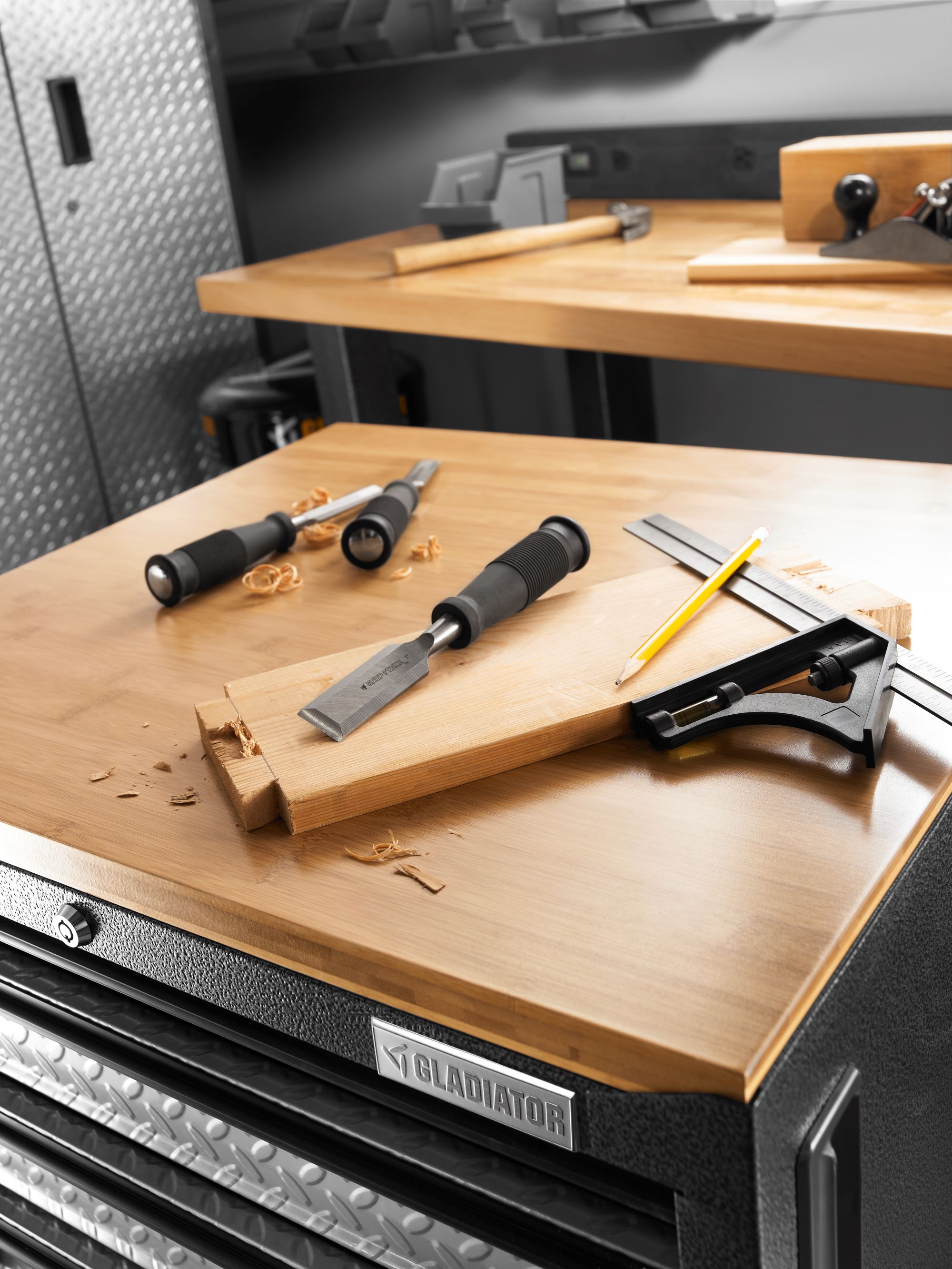 Simply place the 27-in Hardwood Work Top on top of any Premier GearBox or GearDrawer to turn it into the perfect tabletop workstation for everything from household repairs to woodworking.
