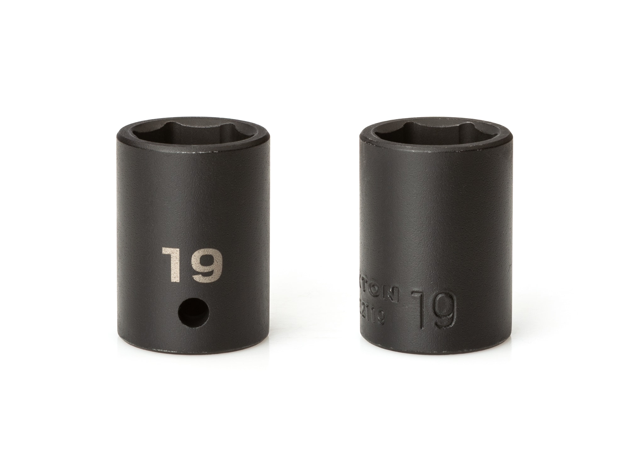 TEKTON impact sockets have both a high-visibility laser marking and a permanent stamped marking that won’t wear off. They’re designed for use with both friction ring anvils and detent pin anvils. Precise 6-point openings provide an exact fit for hex fasteners. Each socket size meets a minimum of 1.3 times the ANSI/ASME standard for proof torque.