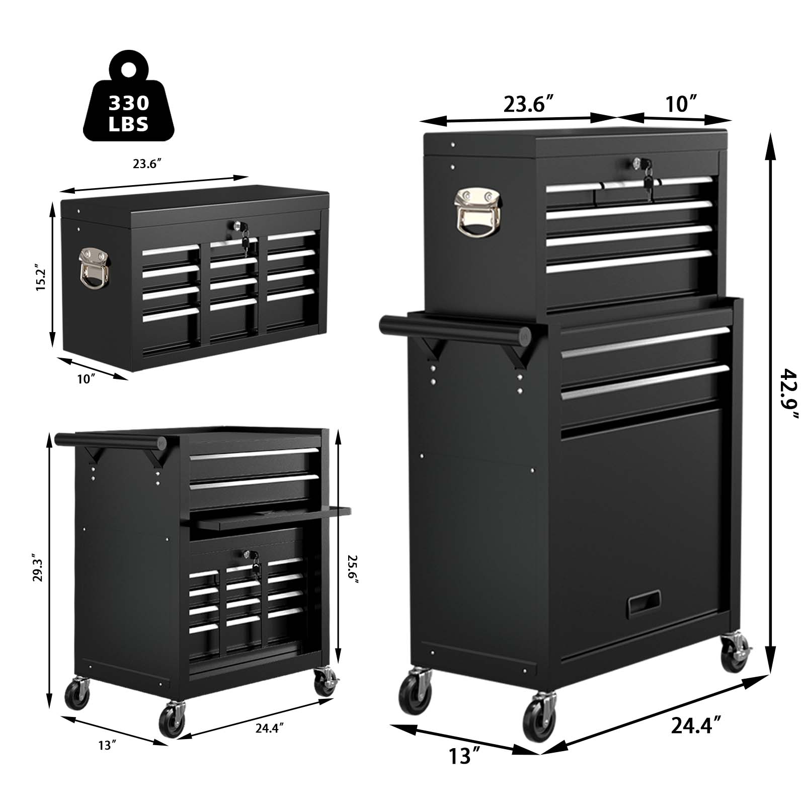 24.4-in W x 42.9-in H 8 -Drawer Steel Rolling Tool Cabinet ( Black )