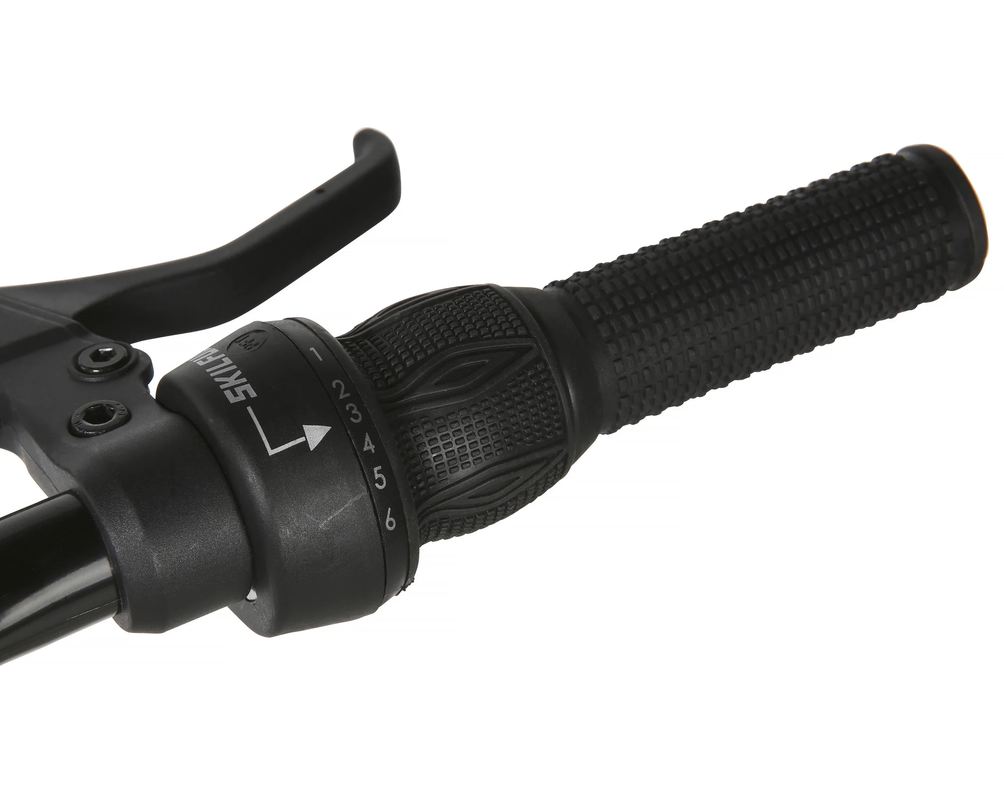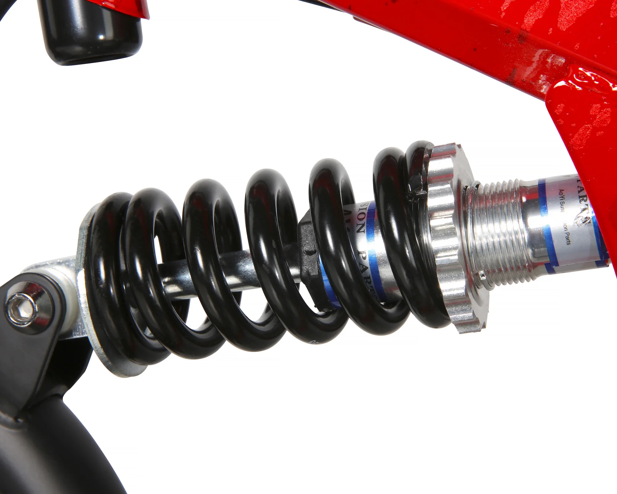 A rugged and durable mountain bike designed for boys, perfect for outdoor adventures. Boasts 18 speeds for versatile riding options, making it suitable for various terrains. Equipped with a reliable rear Shimano Derailleur and Shimano handlebar grip shifters for smooth gear changes for the male riders. Front and rear alloy pull brakes ensure safe and efficient stopping power. Deluxe grips provide added comfort and control during rides. The sturdy dual-suspension steel frame offers stability and a comfortable ride. Standout design with a bold red paint finish and eye-catching black and white graphics. A 24-inch size that’s suitable for older children, providing a comfortable and secure fit. Encourages outdoor exploration and adventure for young riders.