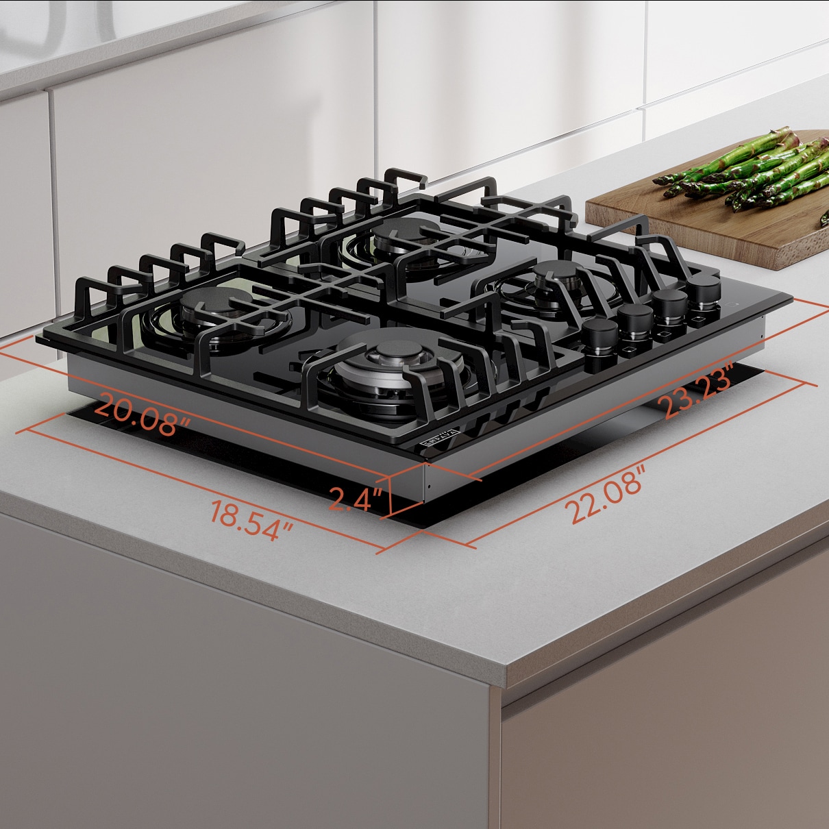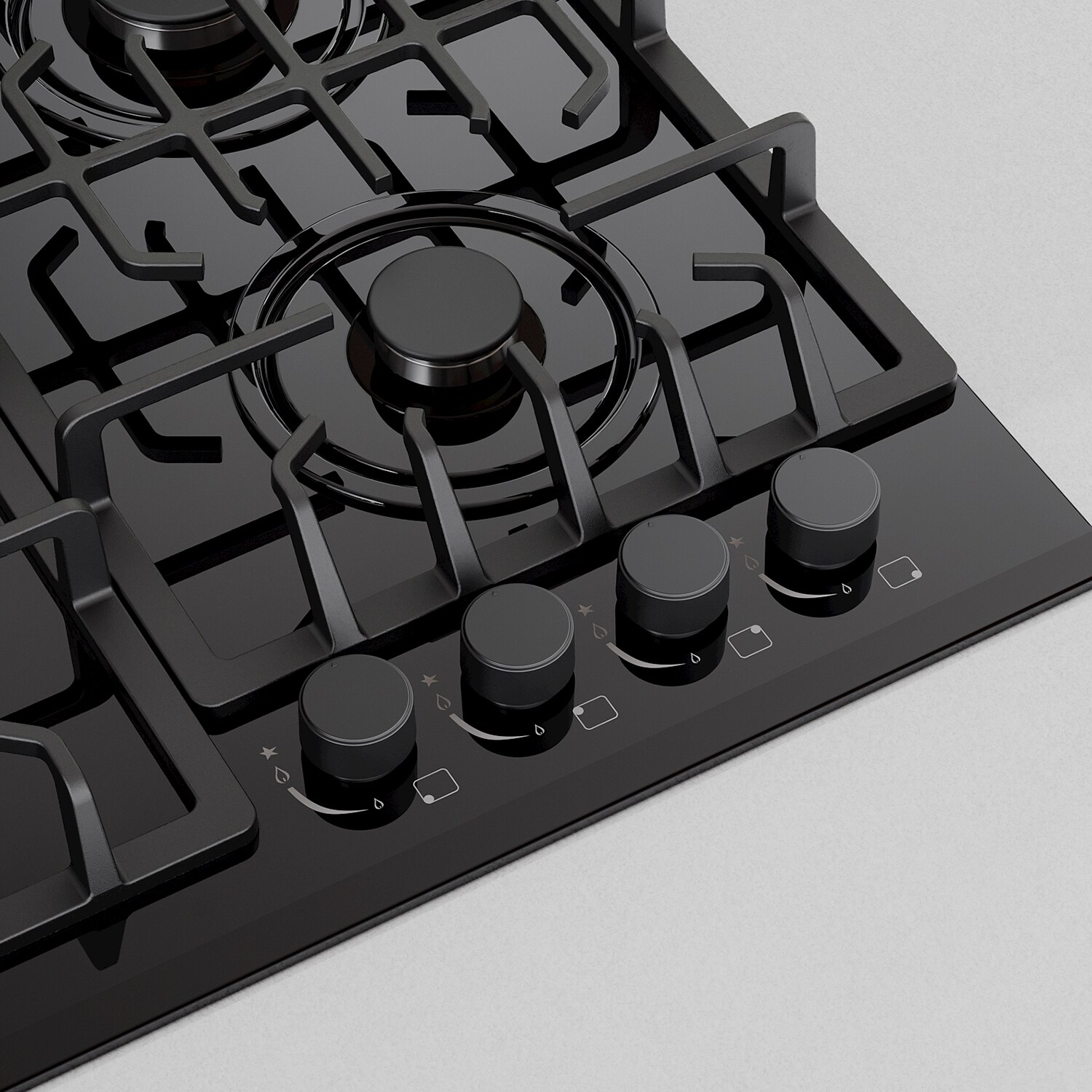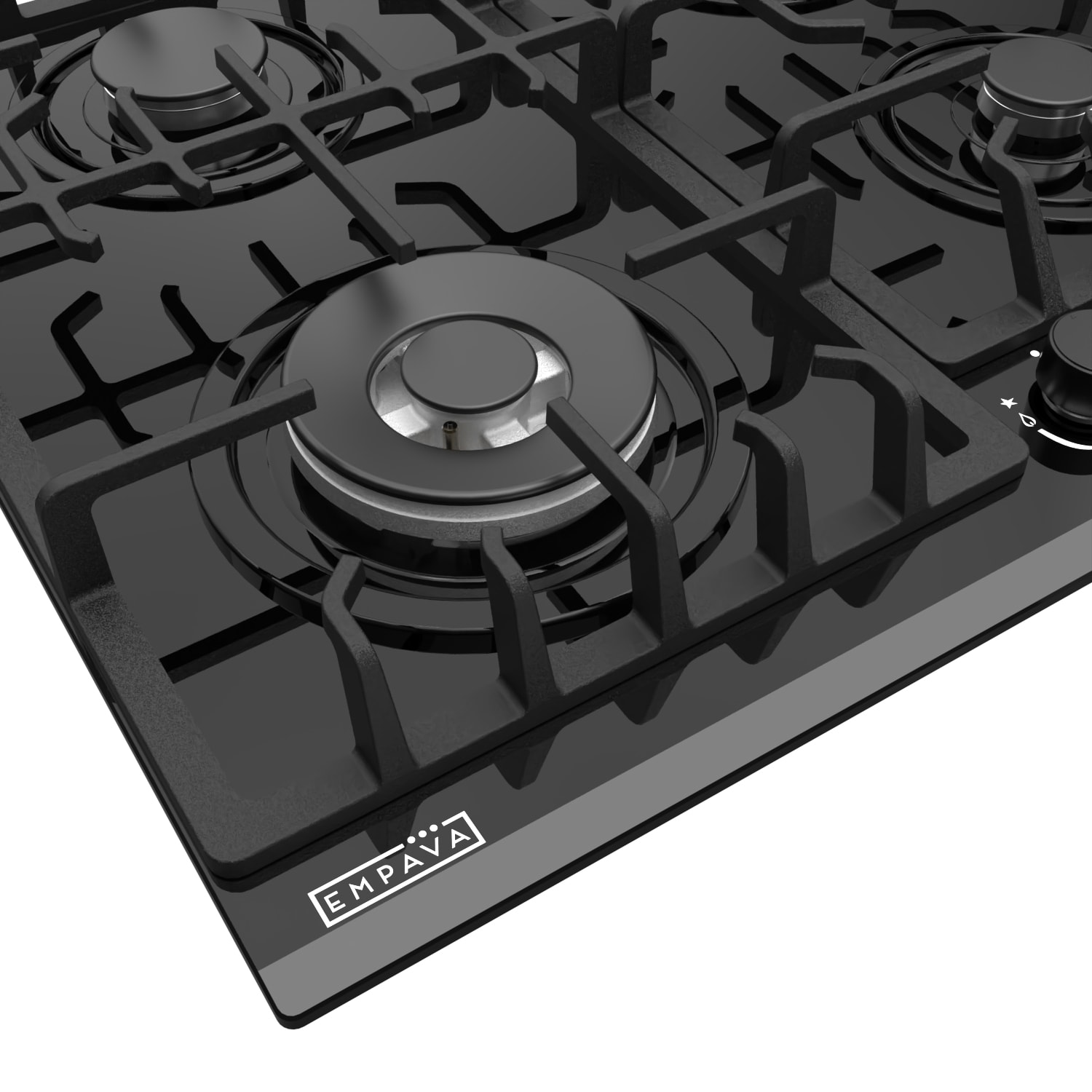 The Empava 24-inch gas cooktops with the CSA certified is a perfect combination of style and practicality. Constructed with tempered glass to prevent dents and scratches for long lasting use in your busy kitchen. The gas cooktops feature commercial-grade components (1x 13,000-BTU burner, 2x 6,000-BTU burners and 1x 3,800-BTU burner), the power burner designed to reach maximum temperatures quickly as well as a simmer burner for more delicate, controlled heat. The knobs and the heavy-duty cast iron grates can be cleaned in the dishwasher. During the past years, gas cooktops by Empava appliances have been a very popular choice for kitchen upgrades and new builds, allowing you to cook restaurant quality meals from the comfort of your own home.
