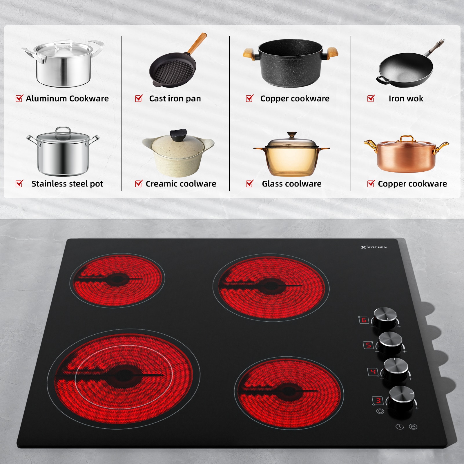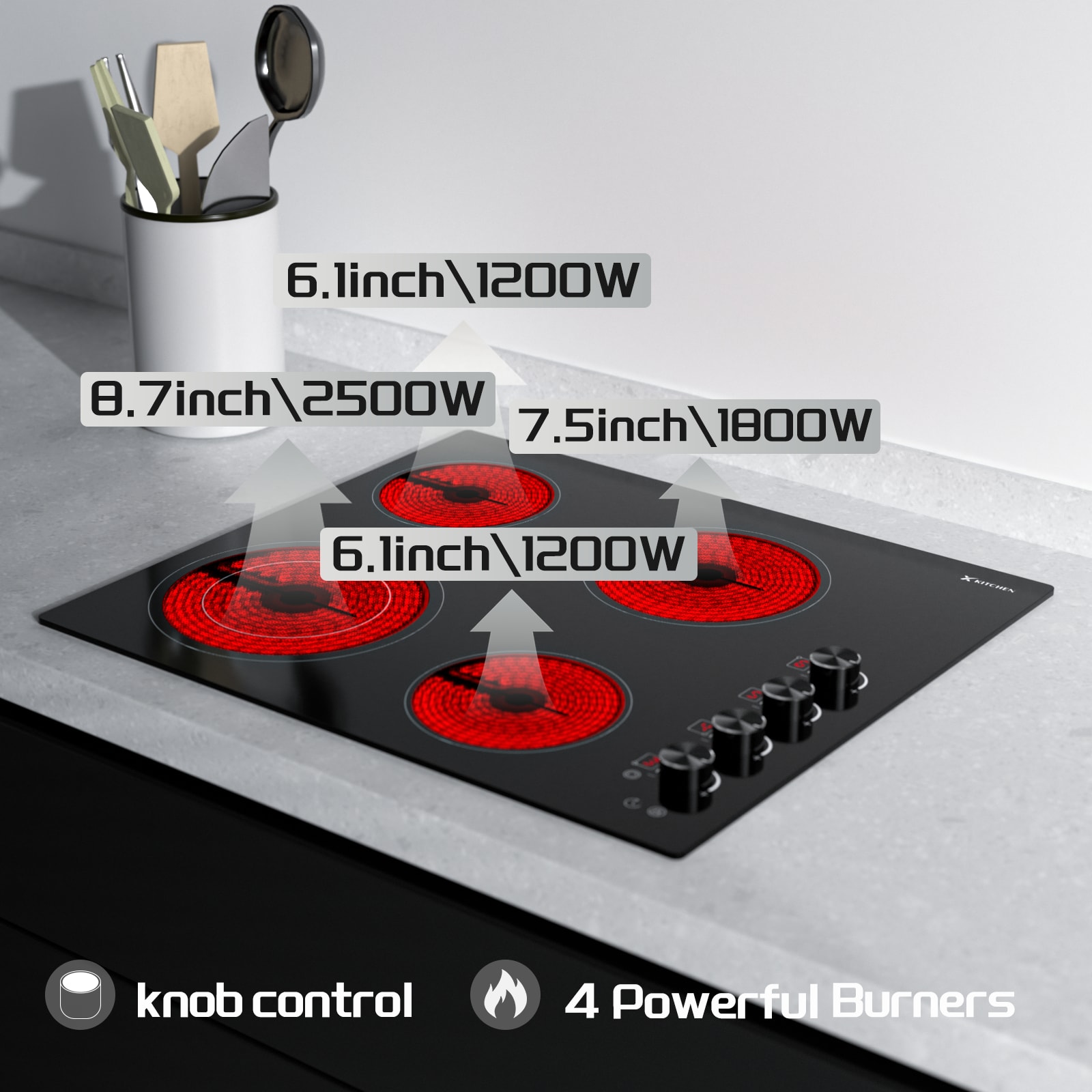 This XKITCHEN 24 in electric cooktop/stove top is powerful and easy to use. Its high power ensures you a wonderful and efficient cooking experience. Reliable knob control and multiple safety protection function make cooking safer. PLEASE NOTE: Please feel free to reach out whenever there’s a problem. We’re here for you offering help and solutions.
