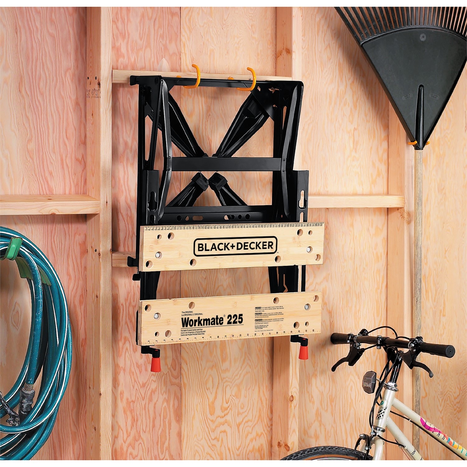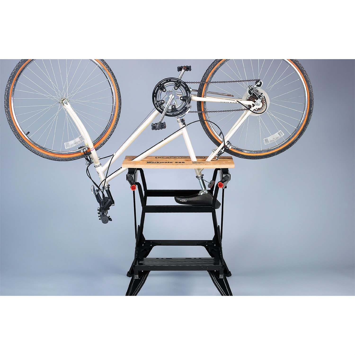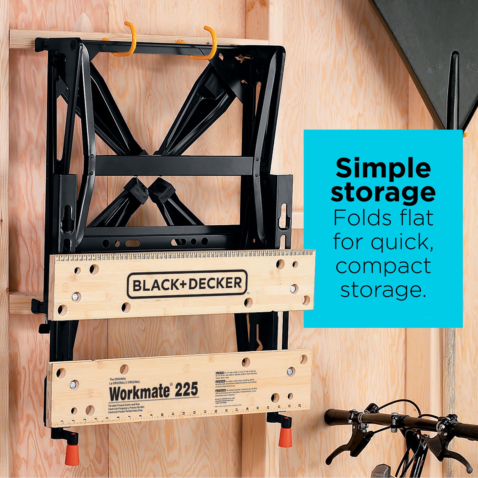 Lightweight and portable. Holds virtually anything. Folds for easy storage. Steel construction. Dual height for use as a workbench, bench tool stand, vise or sawhorse.