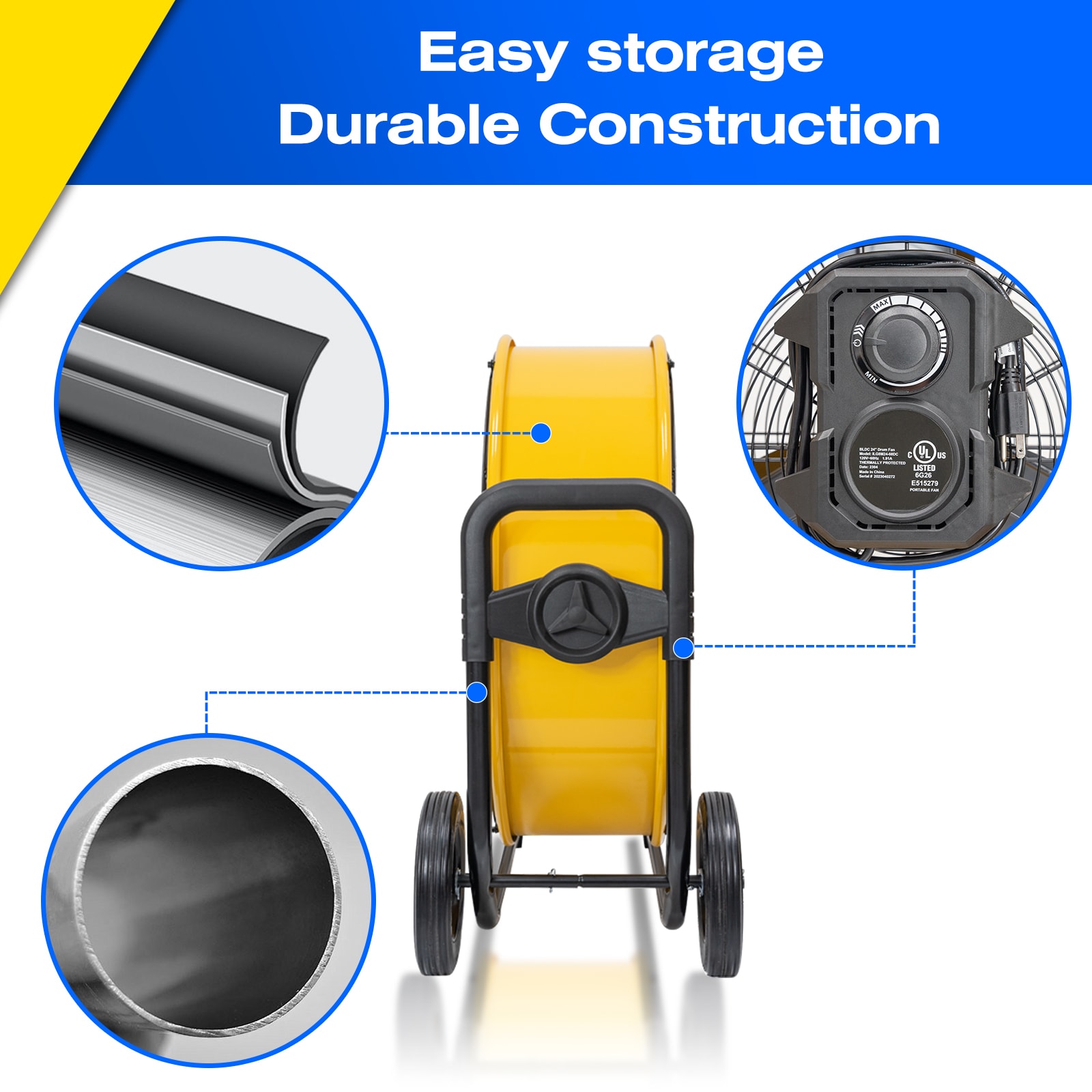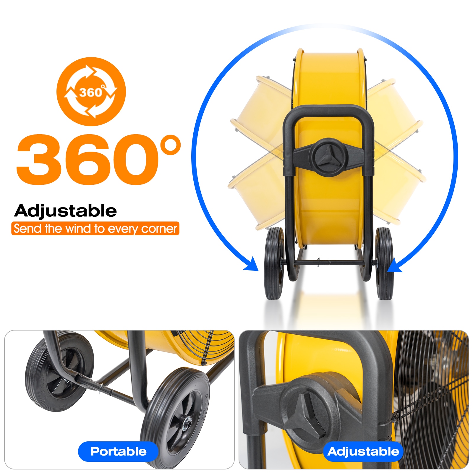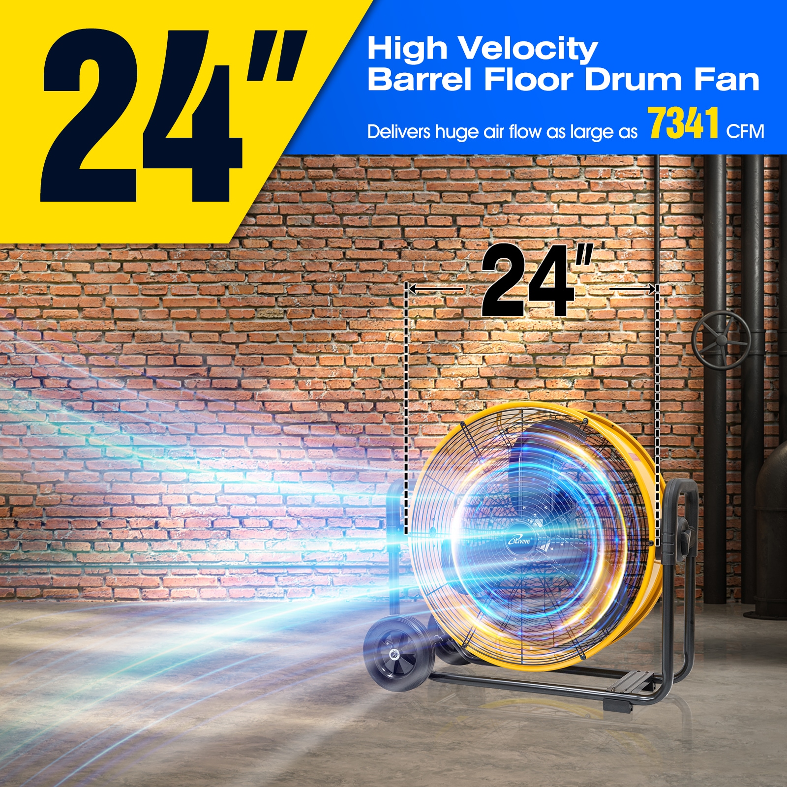 Our iLiving 24″ 7341 CFM Heavy Duty High Velocity Barrel Floor Drum Fan is perfect for your workshop, garage, commercial, and industrial environments. This fan features a powerful DC Brushless motor which not only prevents you from having to buy replacement parts every few months, but also decreases energy bills. The stepless speed adjustment allows you to customize the fans power and direction to best suit the task at hand. An additional feature of this elite fan is its UL Safety Listed certification – it meets industry regulatory safety standards in order to promote safe operation in your workplace or home. With a large drum head that can move air up to 7341 cubic feet per minute and two manual angle adjustments, you are guaranteed an intense cooling breeze. The balanced metal blades coupled with the enclosed round steel guard provides maximum protection against debris and fingers caught in the blades. Additionally, our floor drum fan is made with a sturdy stand so that it won’t tip over even under strong conditions like high temperatures or gusts of wind while running long hours without breaking down or needing repairs! The construction of our iLiving 24 Inches Heavy Duty High Velocity Barrel Floor Drum Fan is aesthetically pleasing and promises to be the perfect addition for any workplace or home setting. This fan has it all: practicality, power, affordability, and attractiveness. No wonder it’s so popular! Get yours today and beat the heat.