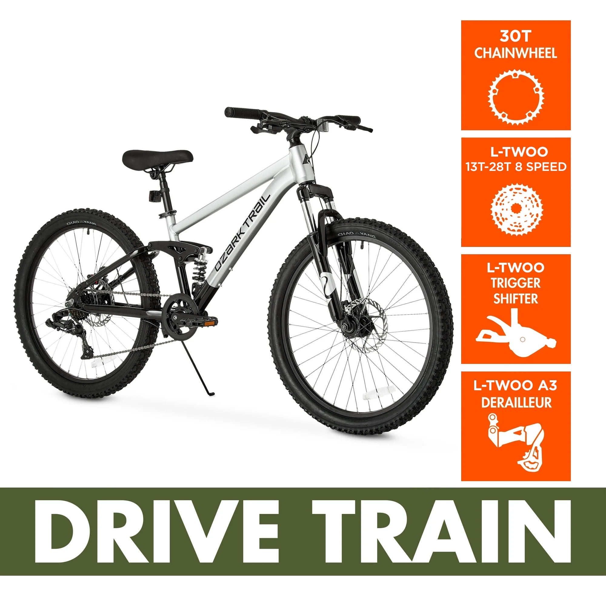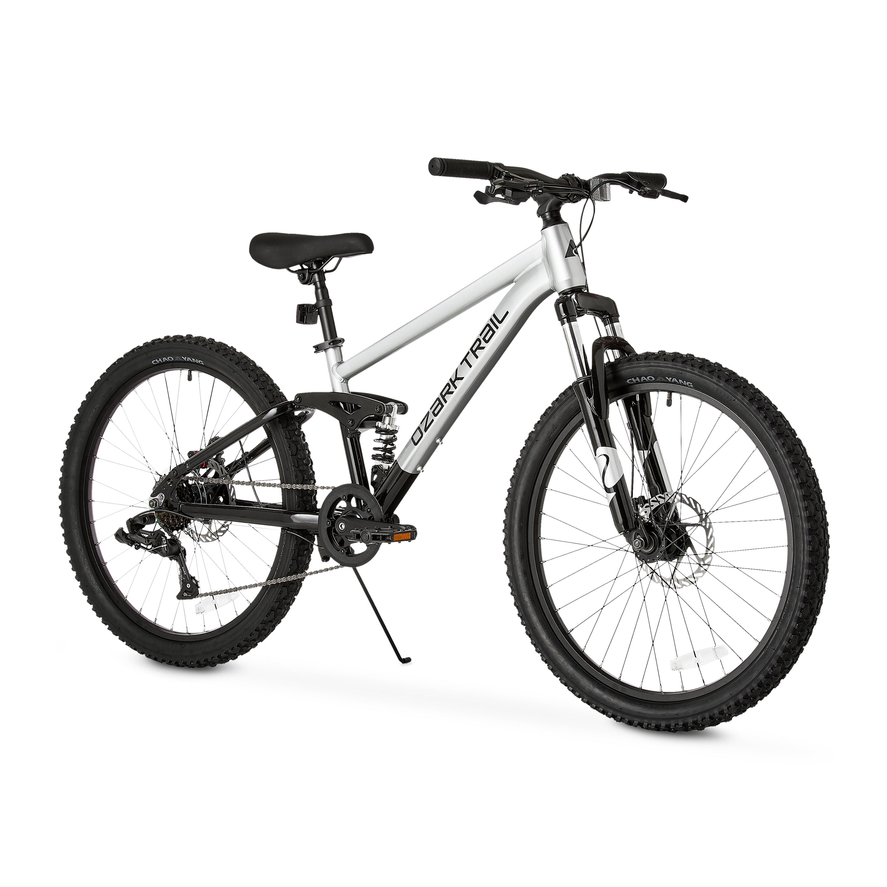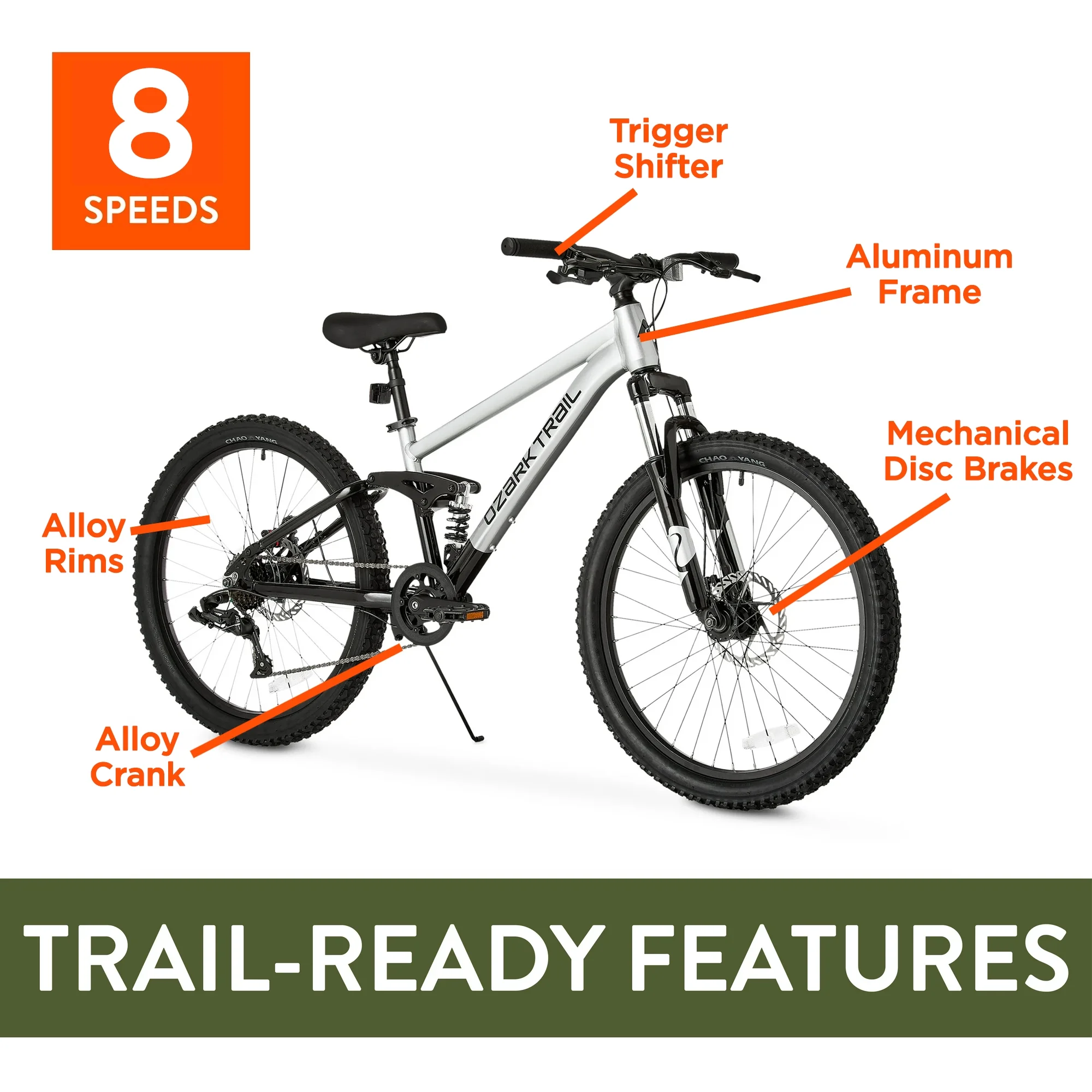 24″ Ozark Trail FS.1 Epictrail Full Suspension Mountain Bike, For Teens and Adults, Heights between 4’6″-5’6″, Silver