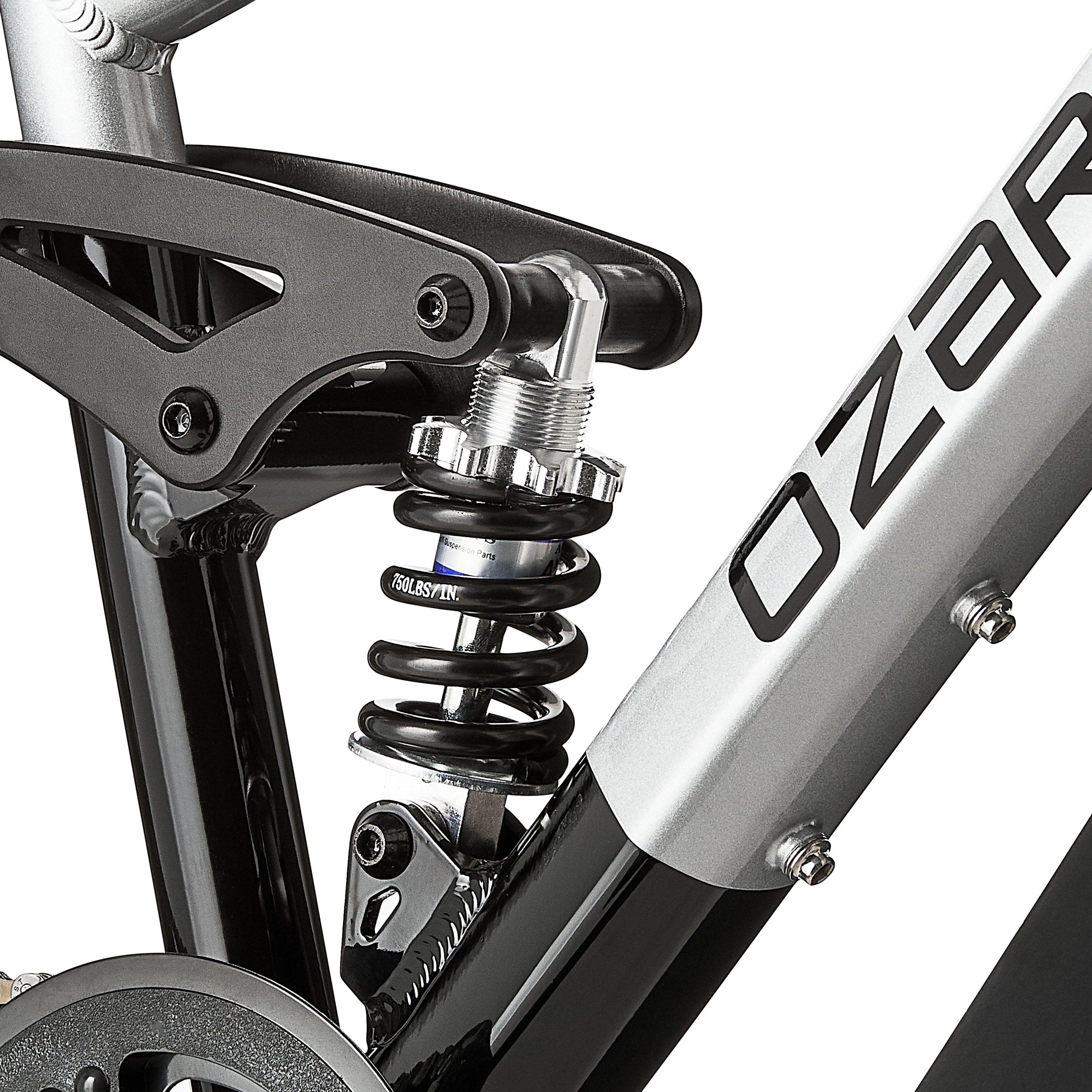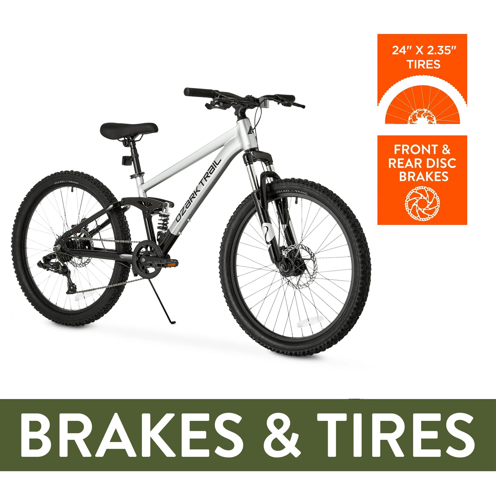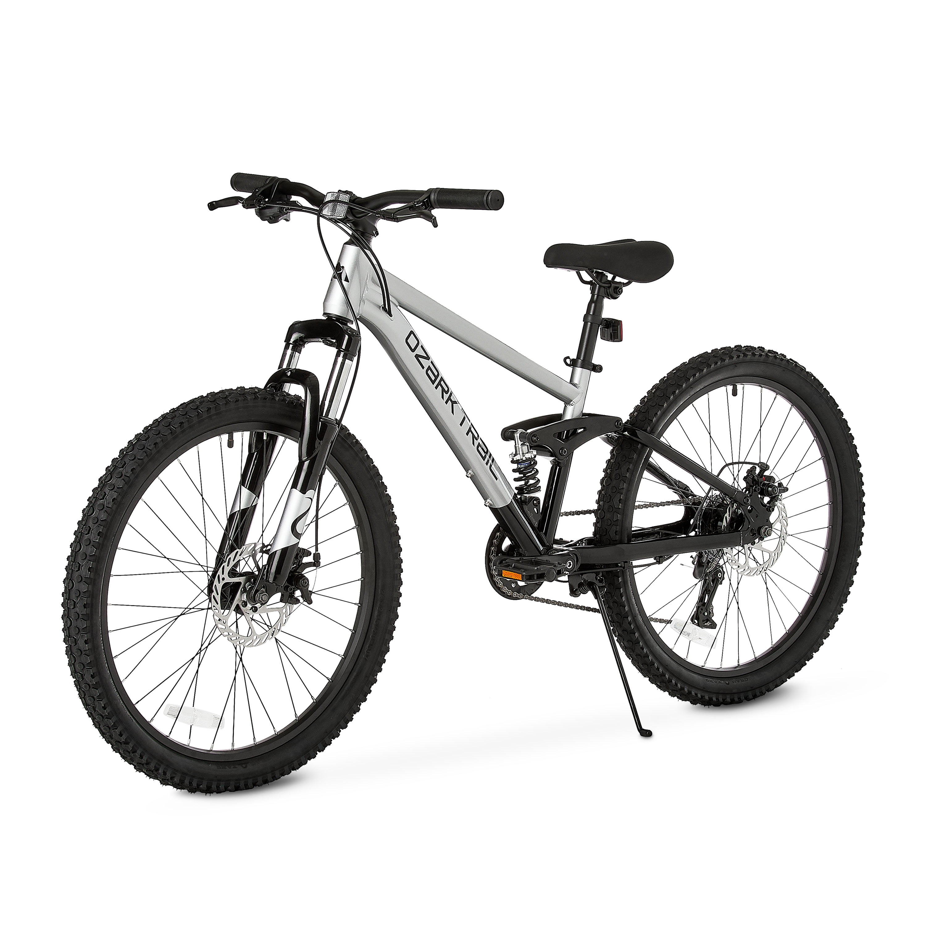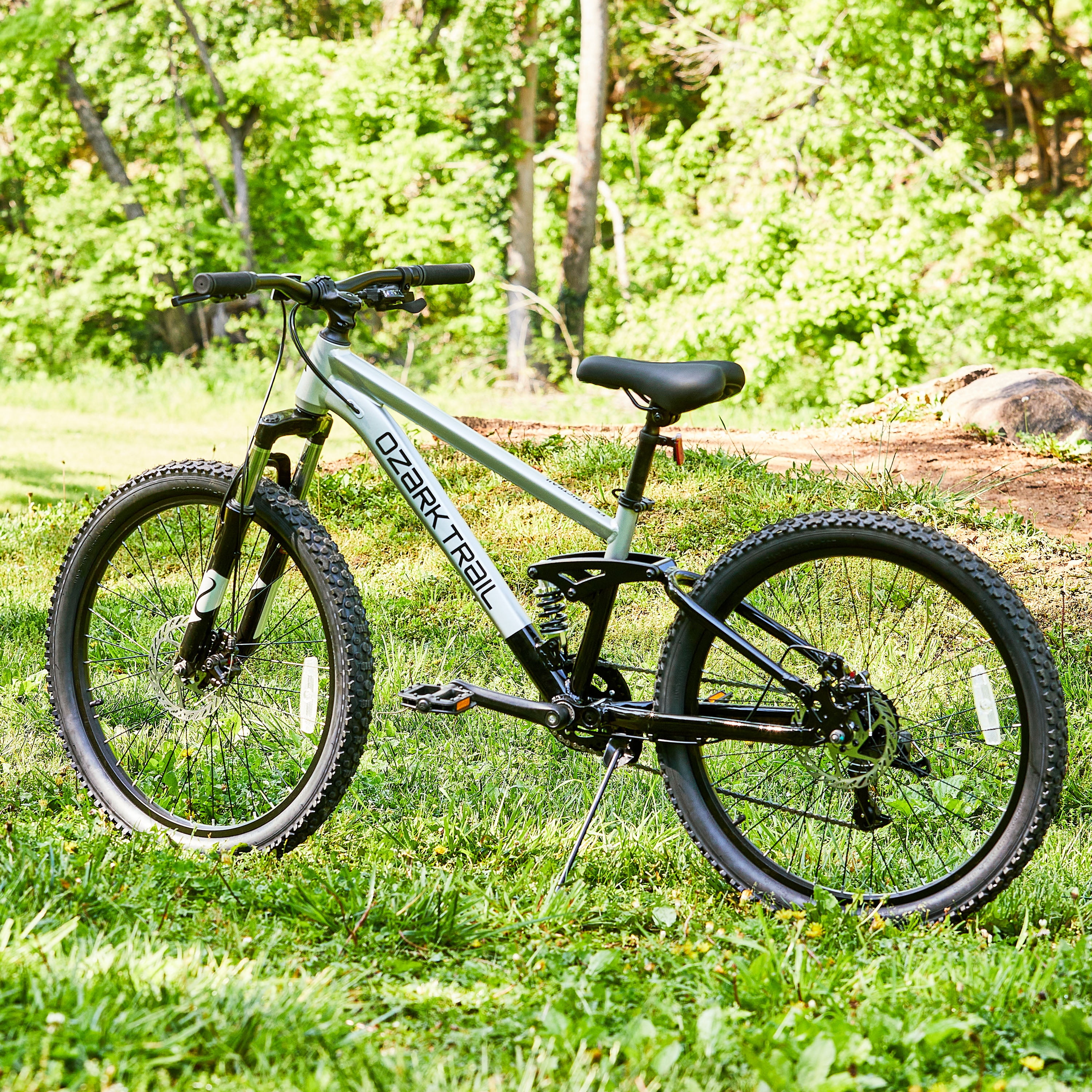 24″ Ozark Trail FS.1 Epictrail Full Suspension Mountain Bike, For Teens and Adults, Heights between 4’6″-5’6″, Silver