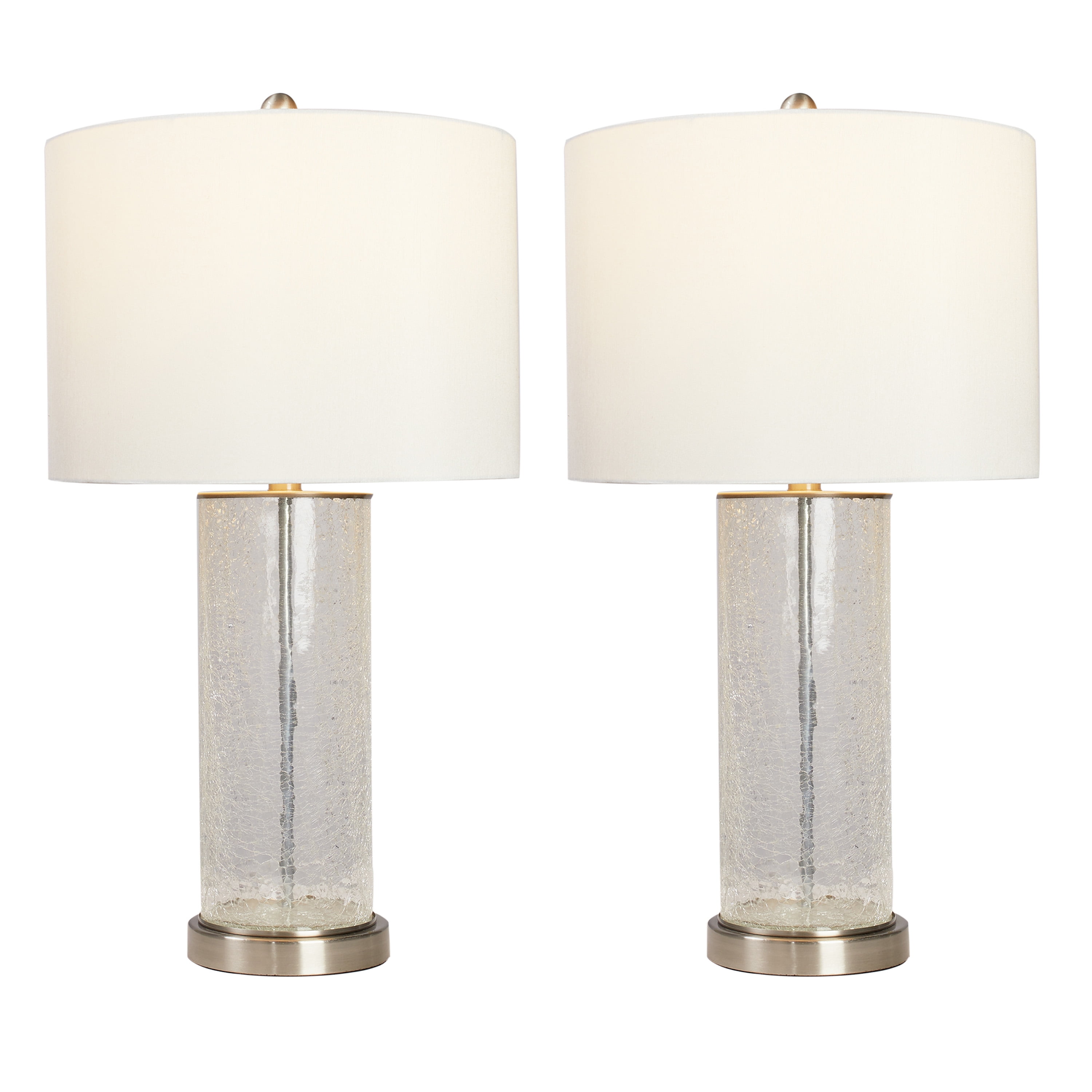 26″ CLEAR CRACKLE GLASS+BS METAL TABLE LAMP