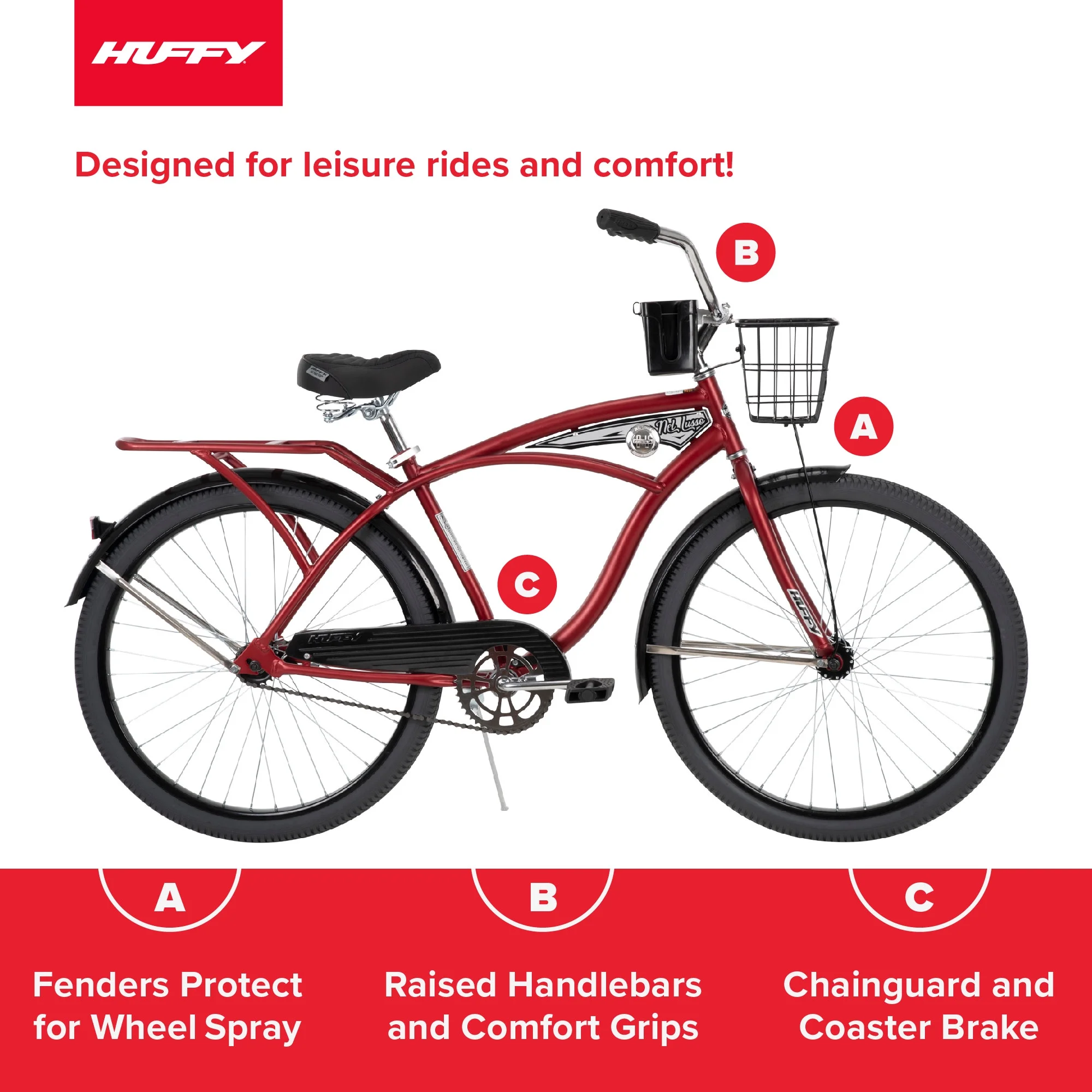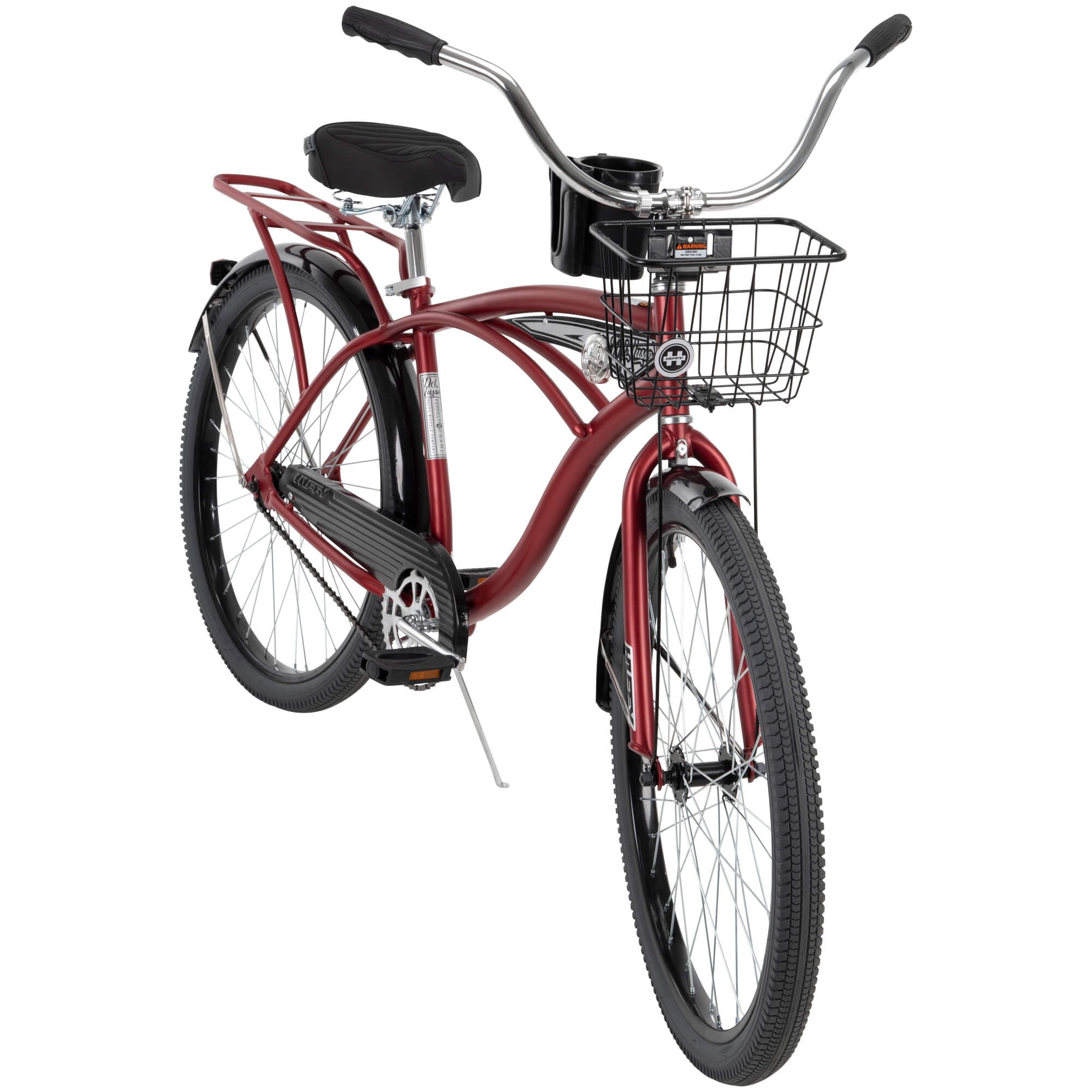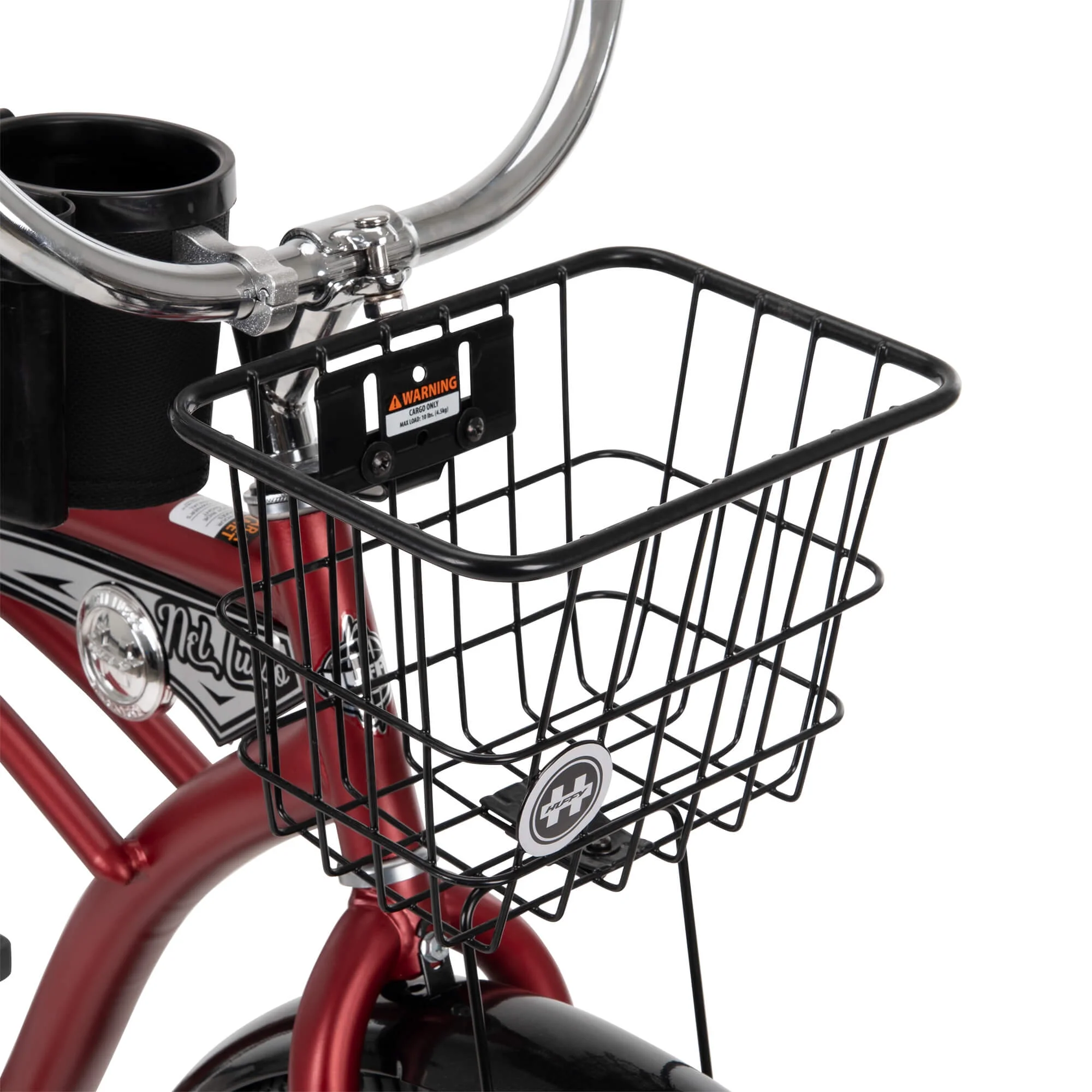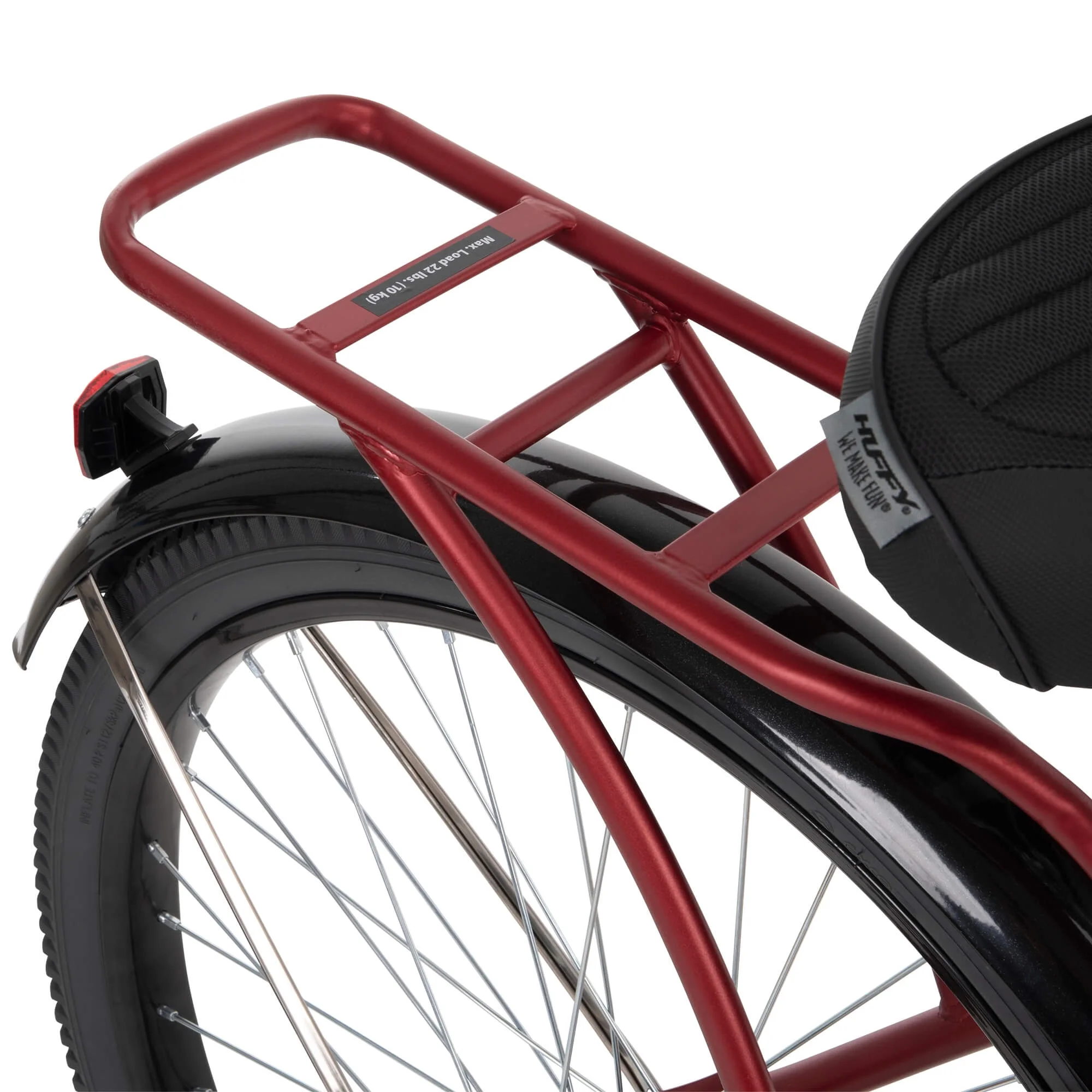 26″ Huffy Nel Lusso Beach Cruiser Bike, Basket, Cargo Rack, Red, Ages 12+