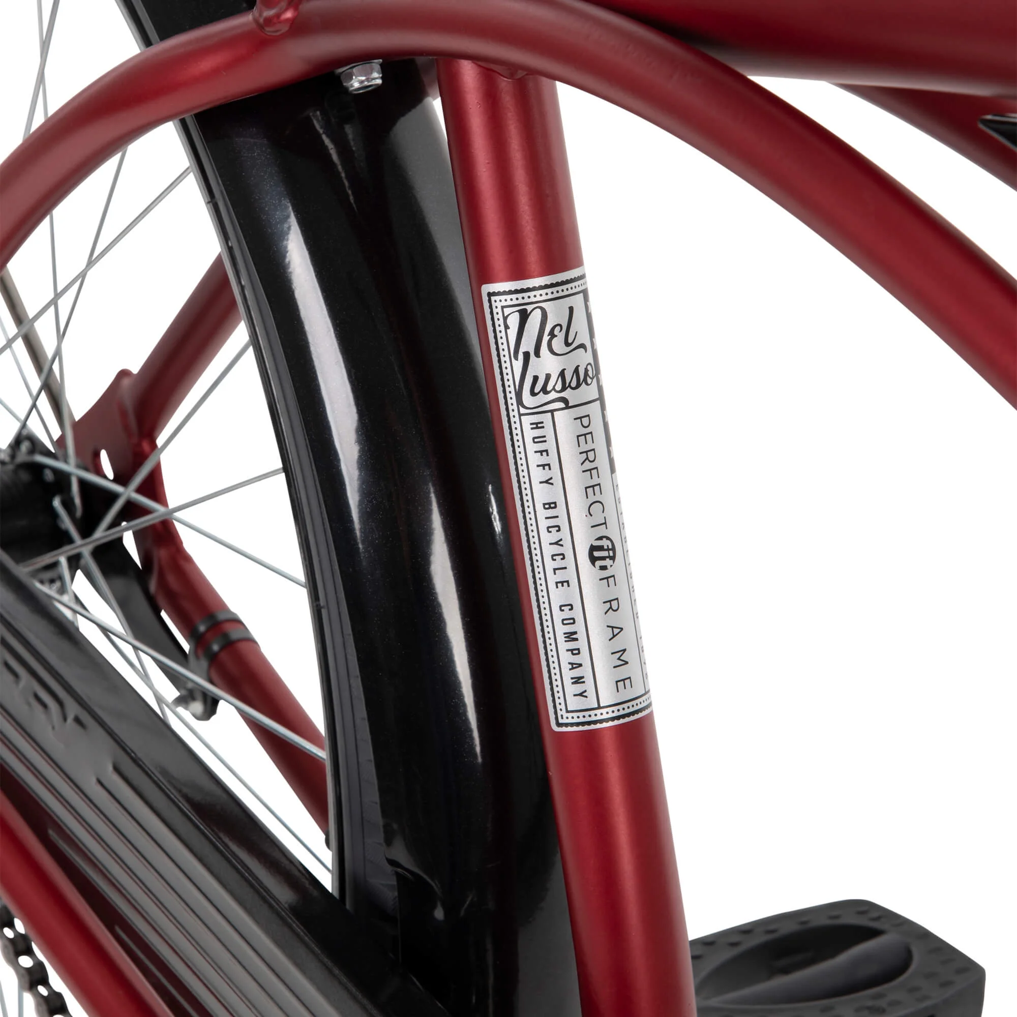 Huffy Nel Lusso Beach Cruiser Bike, 26″ Wheels, Basket, Cargo Rack, Red The Huffy Nel Lusso combines a classic bike style with comfort features. Italian for “in luxury,” Nel Lusso pampers with this bicycle’s style and features. Huffy understands a comfortable bike ride begins with a comfortably padded seat. As soon as you sit down, you’ll feel like this perfect-fit frame is designed specifically for you. The raised handlebar enables you to ride in an upright position. As you pedal, your legs can fully extend forward, which eliminates wrist, arm, neck, and leg fatigue. Utilize a convenient beverage holder on the bike’s handlebar. The bike also includes a rear rack for carrying essentials and a front basket for added convenience. With its stylish design and practical features, the Huffy Nel Lusso is perfect for leisurely rides around town. Suitable for riders aged 13 and up, this bike offers a luxurious, comfortable riding experience. From Huffy, We Make Fun!