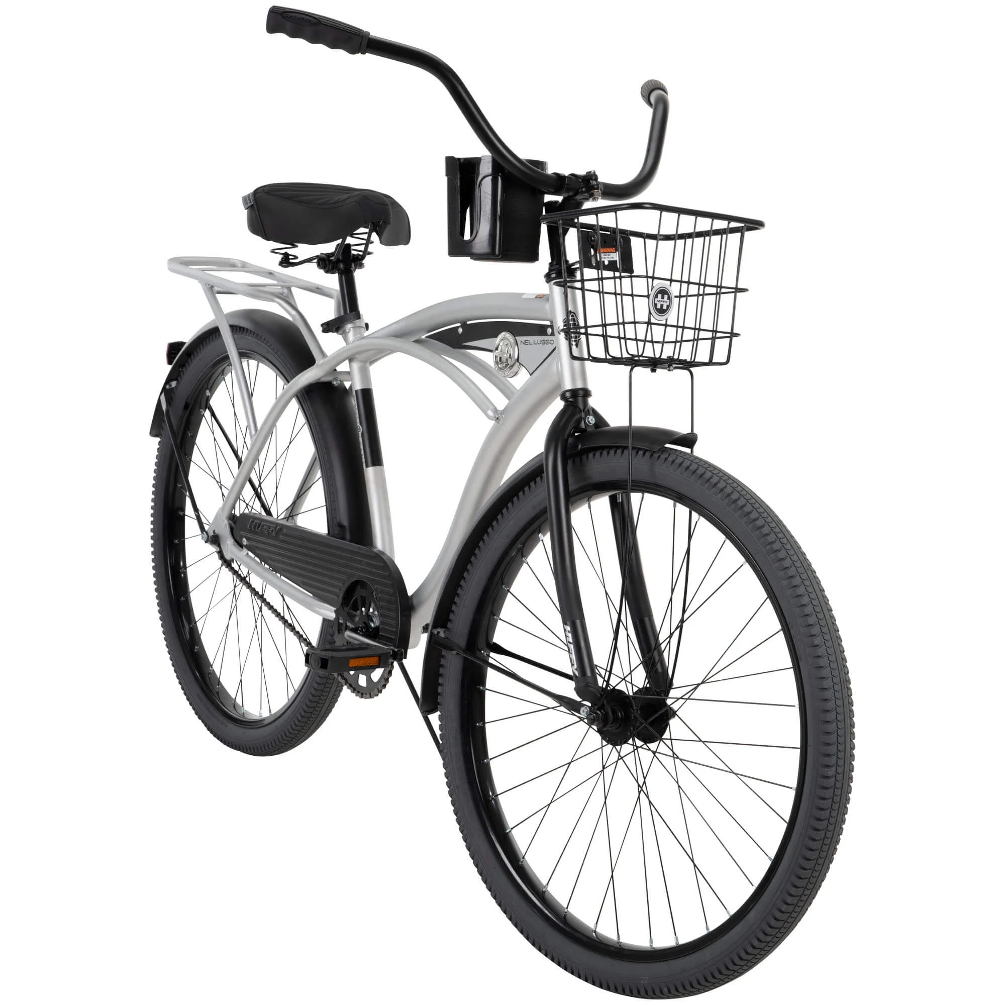 Huffy Nel Lusso Men’s Beach Cruiser Bike, 26″ Wheels, Basket, Cargo Rack The Huffy Nel Lusso combines a classic bike style with a variety of comfort features. Italian for “in luxury,” Nel Lusso pampers with this bicycle’s style and features. Huffy understands a comfortable bike ride begins with a comfortably padded seat. As soon as you sit down, you’ll feel like this perfect-fit frame is designed specifically for you. The raised handlebar enables you to ride in an upright position. As you pedal, your legs can fully extend forward, which eliminates wrist, arm, neck, and leg fatigue. Utilize a convenient beverage holder on the bike’s handlebar. The bike also includes a rear rack for carrying essentials and a front basket for added convenience. With its stylish design and practical features, the Huffy Nel Lusso is perfect for leisurely rides around town. Suitable for riders 13 and up, this bike offers a luxurious, comfortable riding experience. From Huffy, We Make Fun!