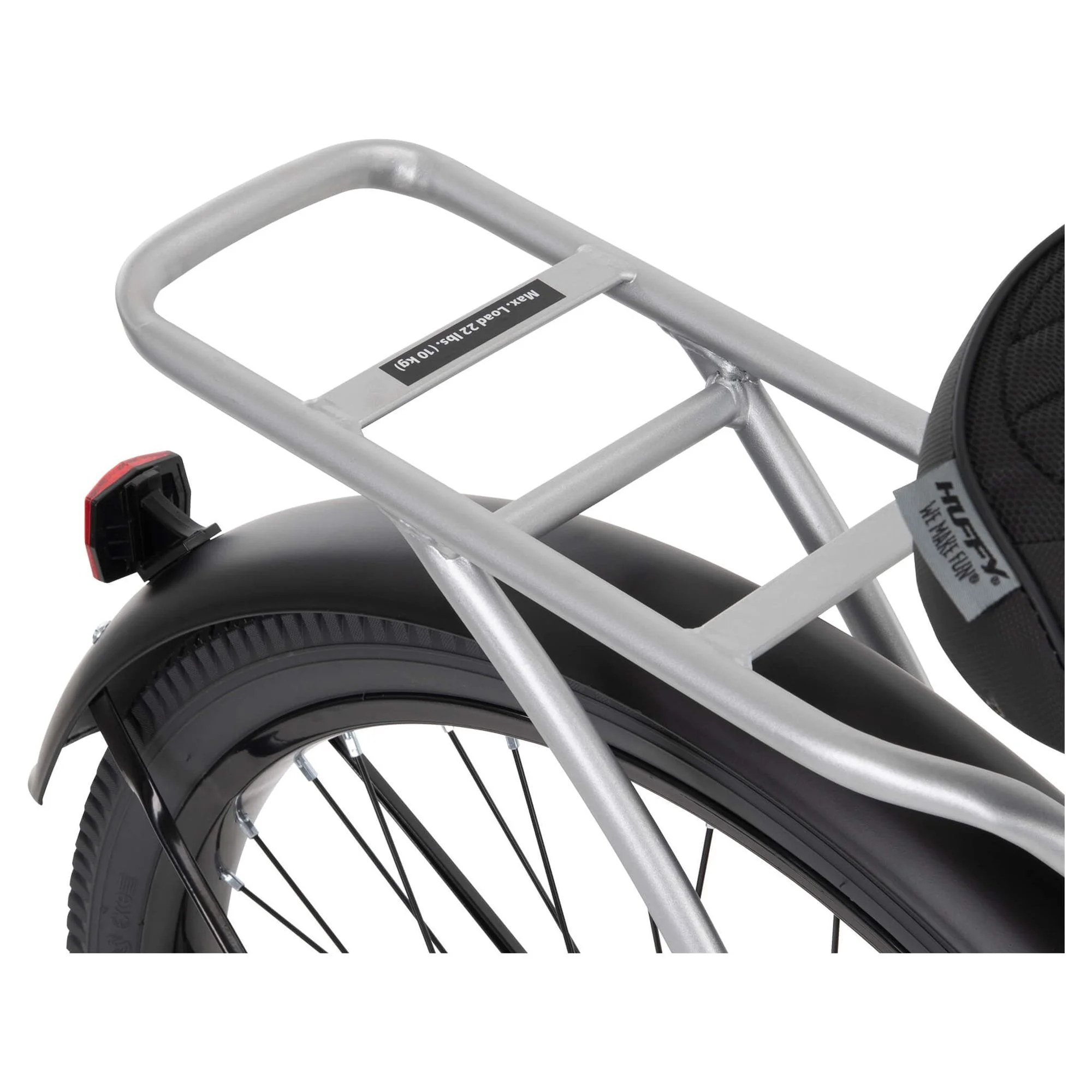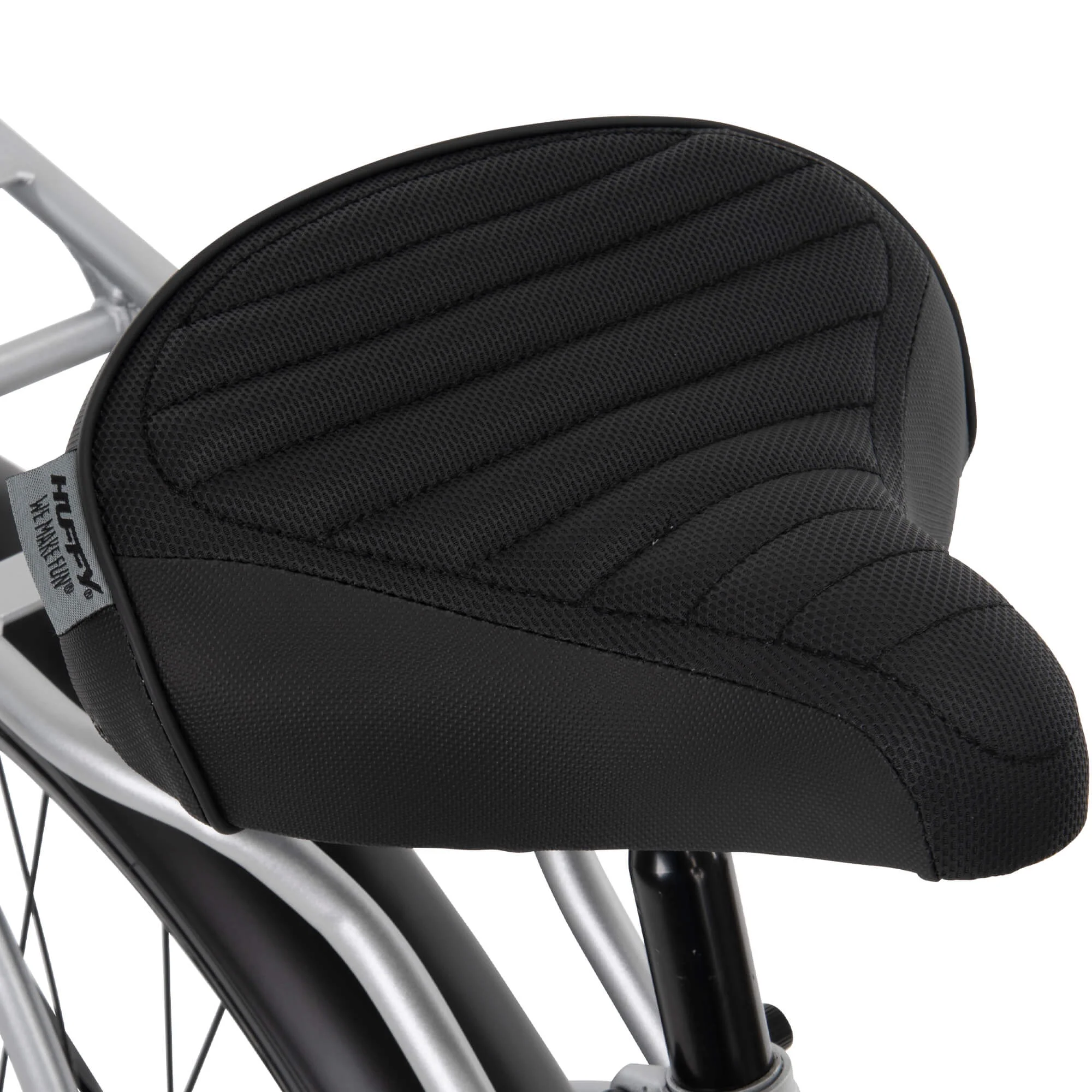 Comfortable: Padded spring saddle offers a smooth, enjoyable ride. Stylish: Silver frame with classic cruiser style for timeless charm. Durable: Steel frame ensures lasting performance on flat terrain. Smooth: Coaster brakes provide easy and reliable stopping power. Relaxed: Upright riding position promotes comfort on leisurely rides. Grippy: Wide cruiser tires enhance stability and balance on any surface. Convenient: Handlebar basket, storage rack, & cup holder for small essentials.